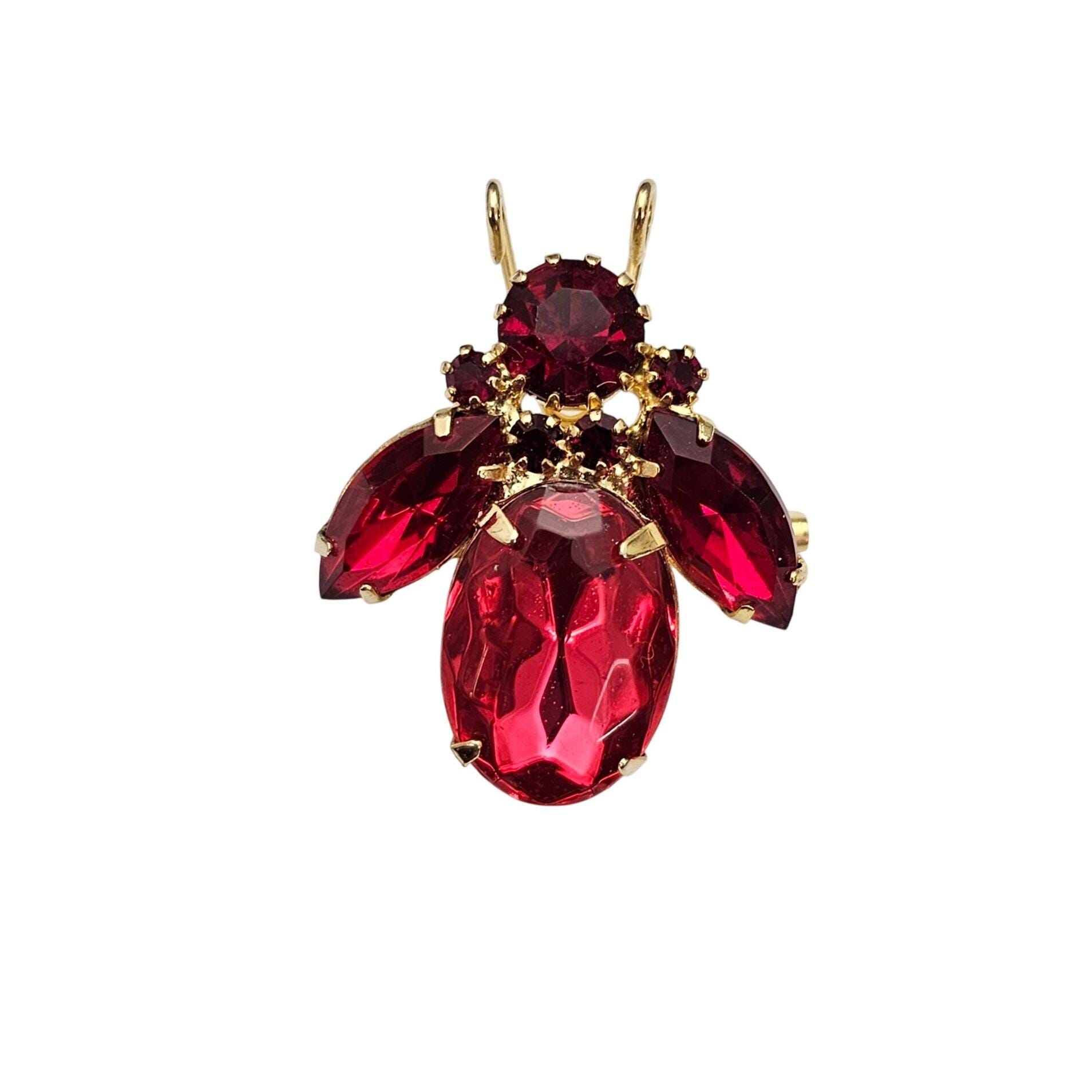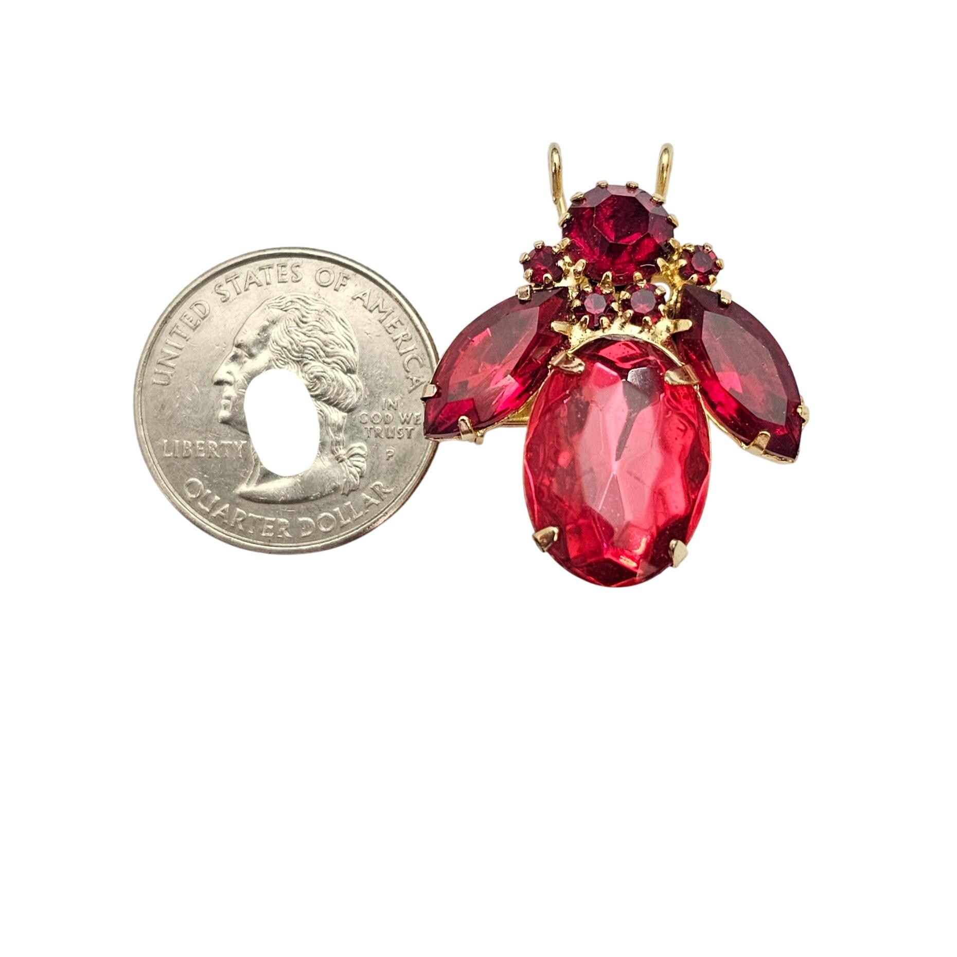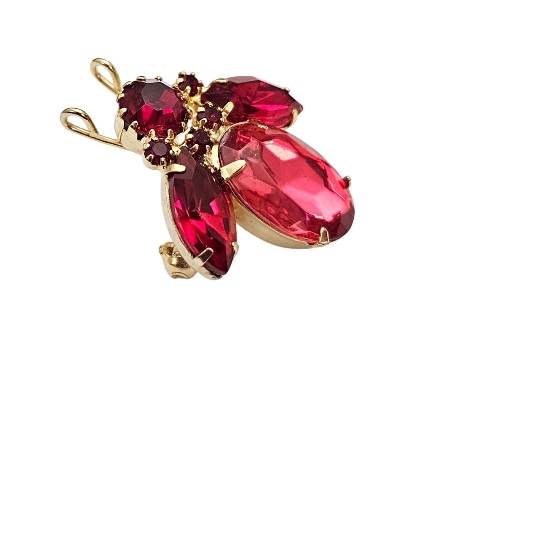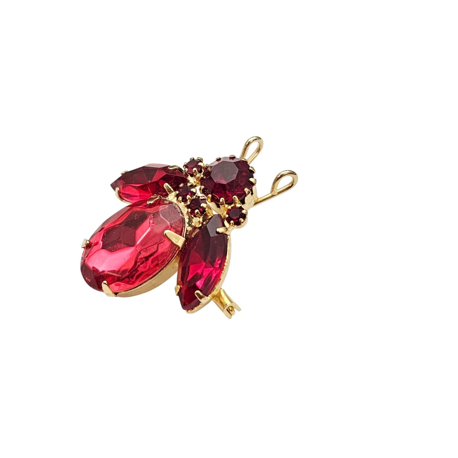 Pink Red Rhinestone Bug, Fly Brooch Vintage Pin C606