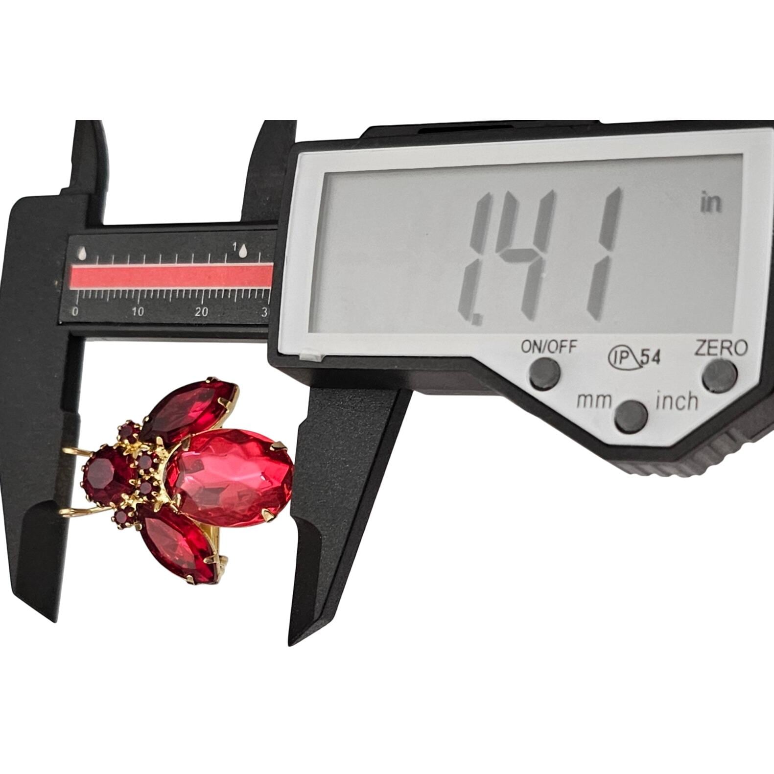• Oval-shaped red faceted rhinestone depicts the bug's body