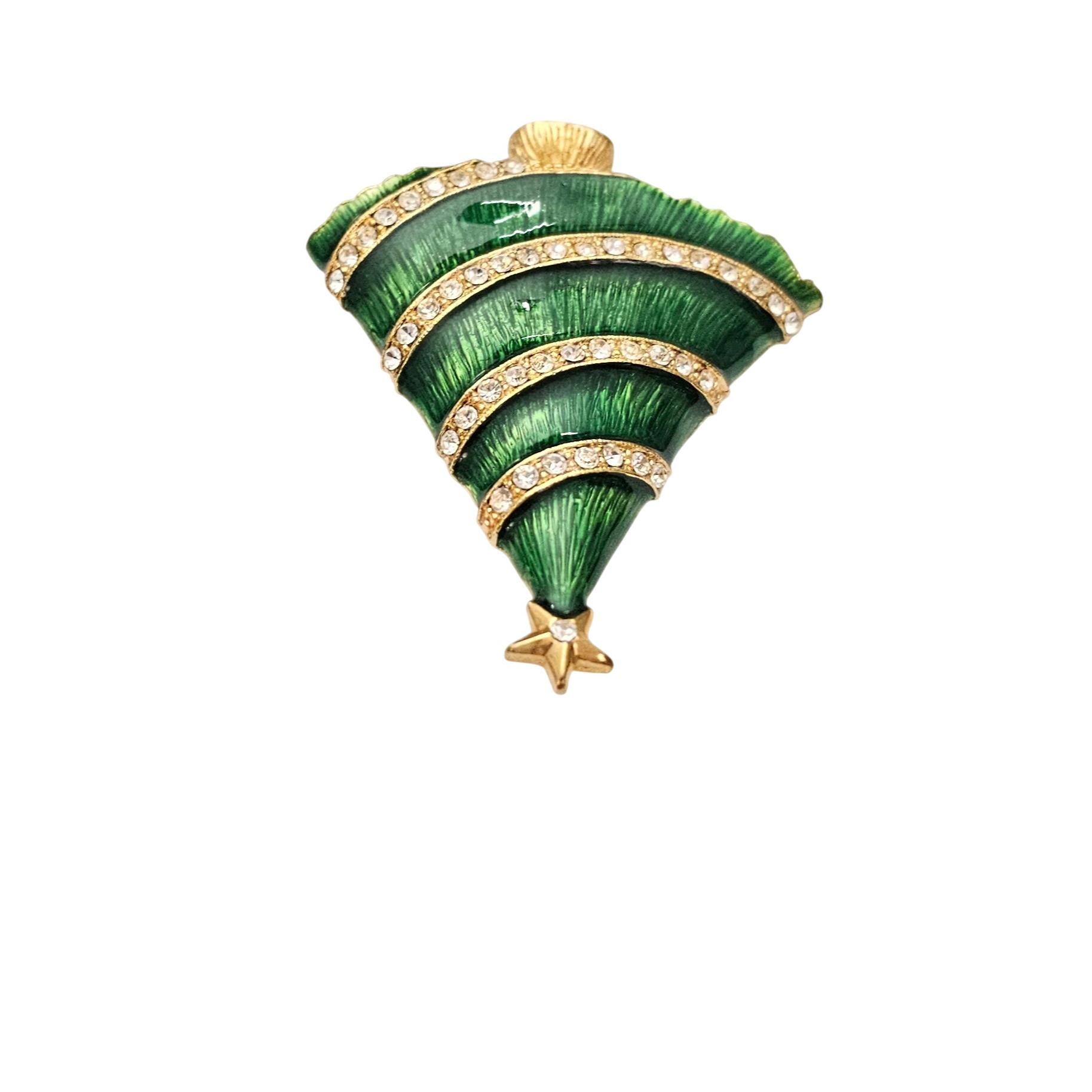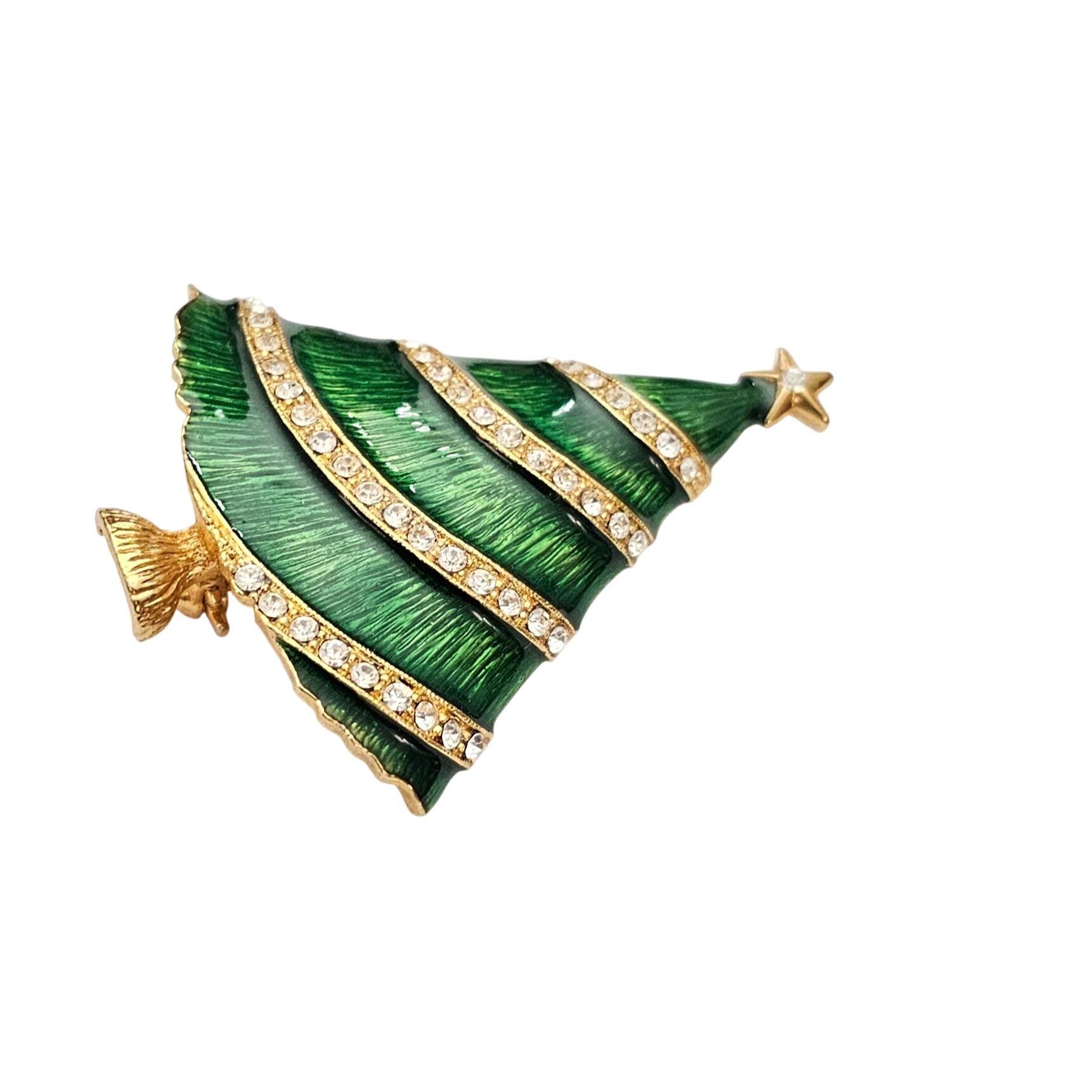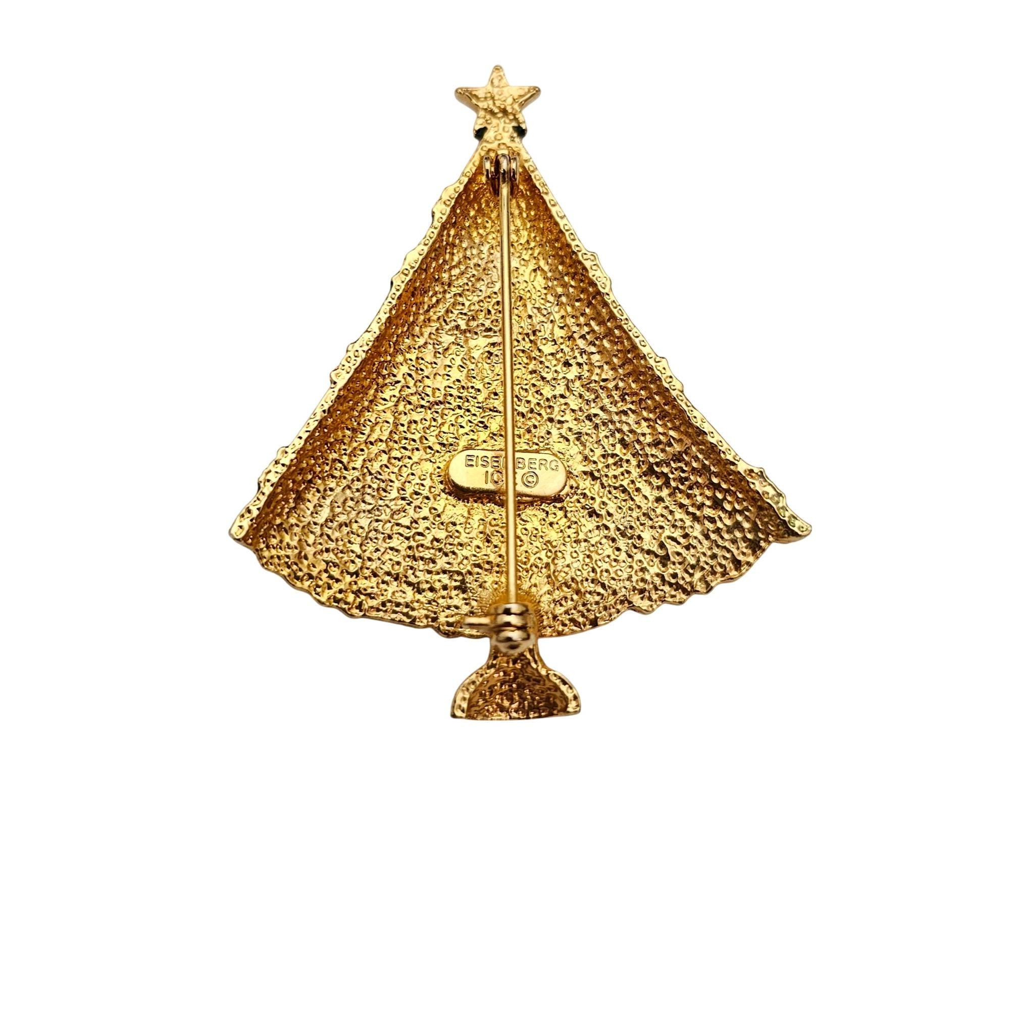 Eisenberg Ice Christmas Tree Brooch, Green Enamel, Clear Rhinestone Pin, Signed, C588