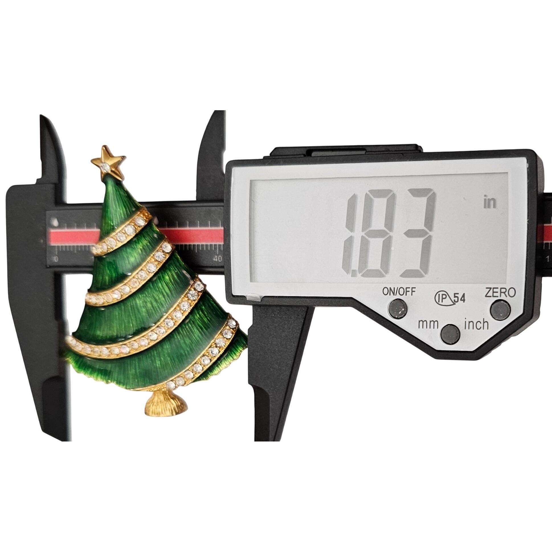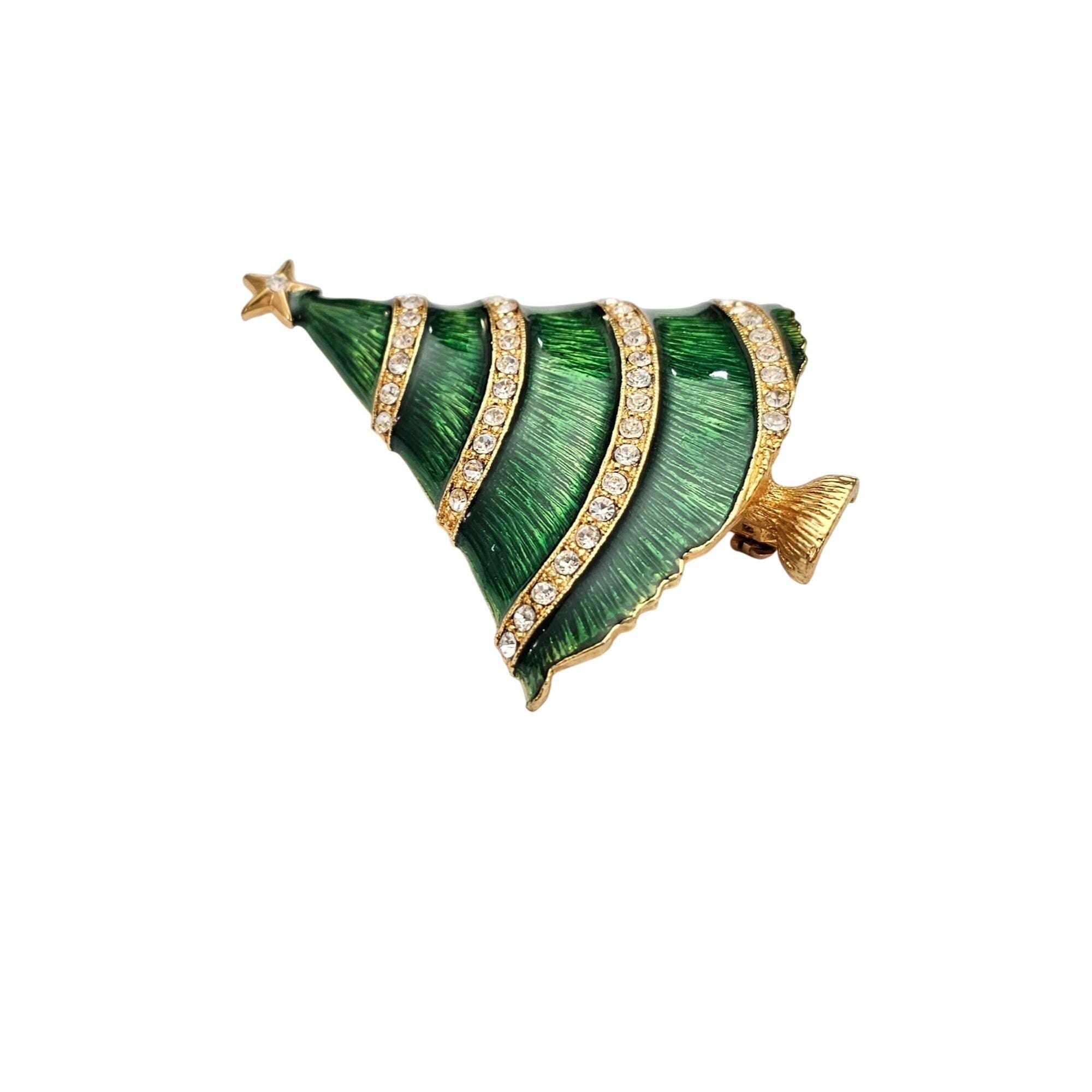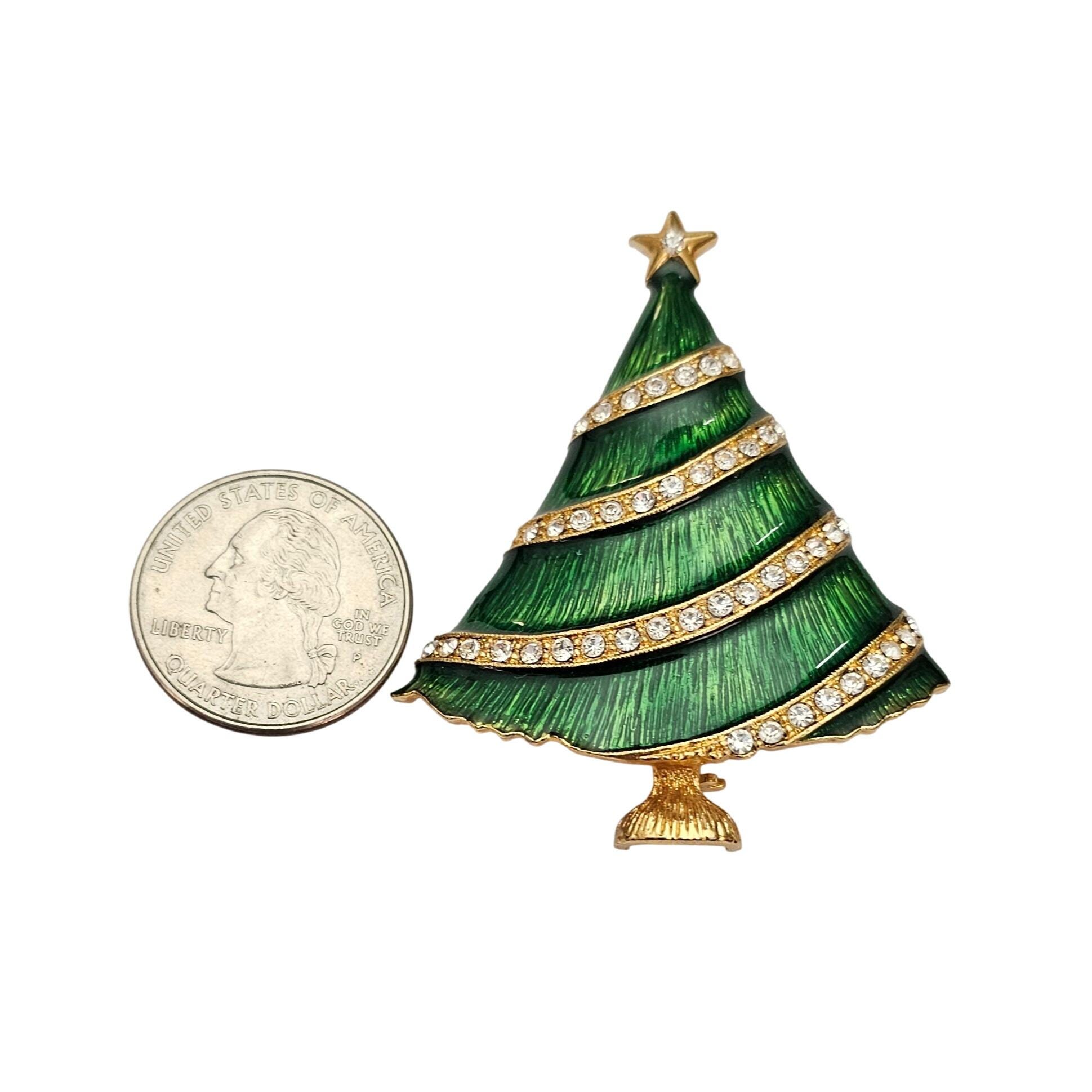 Eisenberg Ice Christmas Tree Brooch, Green Enamel, Clear Rhinestone Pin, Signed, C588
