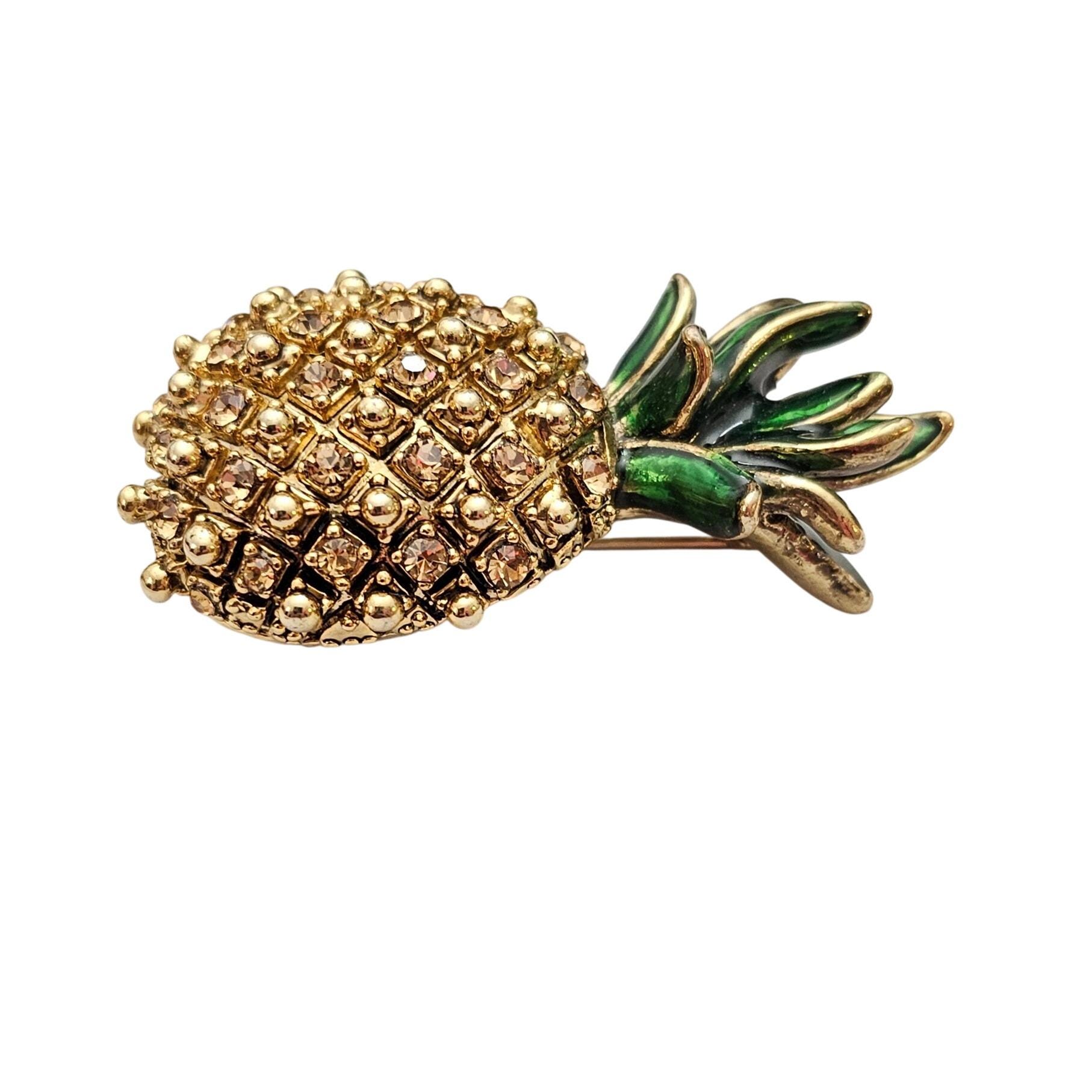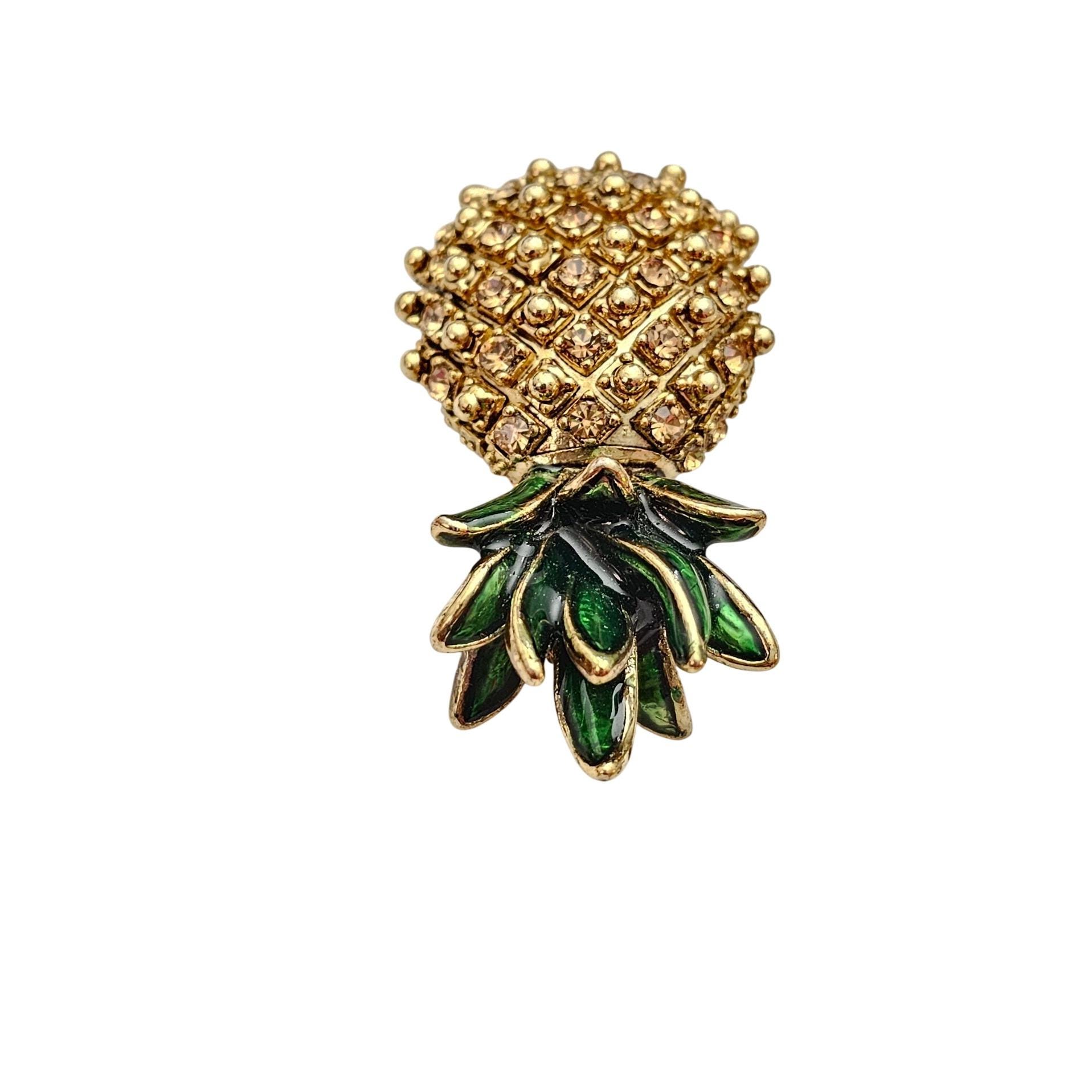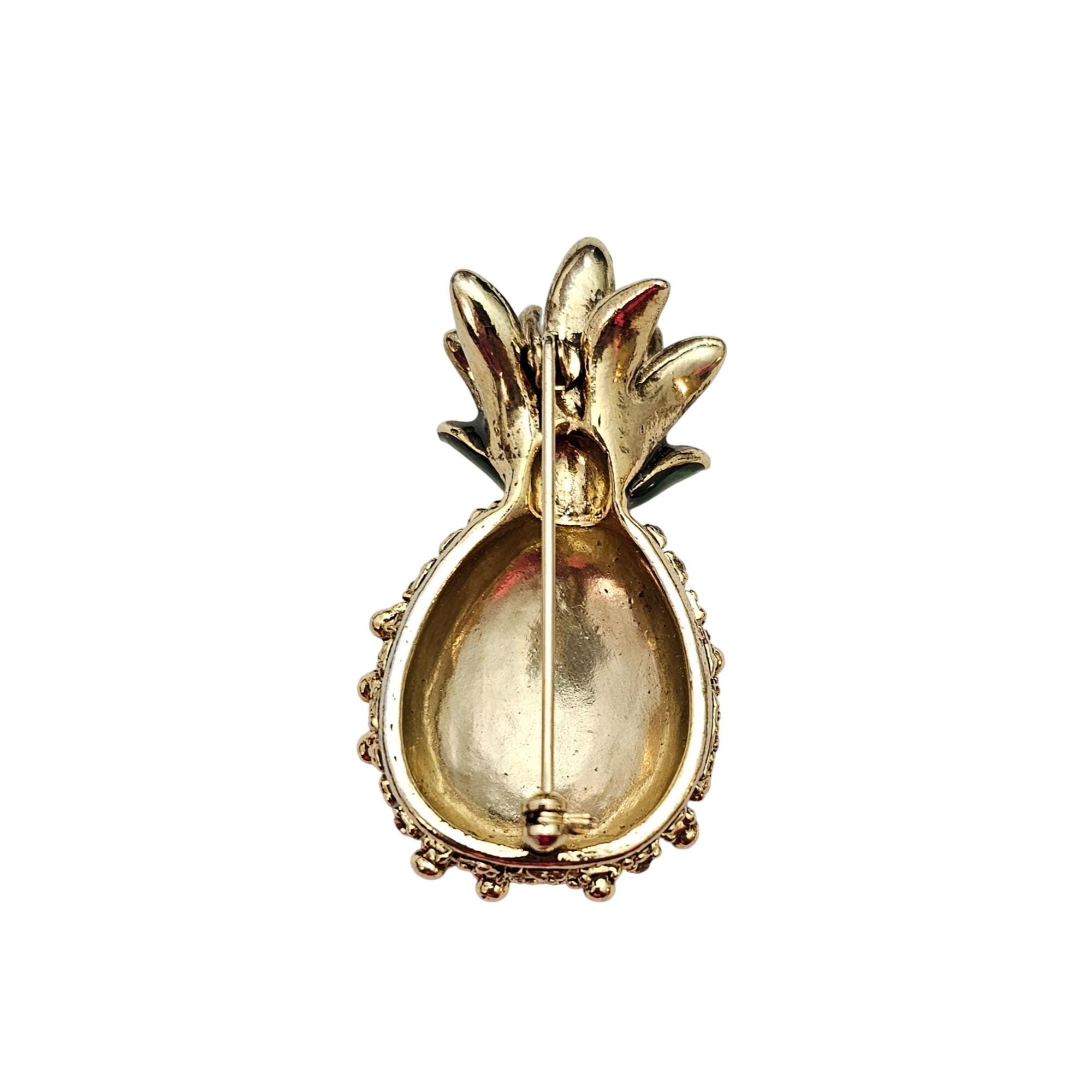Pineapple Brooch Champagne Rhinestone Green Enamel Pin C630