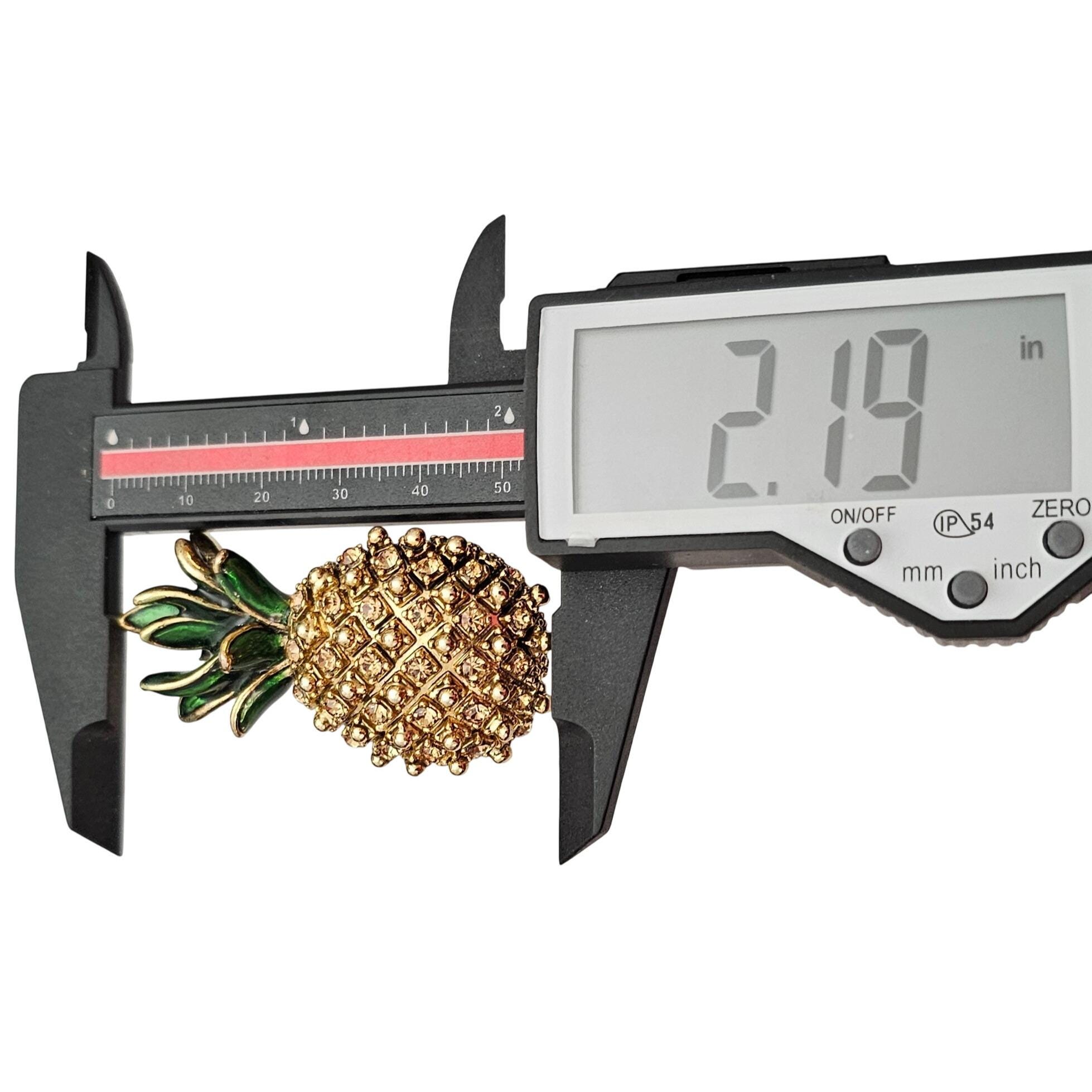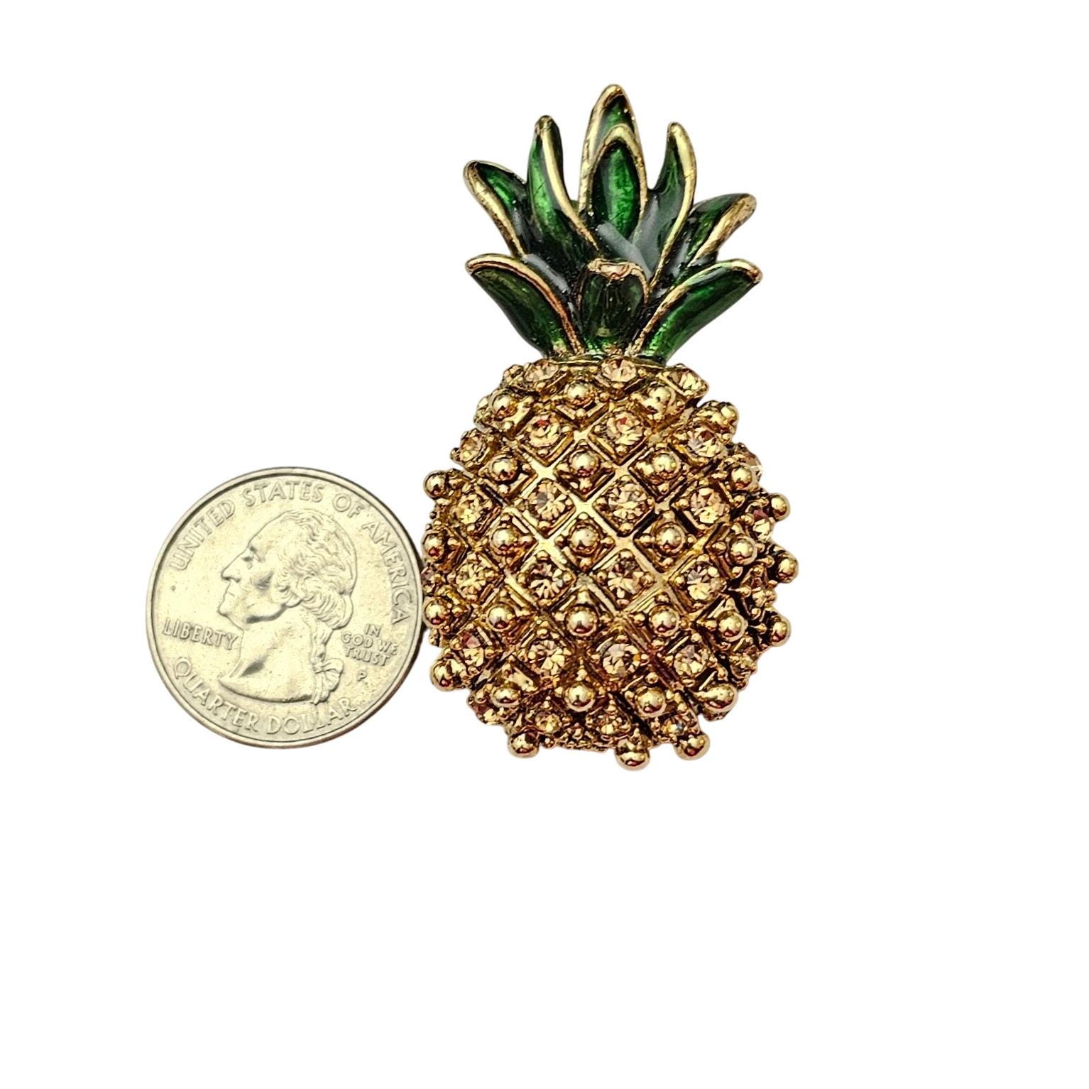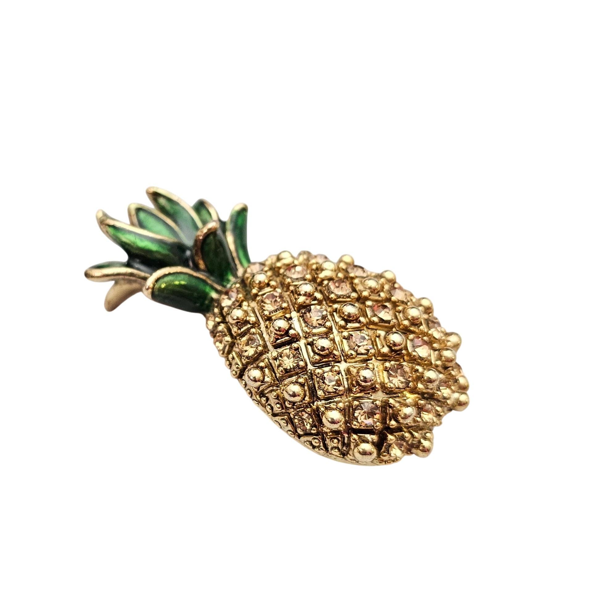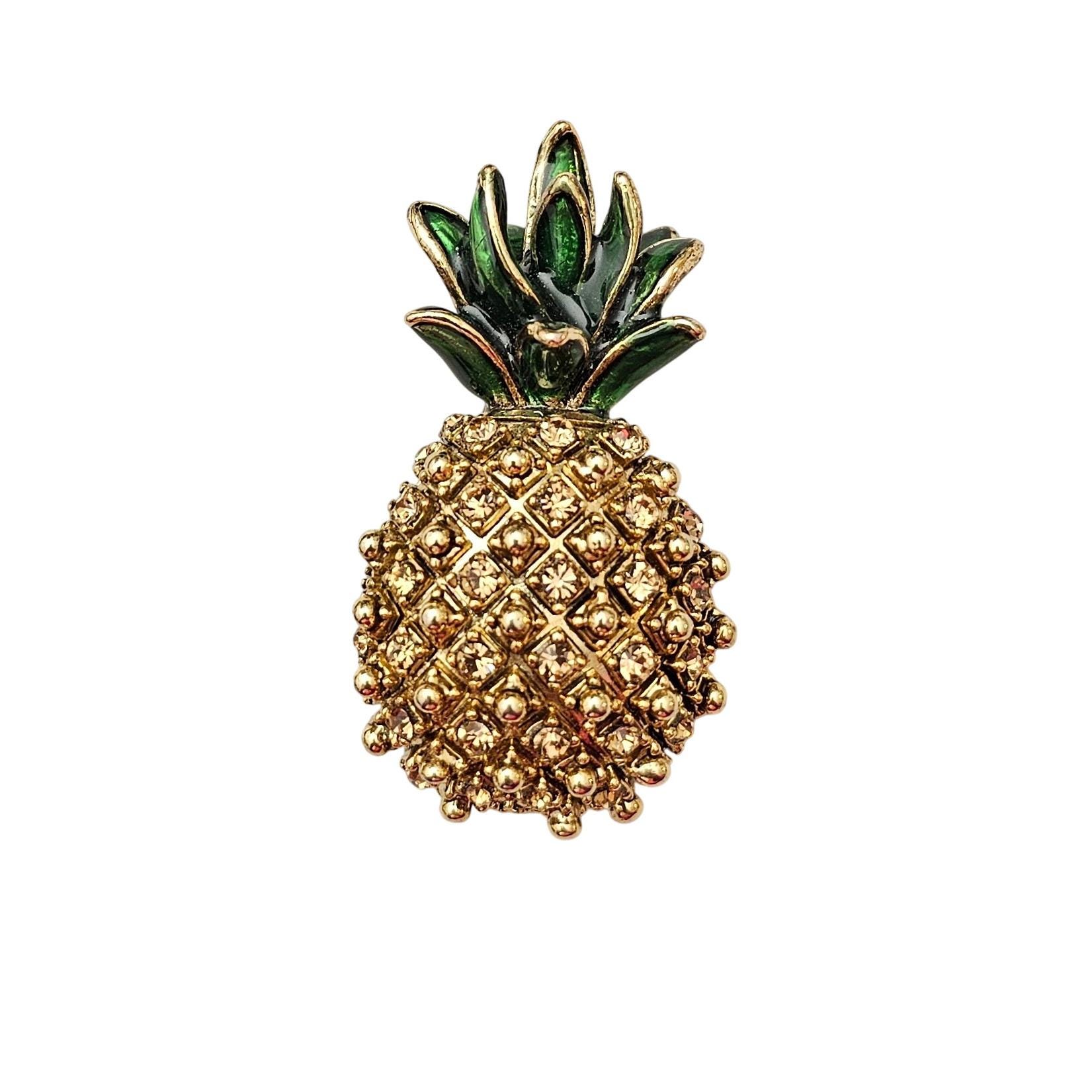 Pineapple Brooch Champagne Rhinestone Green Enamel Pin C630