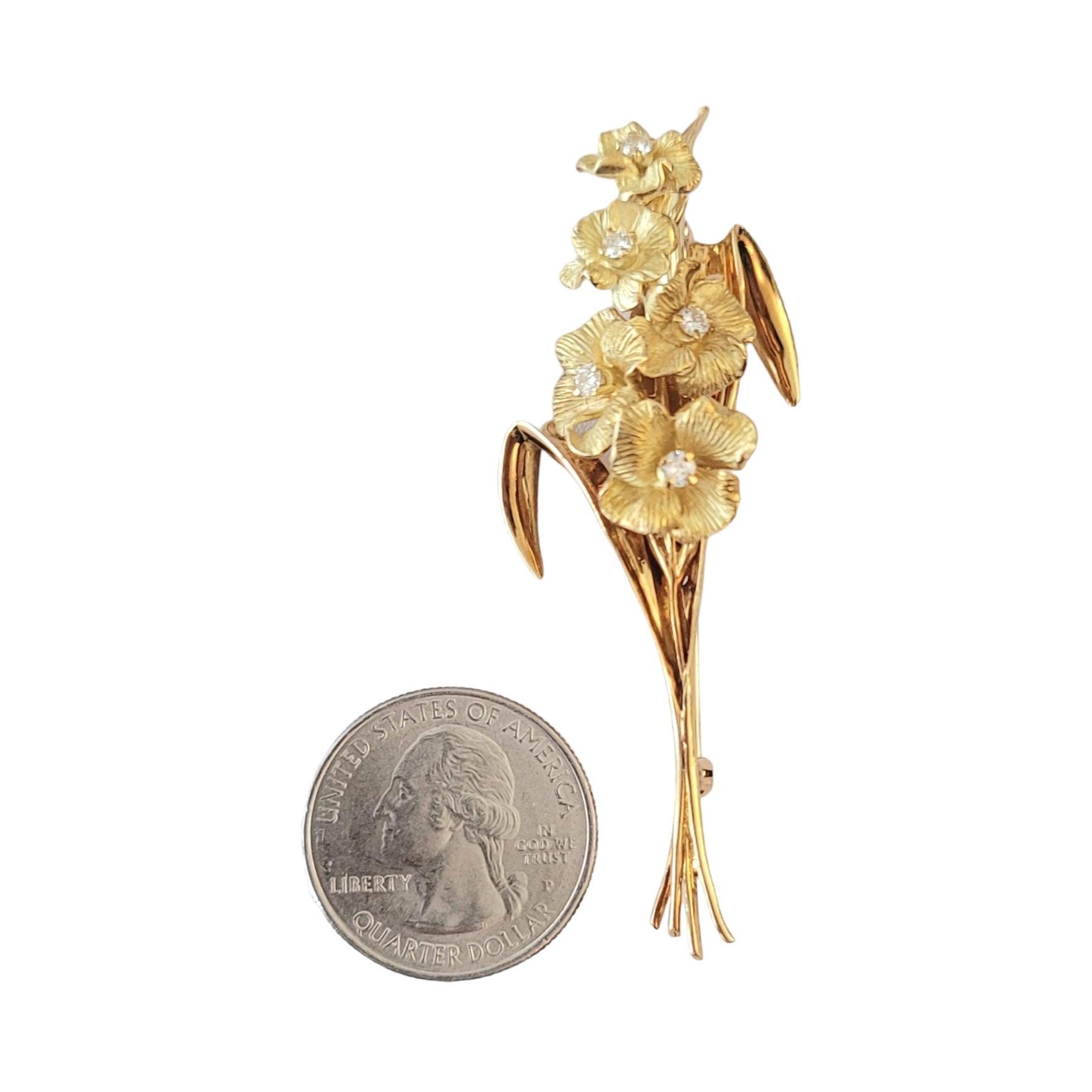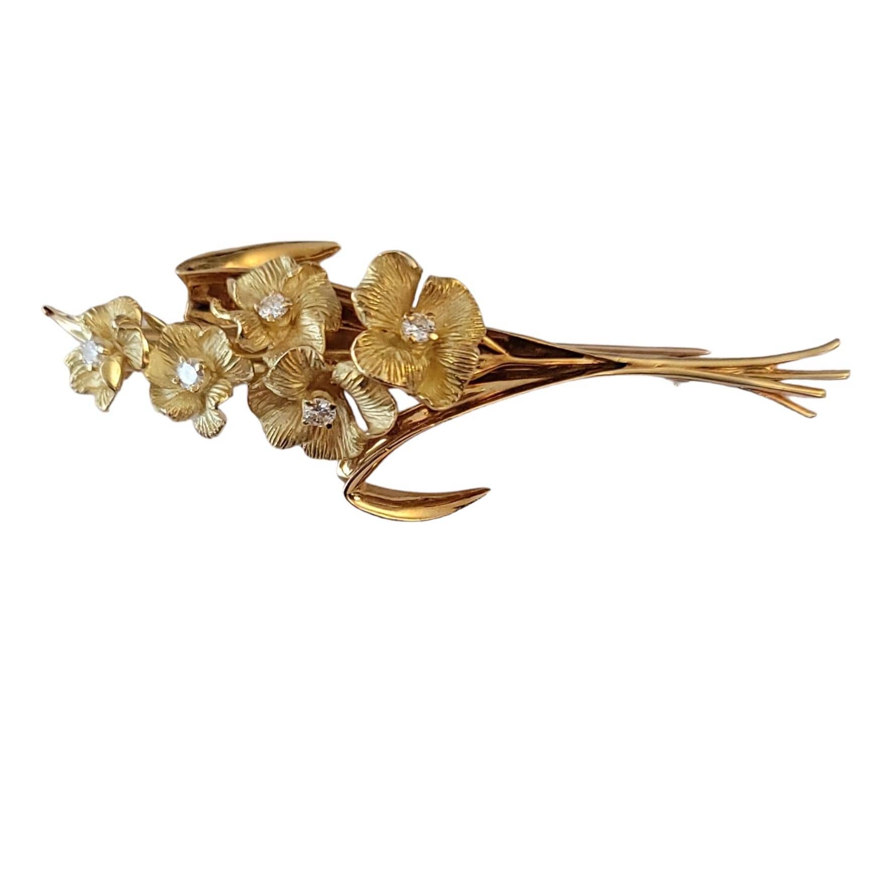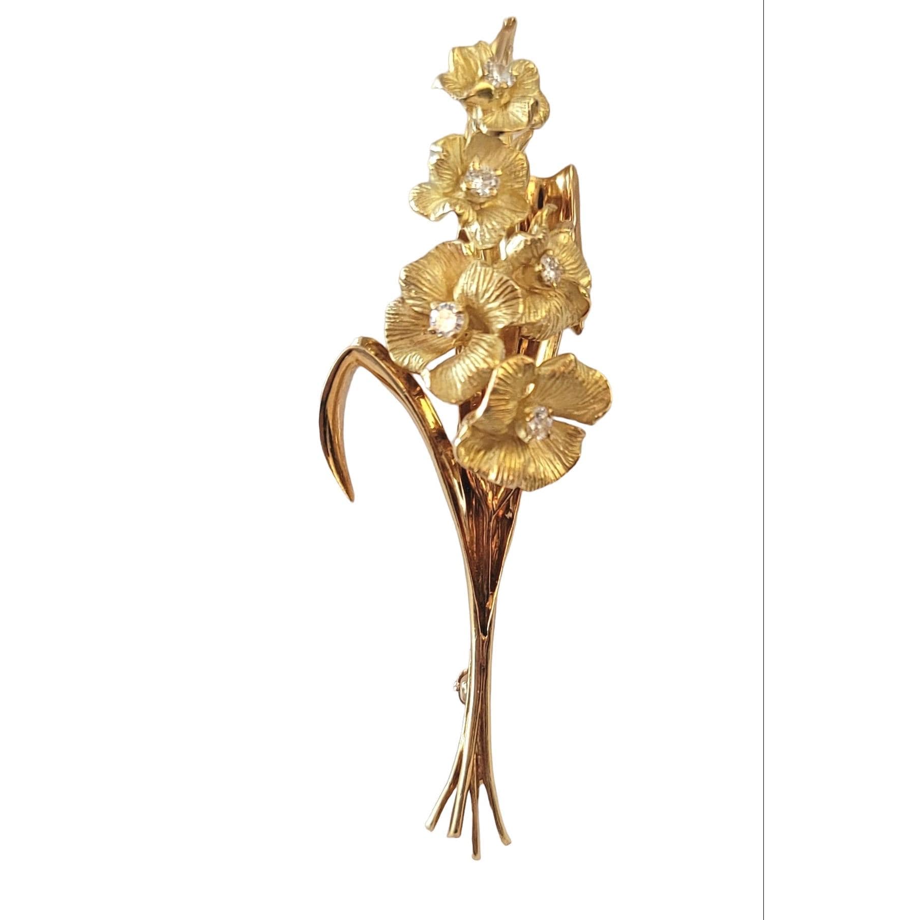 18k Yellow Gold, Diamond Stemmed Flower Leaf Bouquet Brooch M614