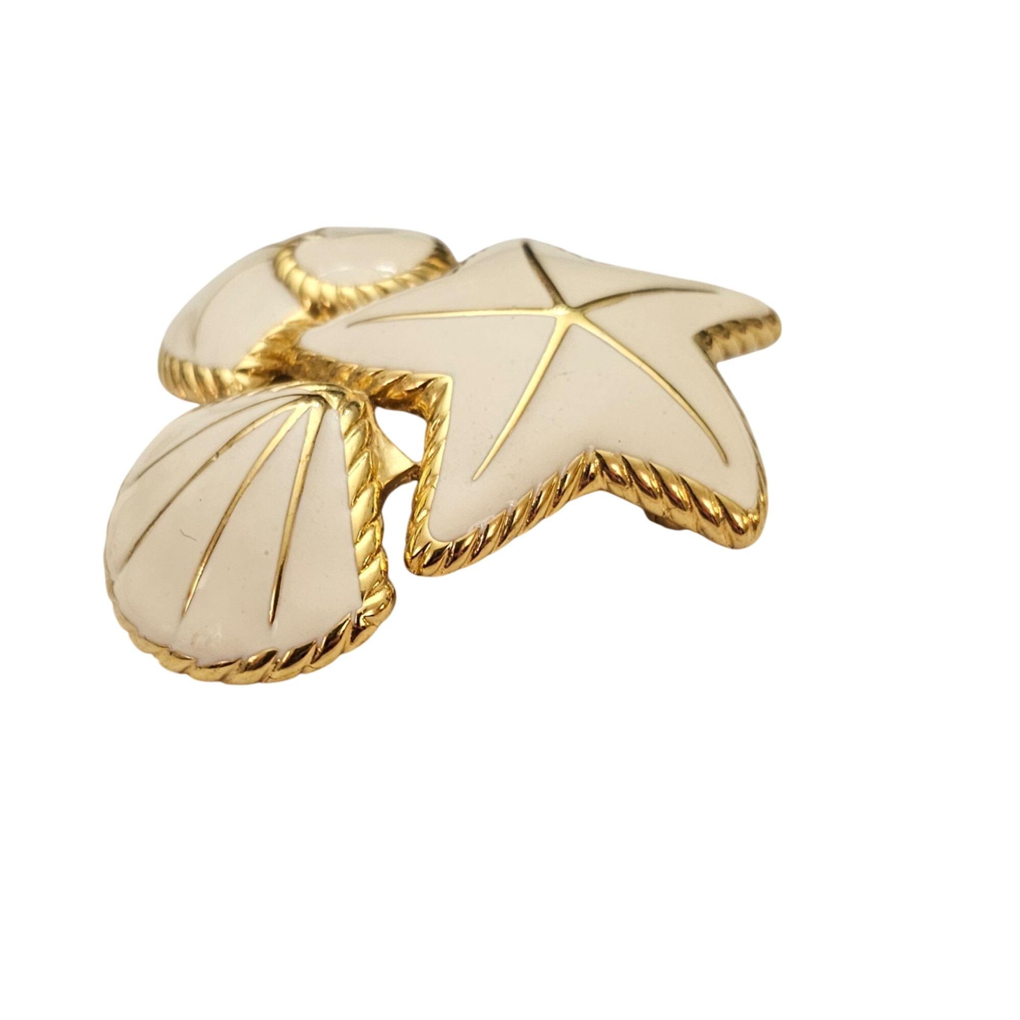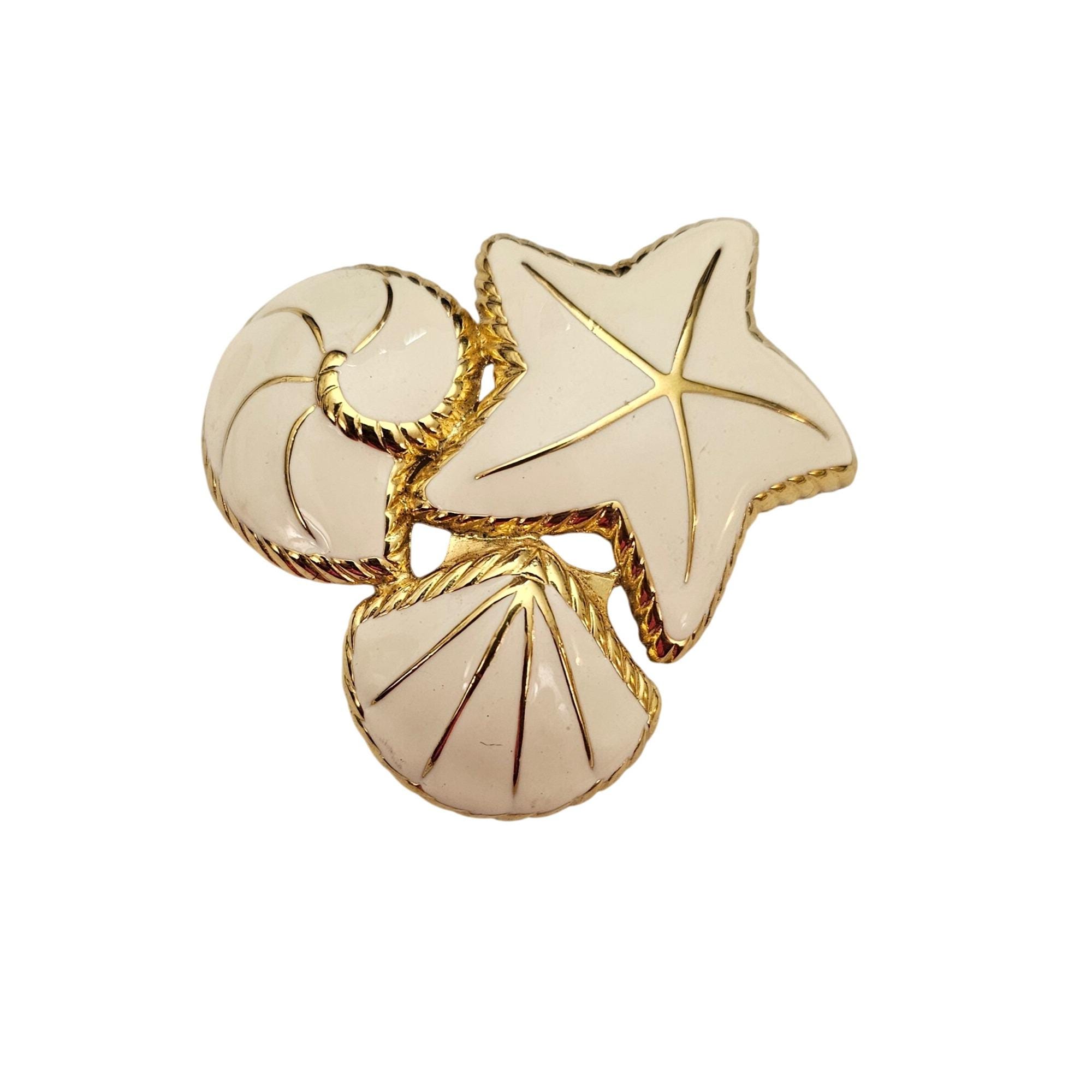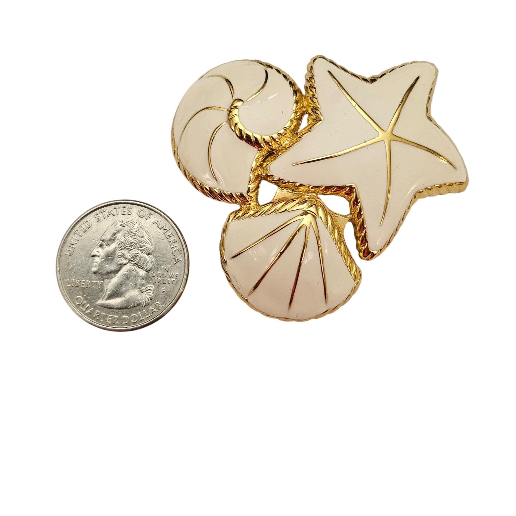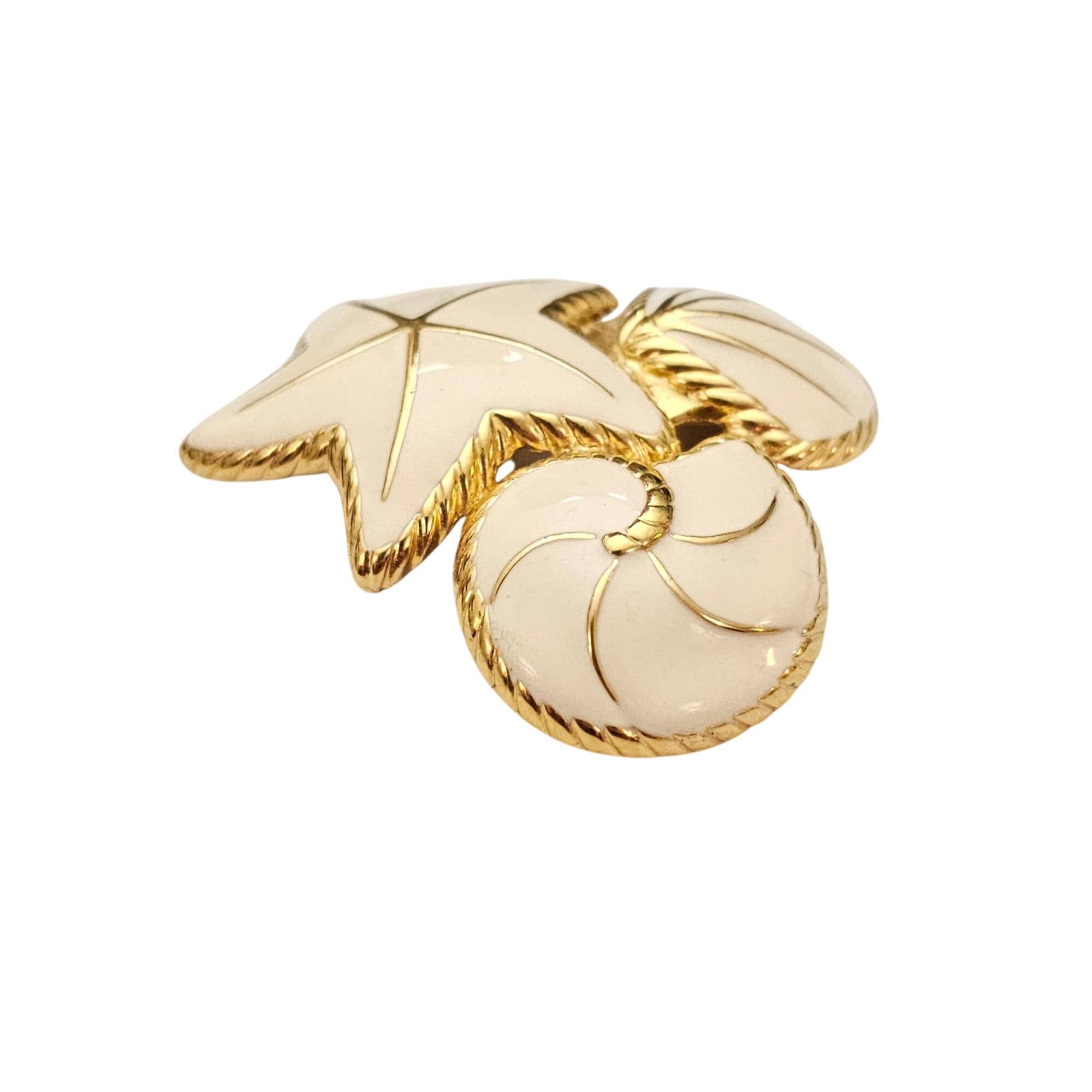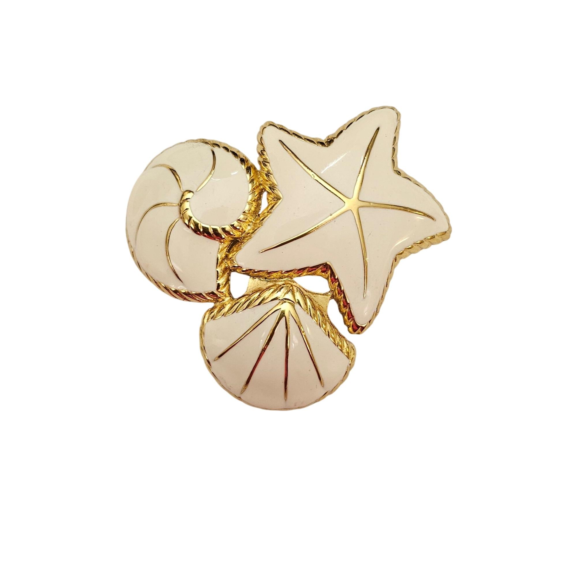 Trifari Cream Bone Enamel Snail Starfish Shell Brooch Signed C621