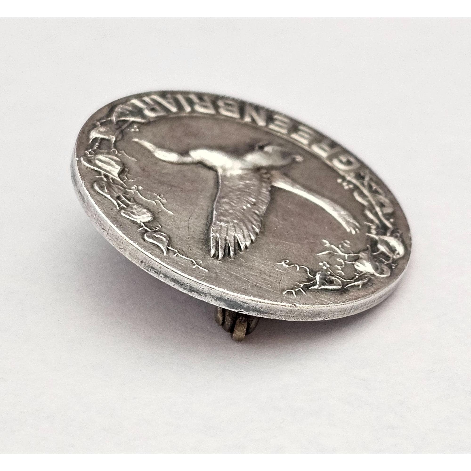 • The pin mechanism at the back is a simple hinge and catch style, which is typical of older badges