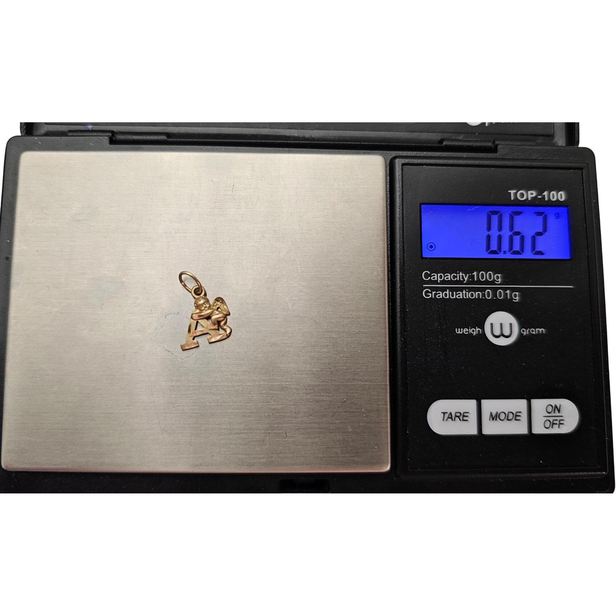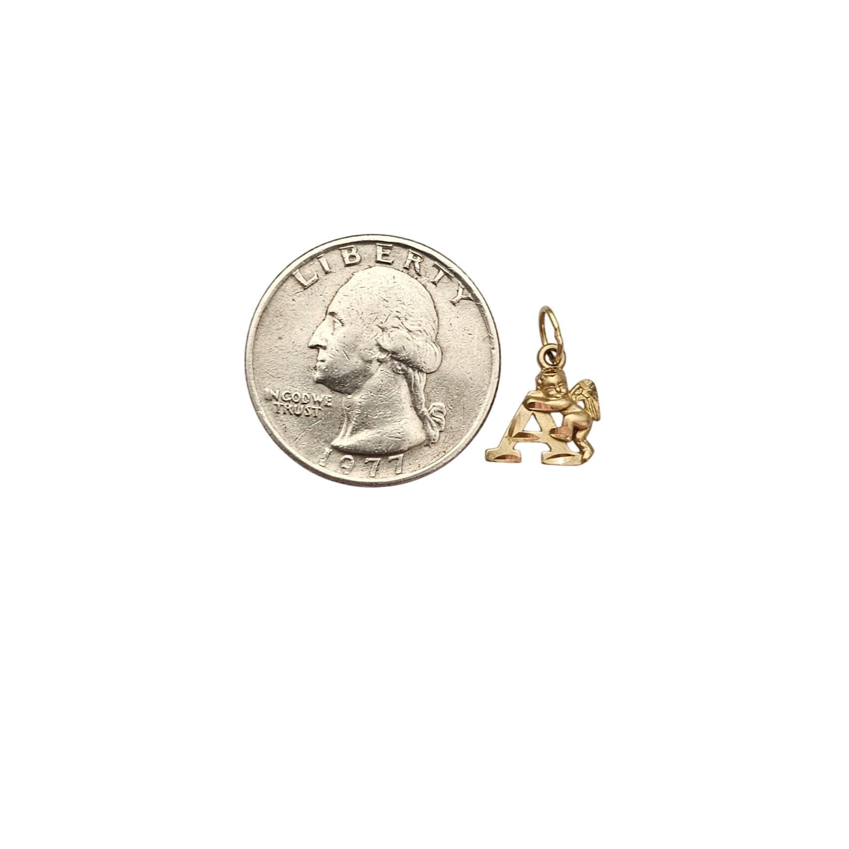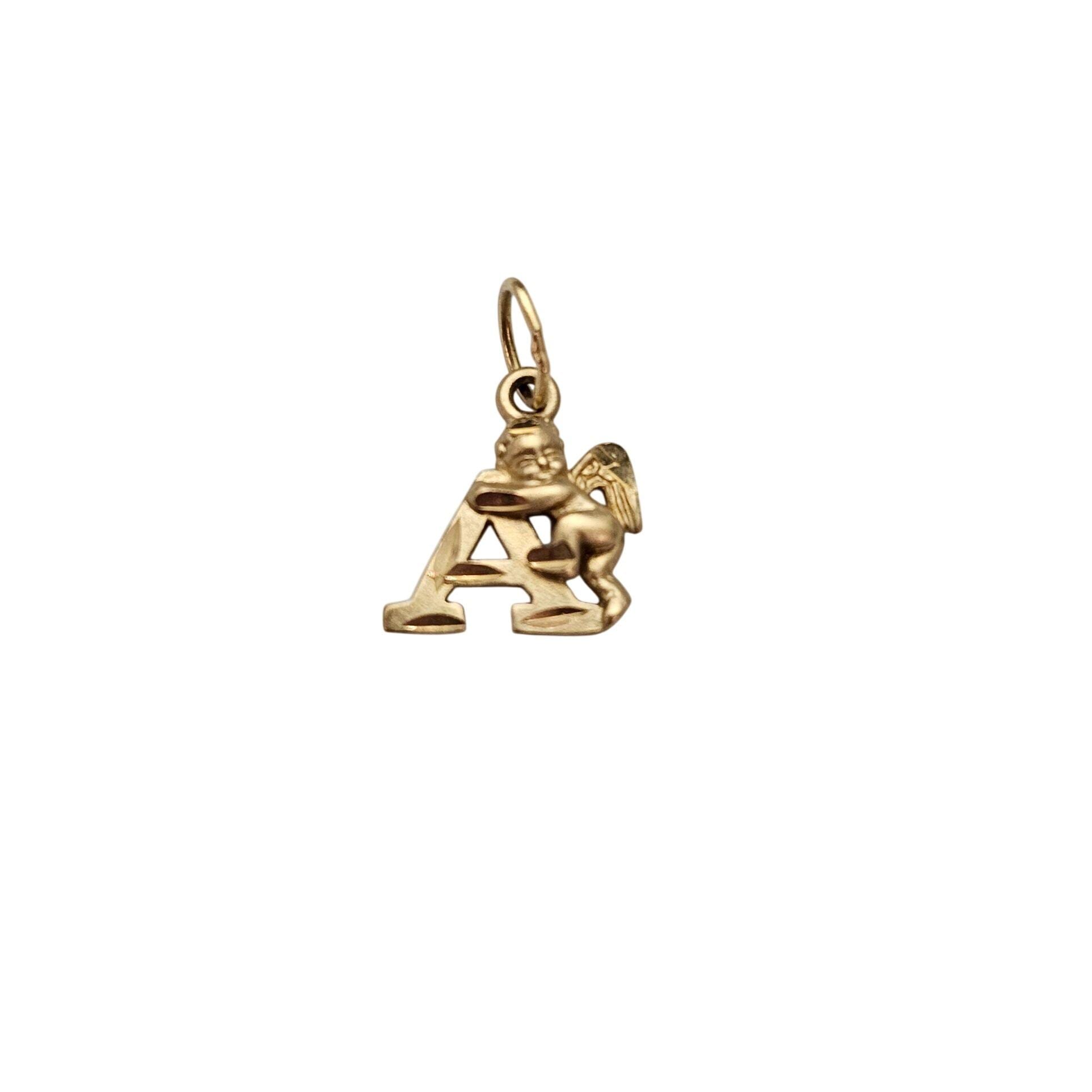 10K Yellow Gold “A” Monogram Angel Charm Pendant C661
