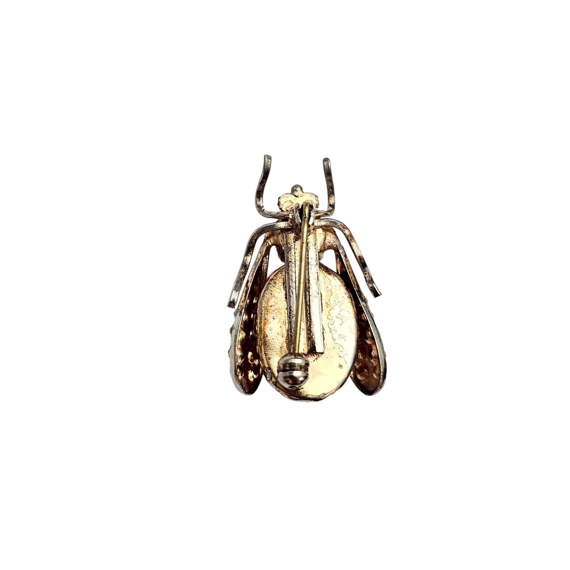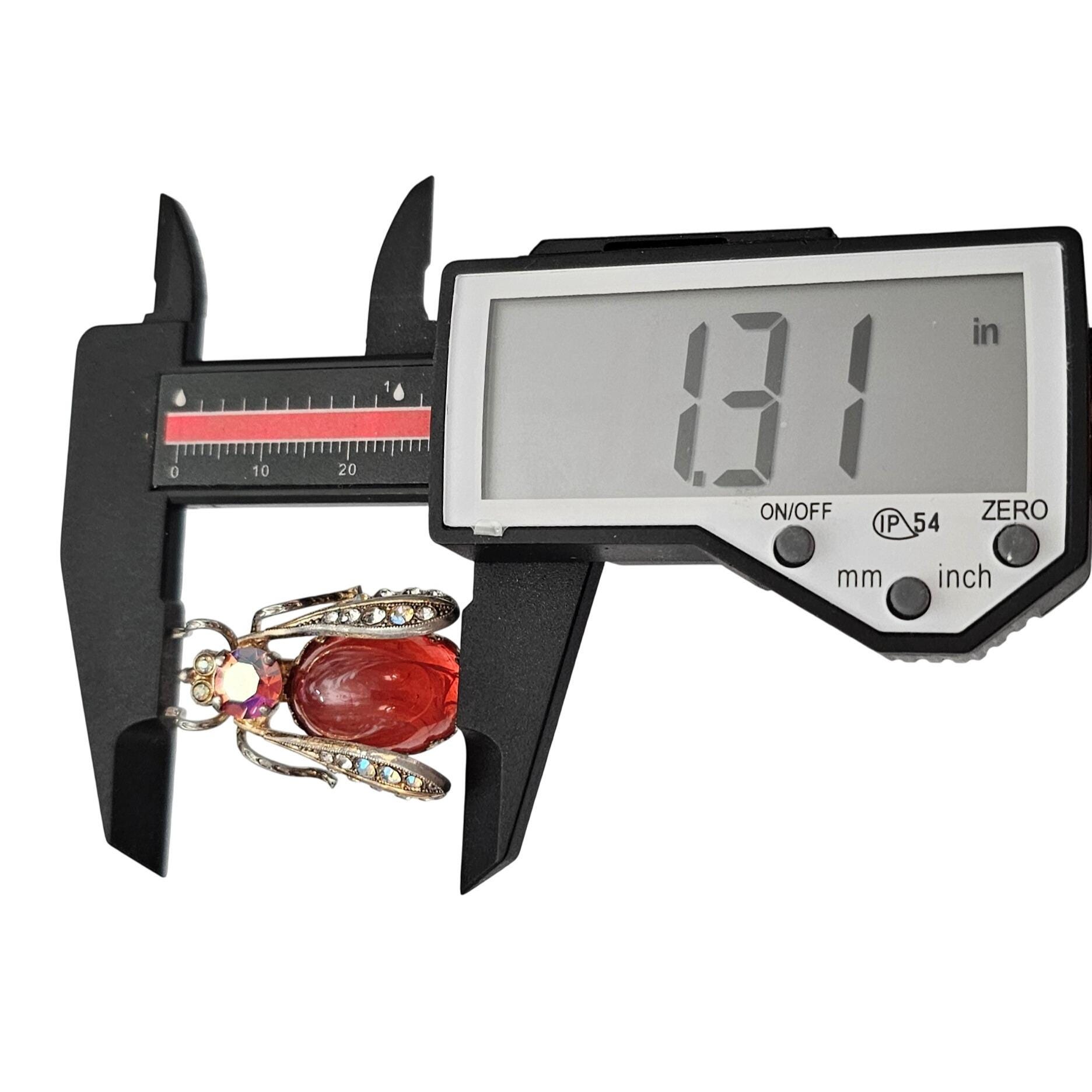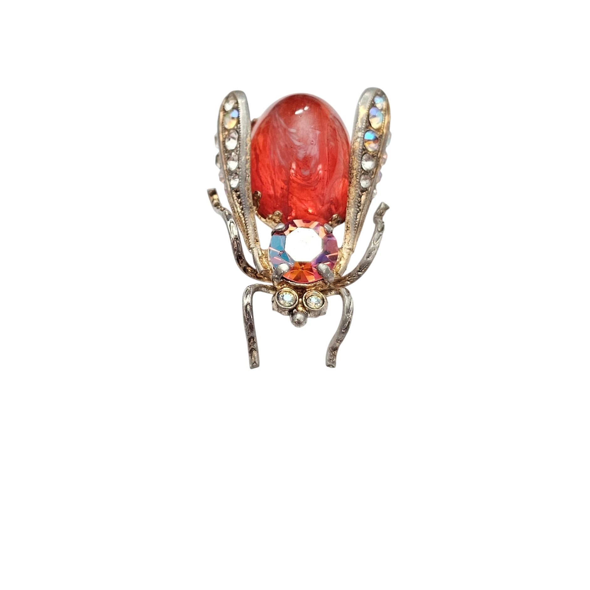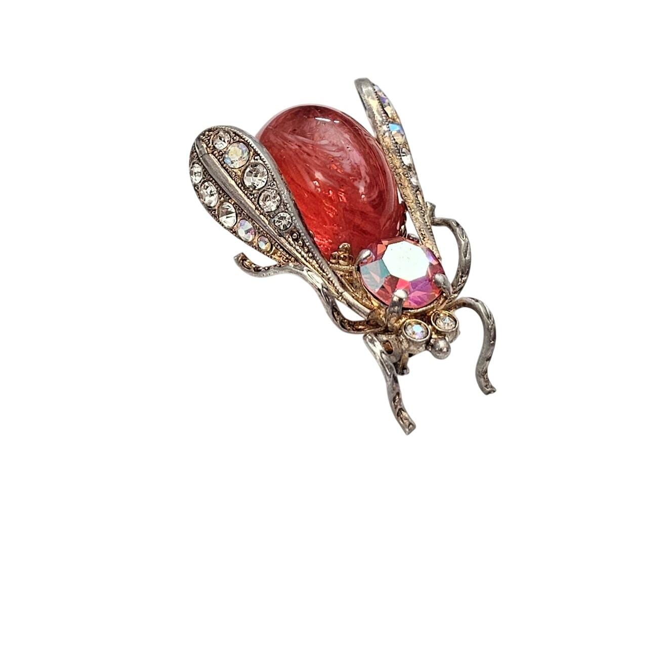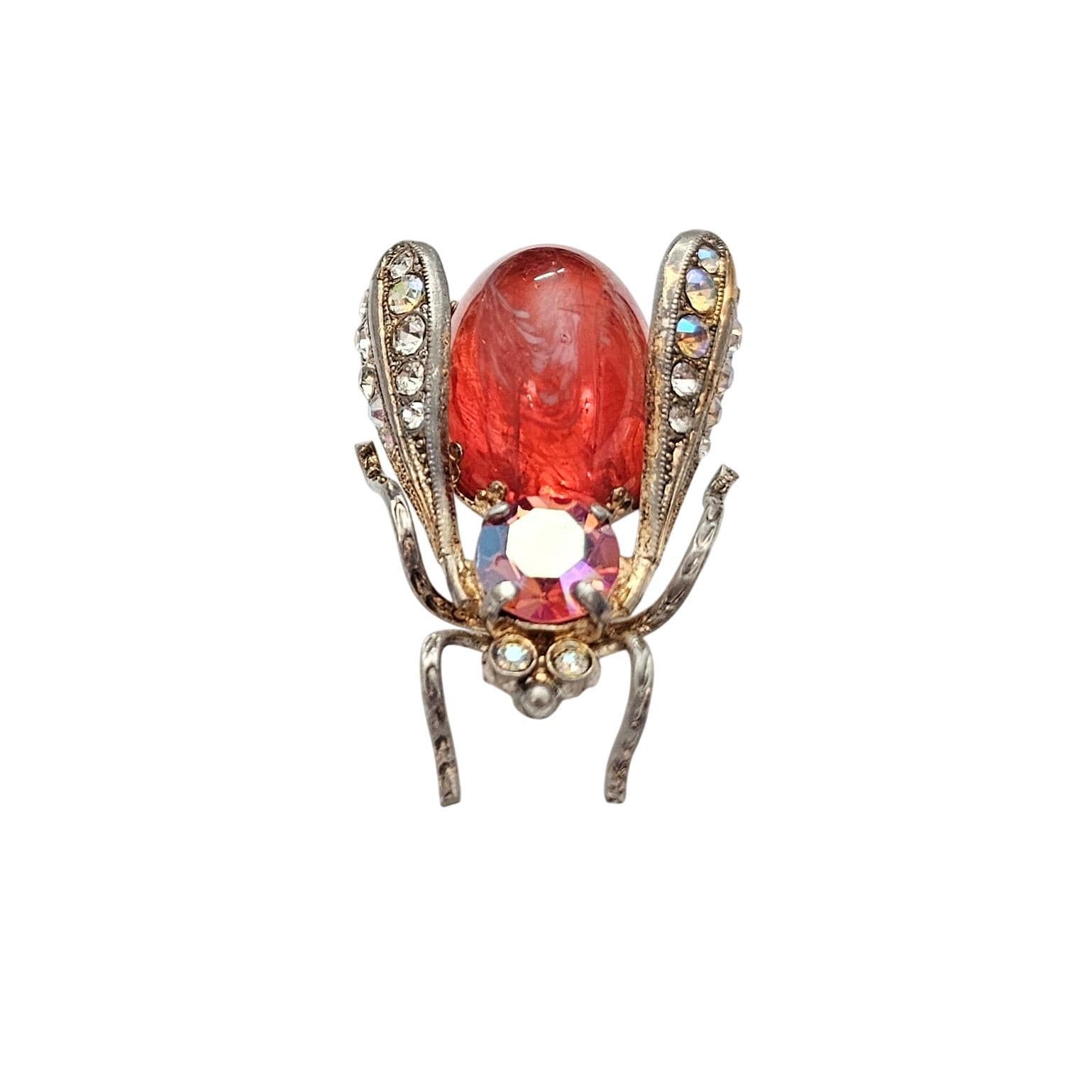 Flawed Domed Pink Glass Bug Brooch AB Rhinestone Austria Pin C658