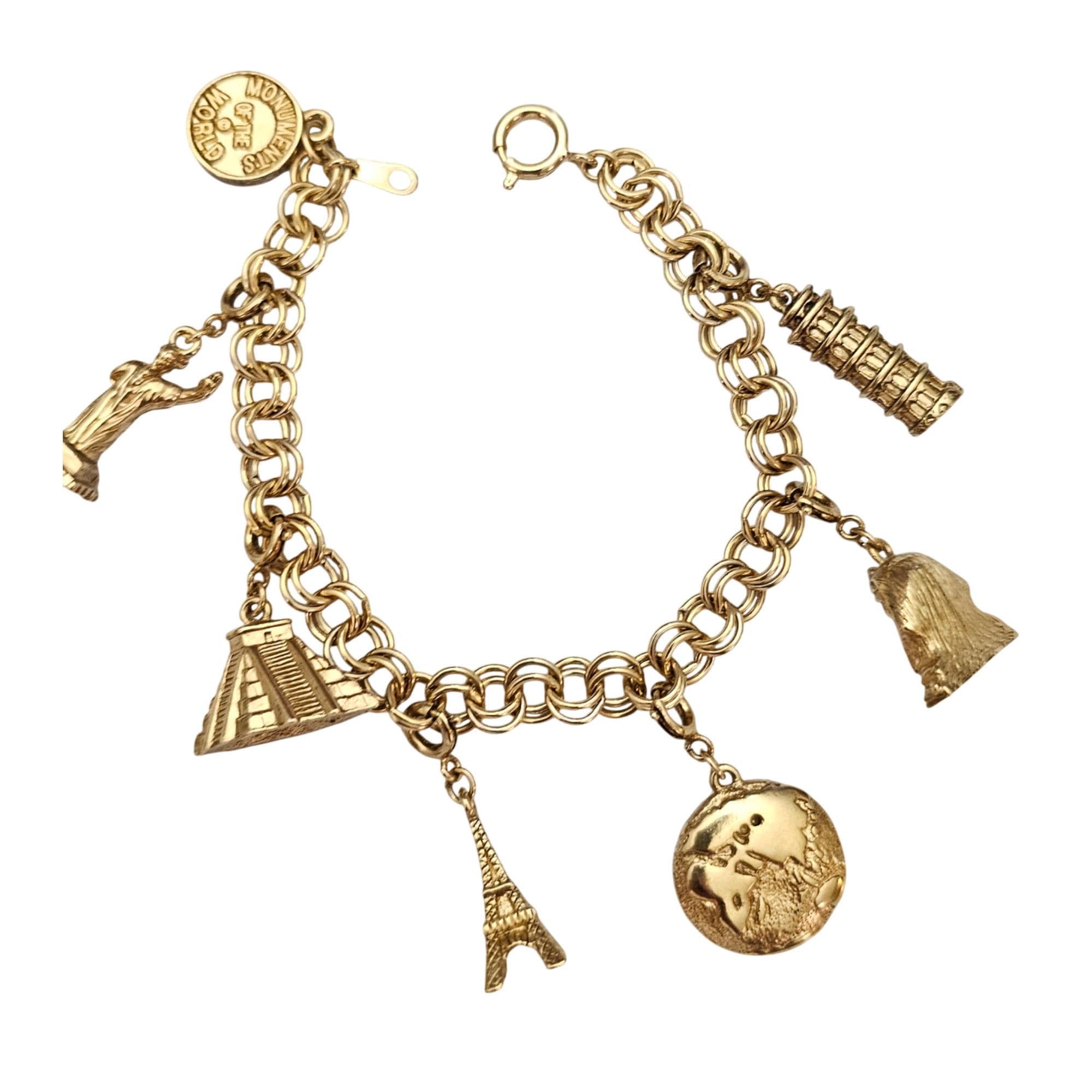 Ravello Gold Tone Monuments Of The World Charm Bracelet, Signed C682