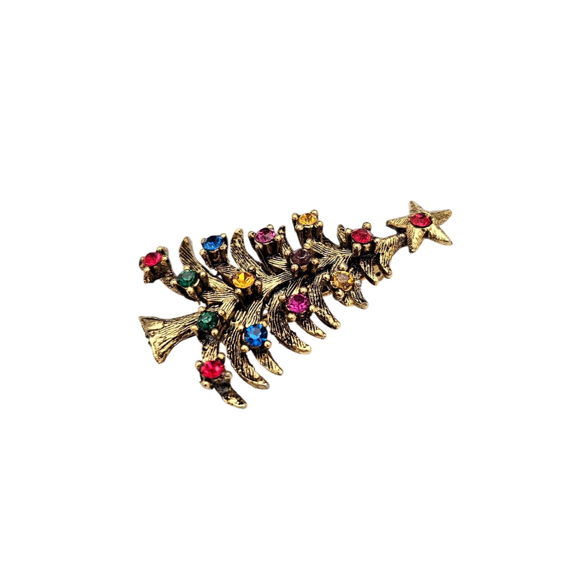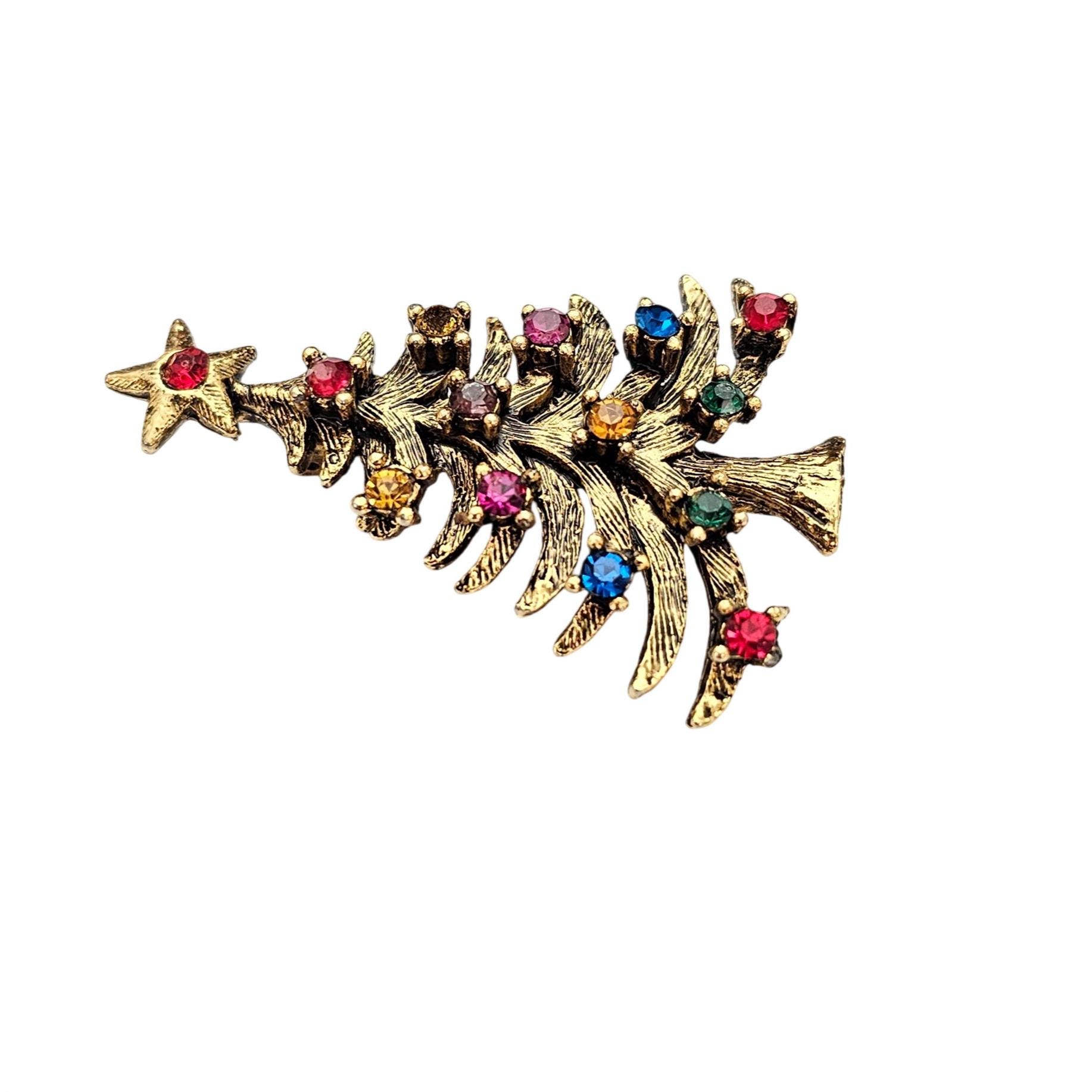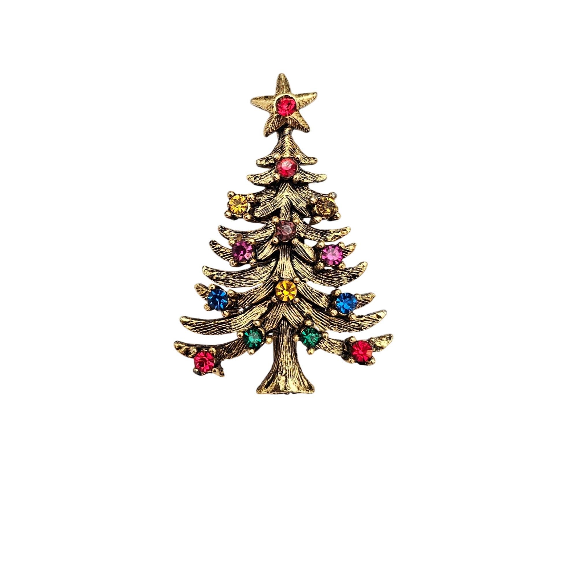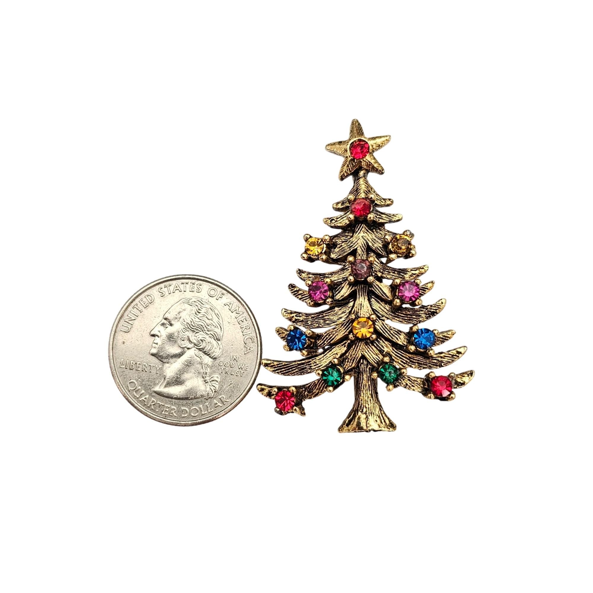 Eisenberg Ice Christmas Tree Brooch Multi Color Rhinestone Pin Signed, C680
