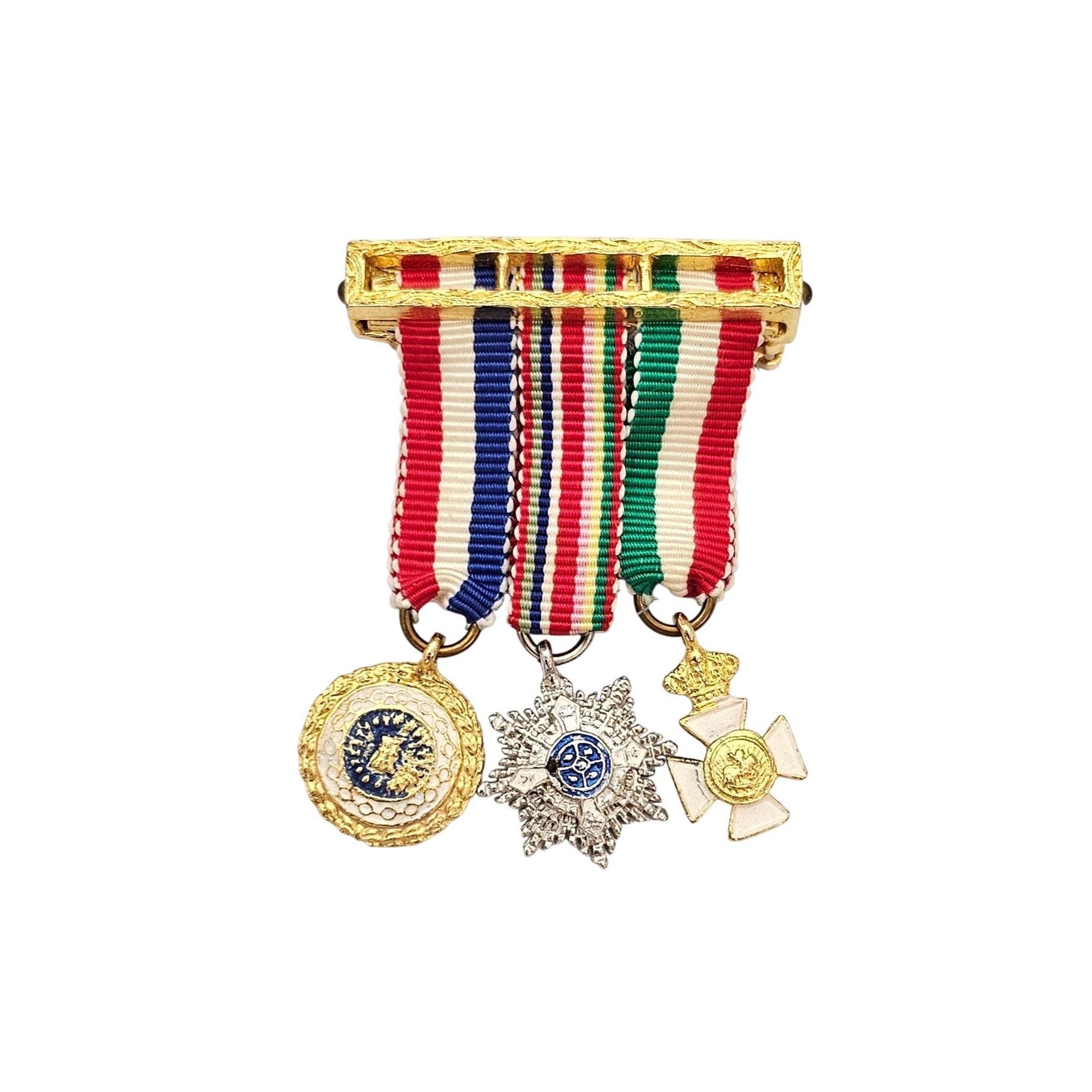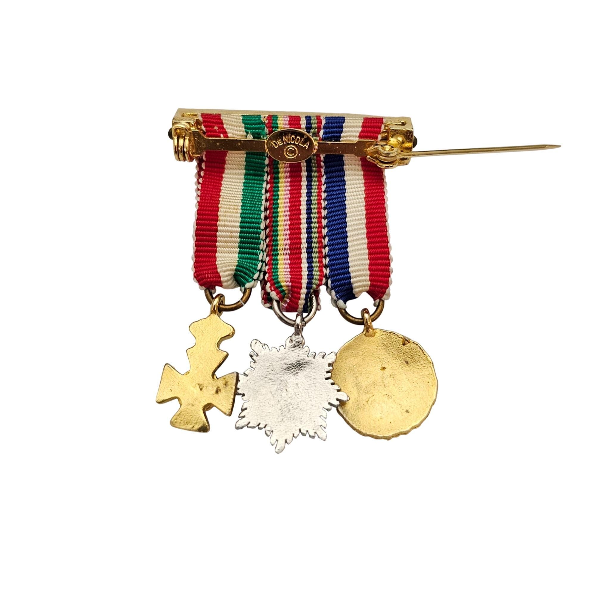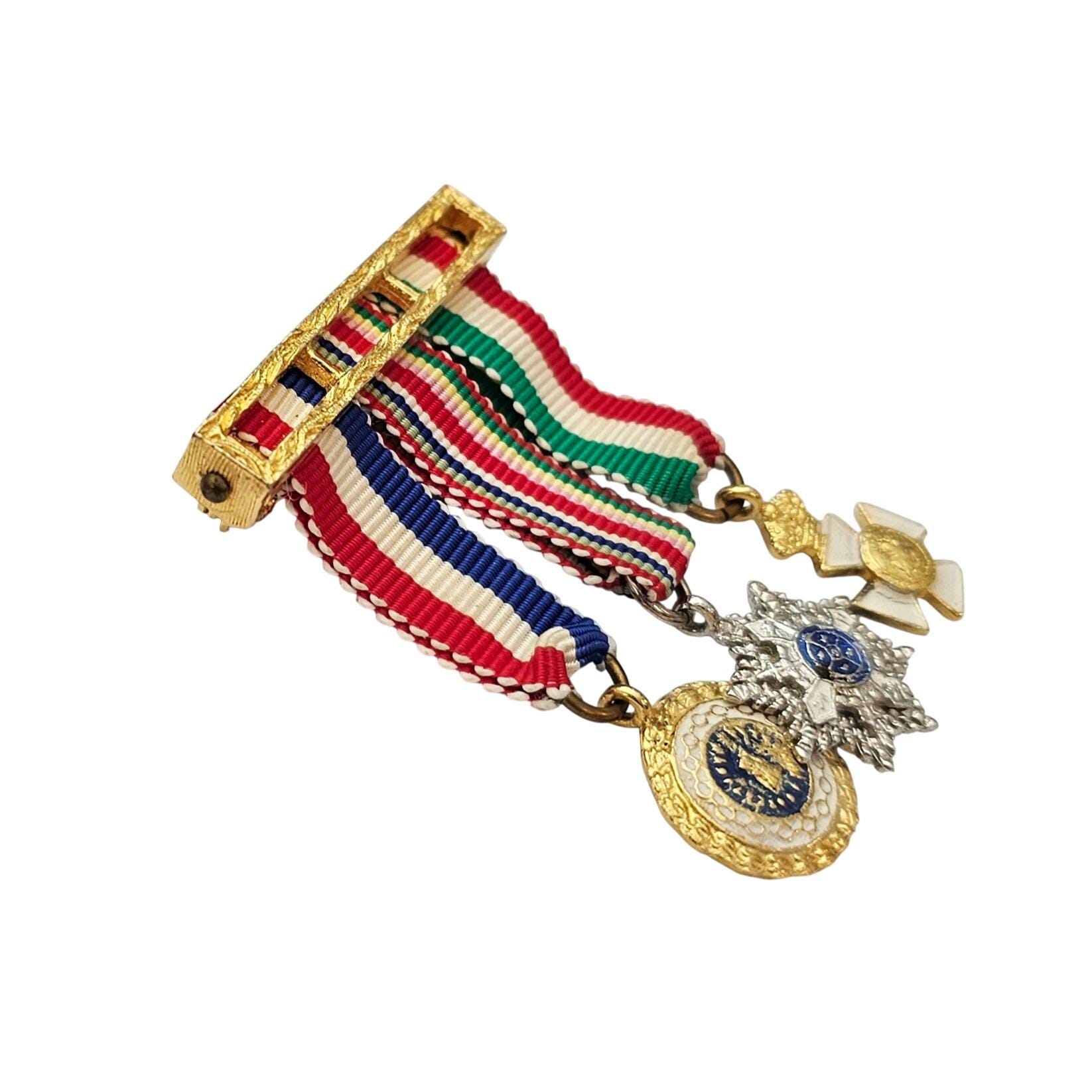 • De Nicola Bar Brooch Three Medallion Charm Dangle Pin