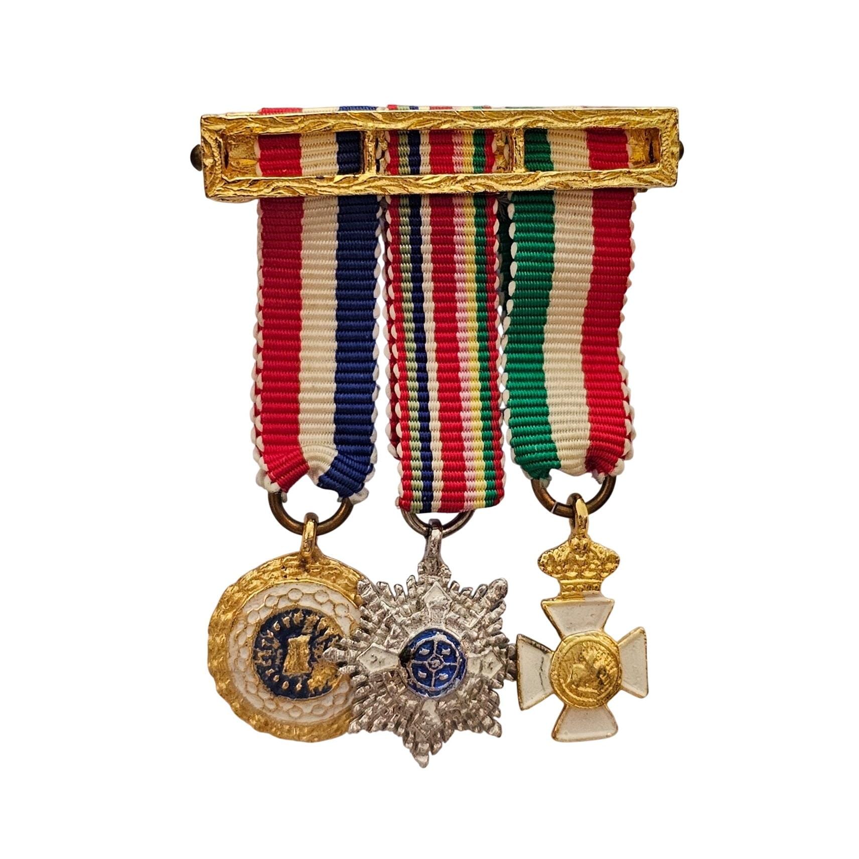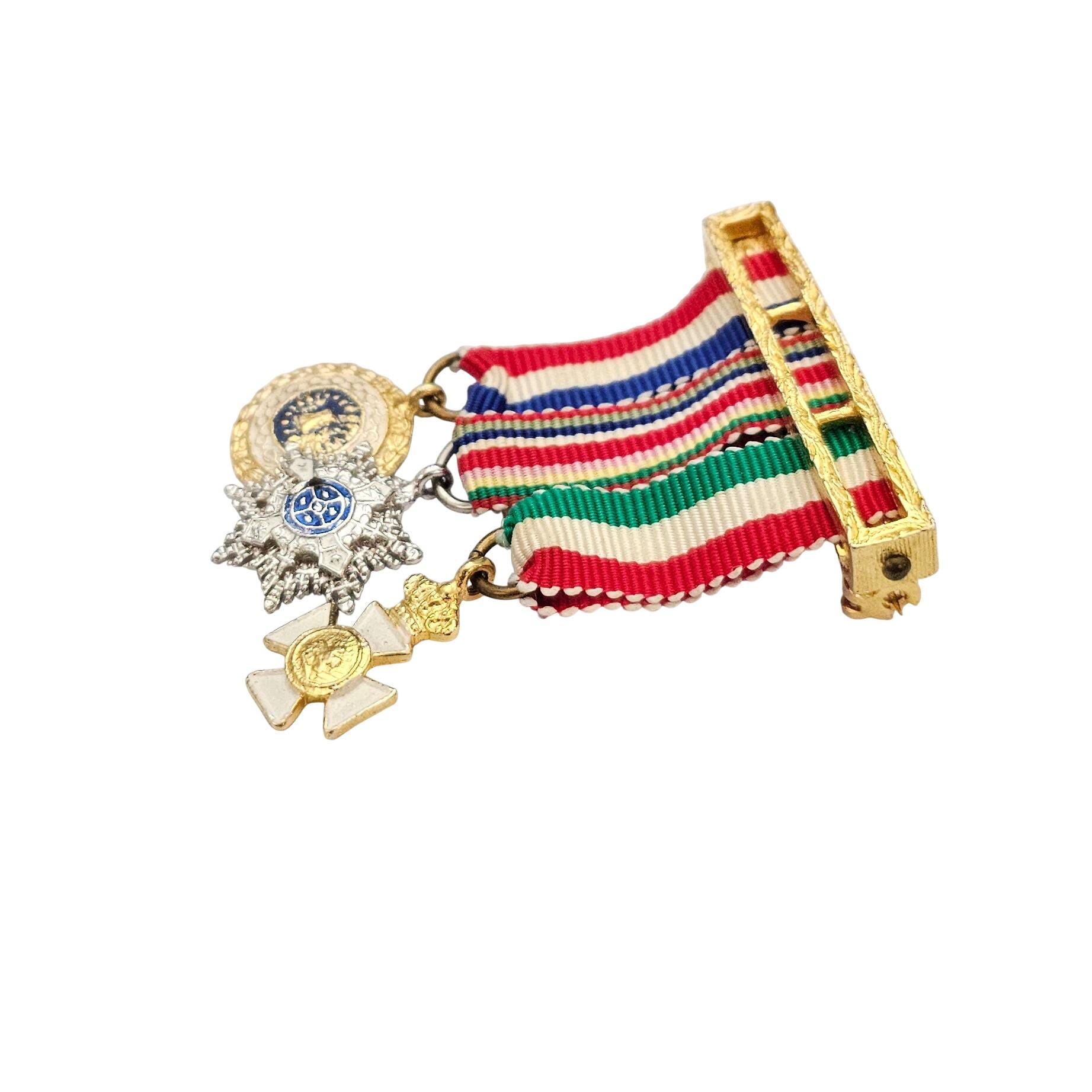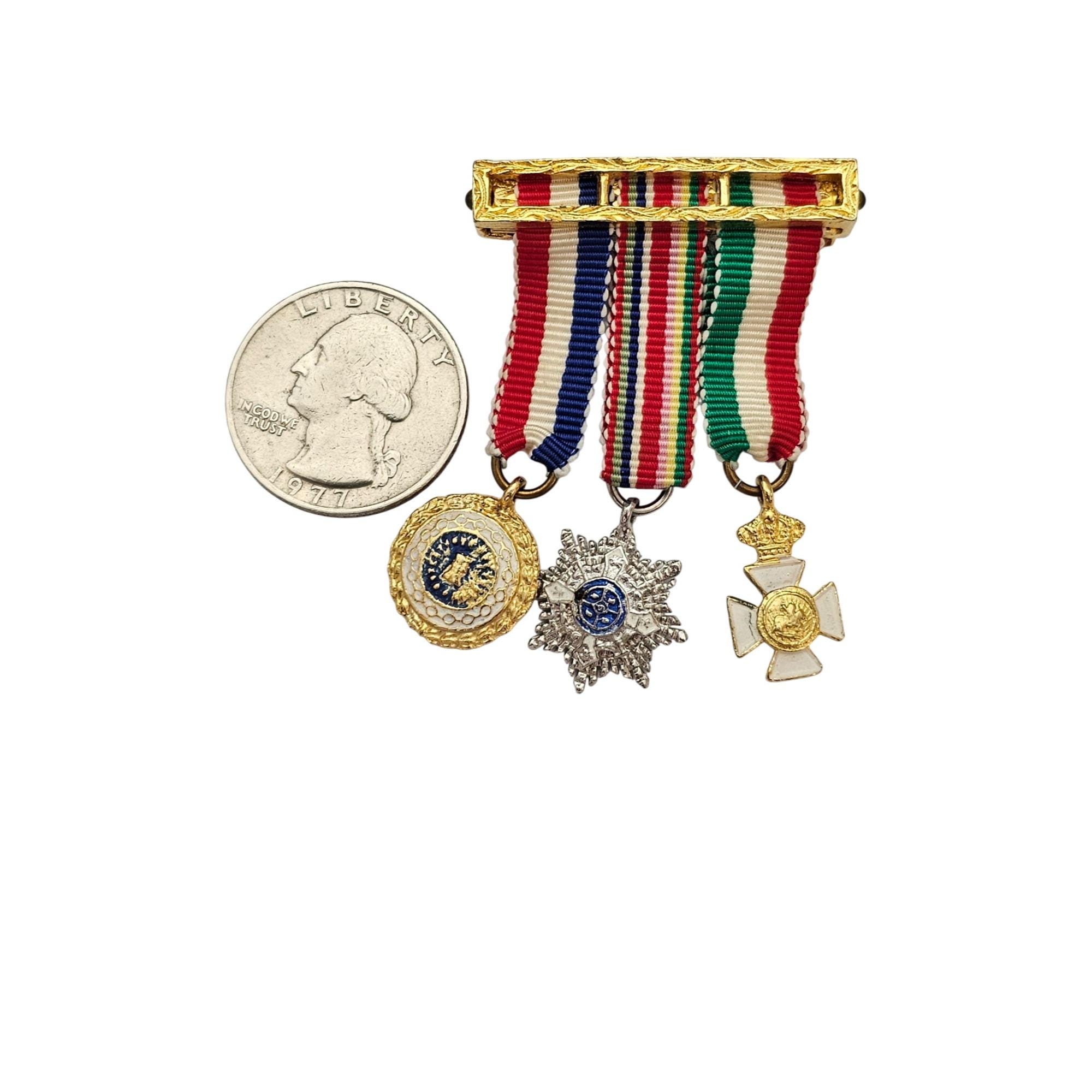 • De Nicola Bar Brooch Three Medallion Charm Dangle Pin