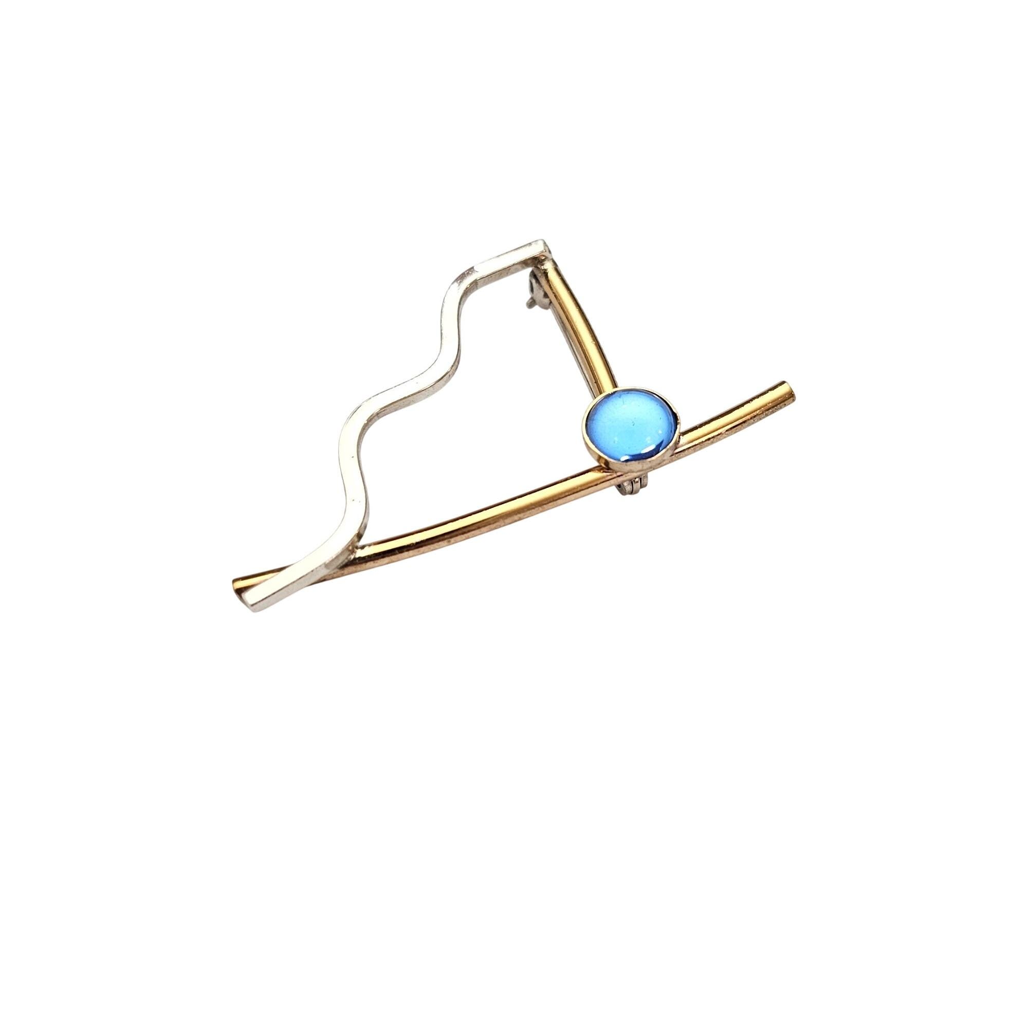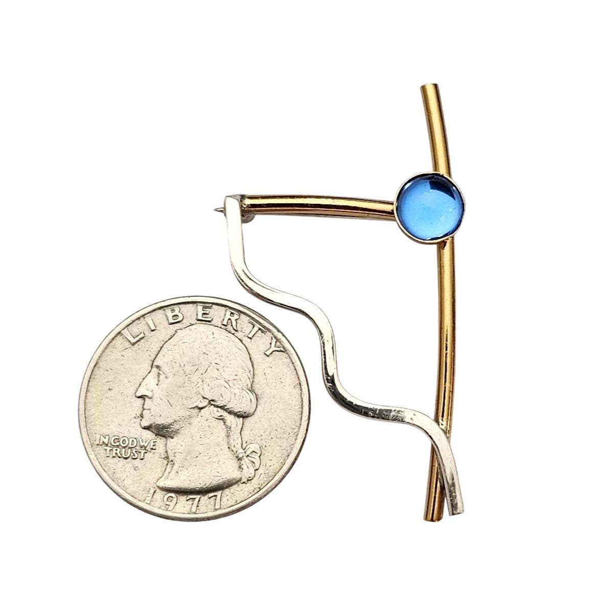Sterling Silver Brass Modernist Brooch Round Blue Cabochon Pin C665