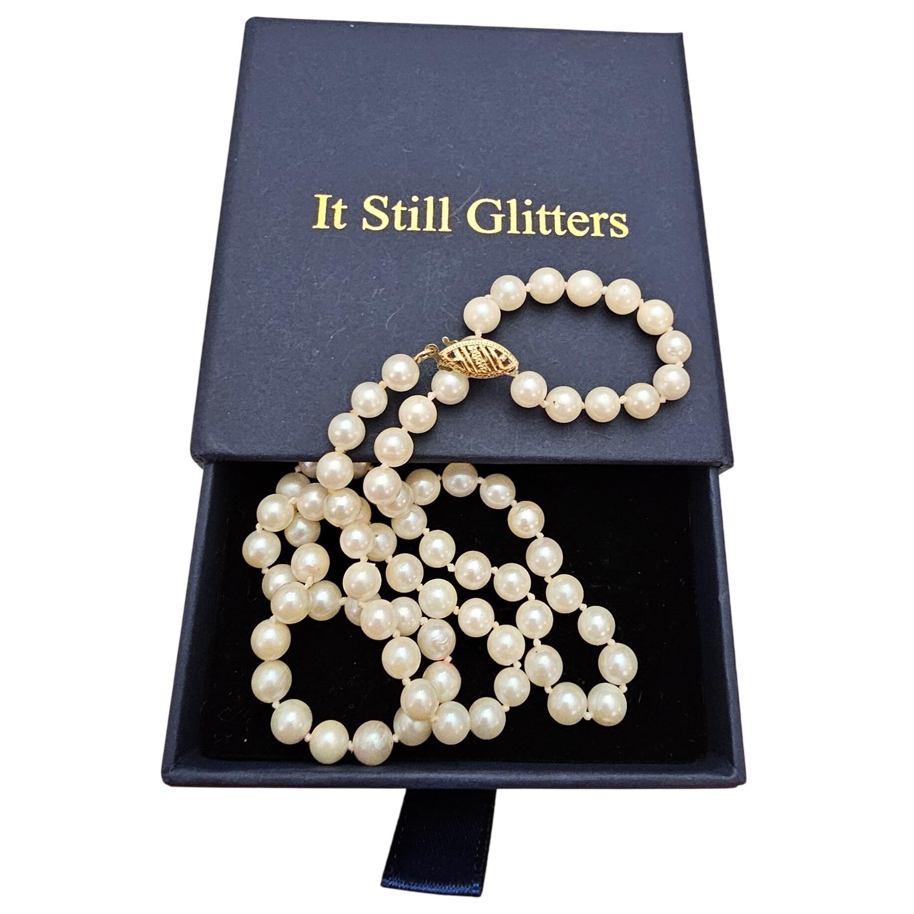 14K Knotted Pearl Strand Necklace, 18" Long C709