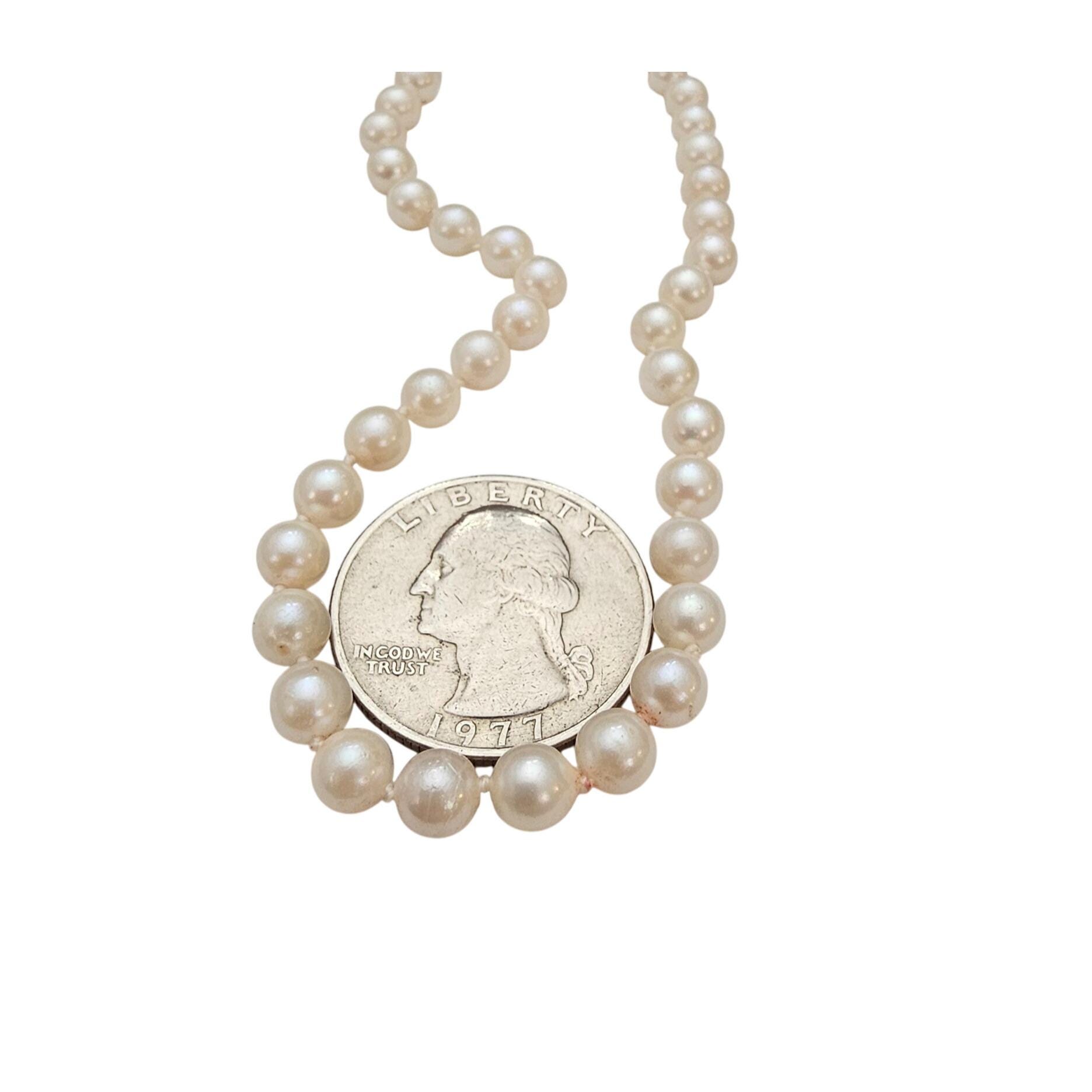 • This lovely pearl necklace measures 18 inches in total length