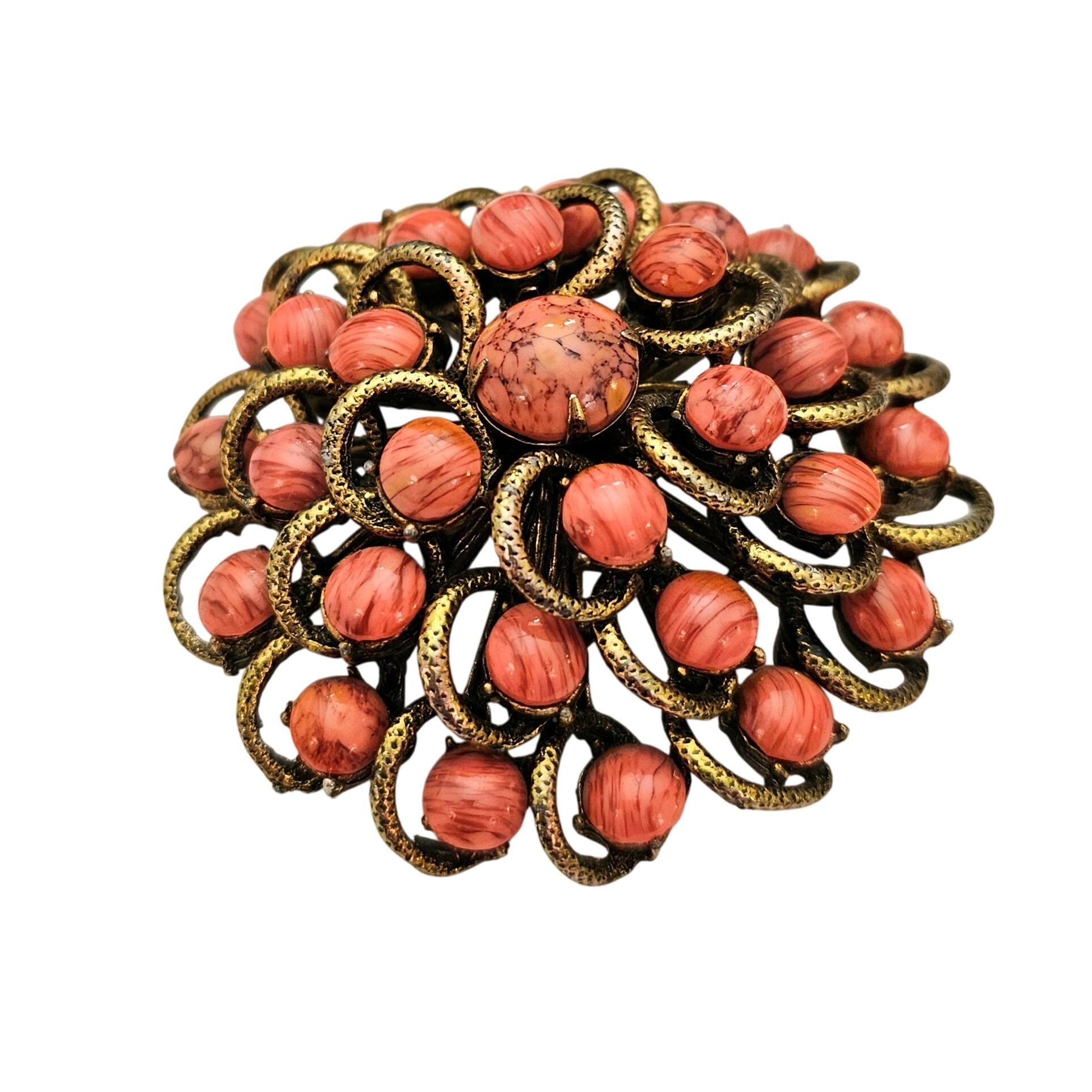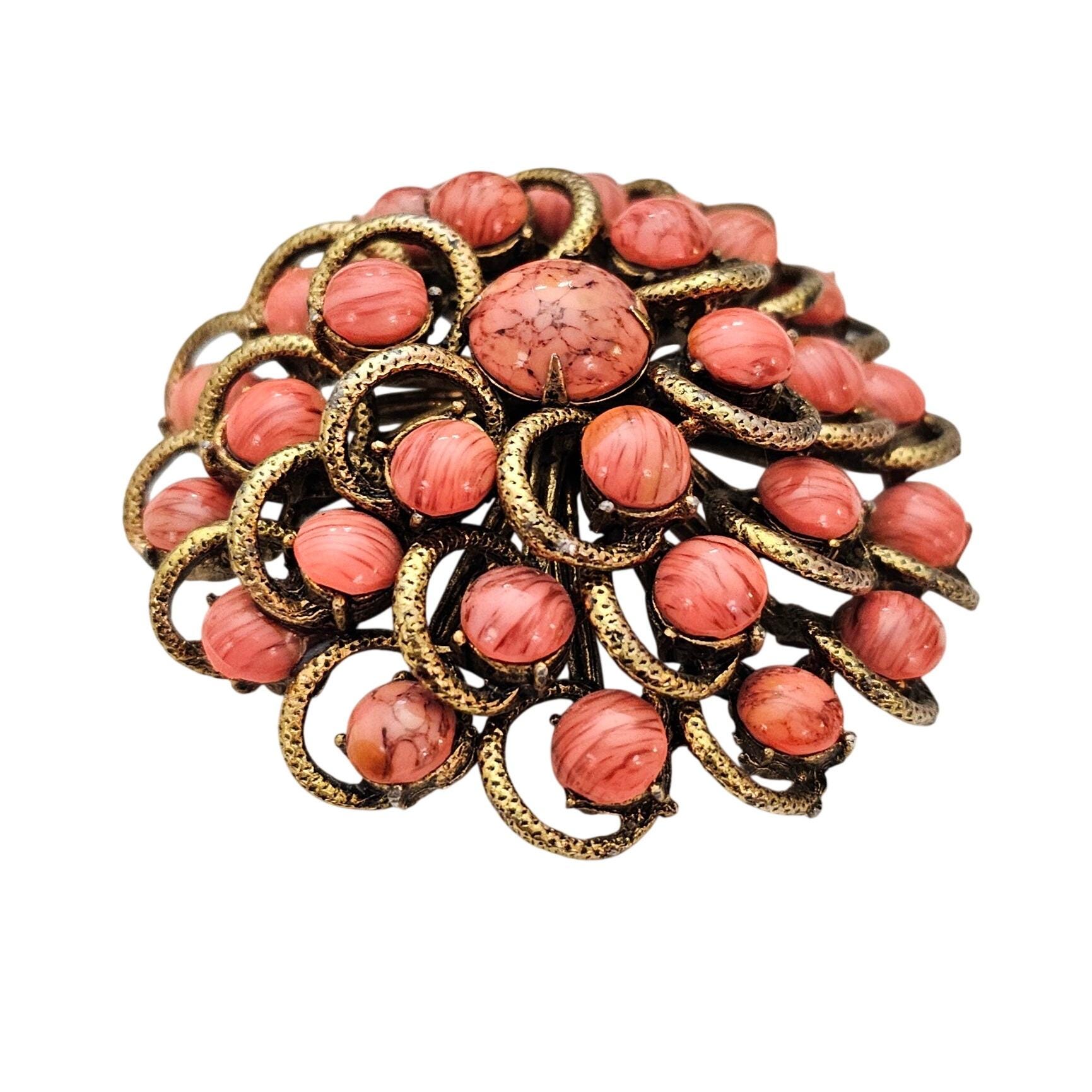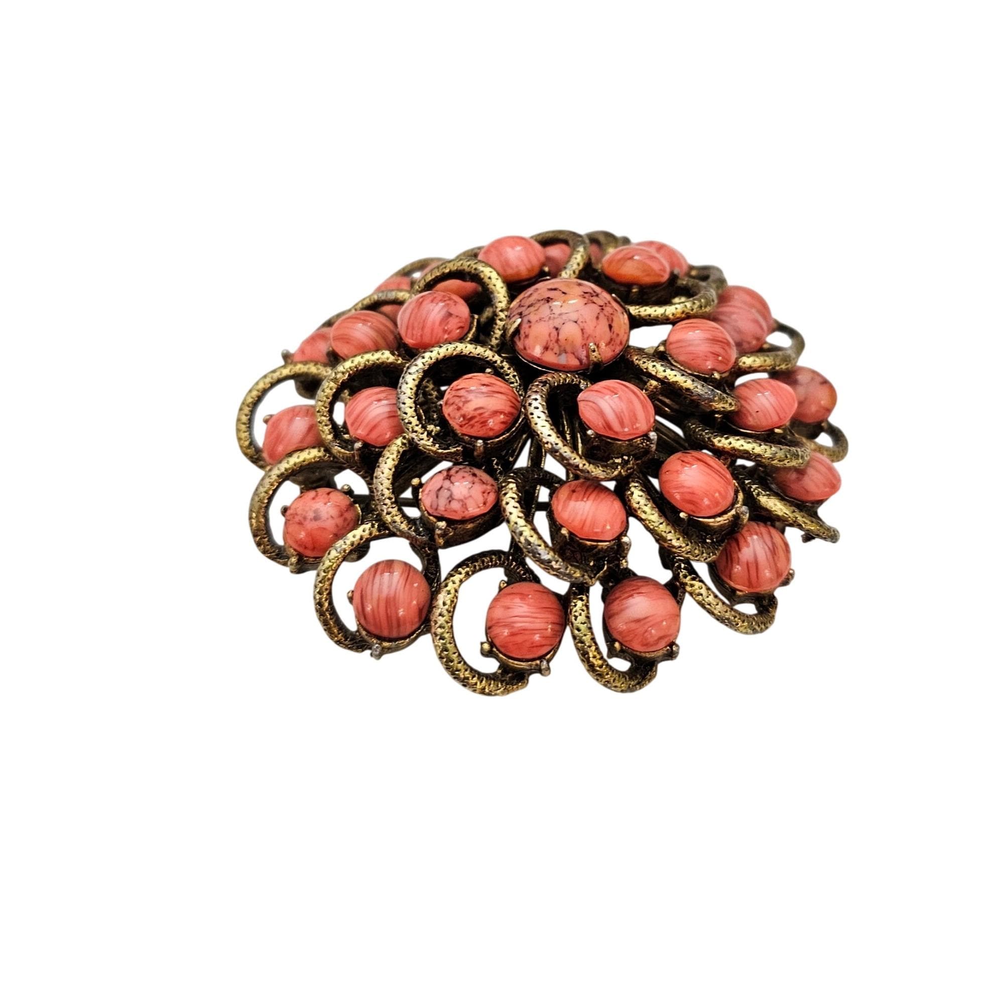 Domed Brooch Salmon Pinkish Opaque Flawed Cabochon Layered Cluster Pin C708