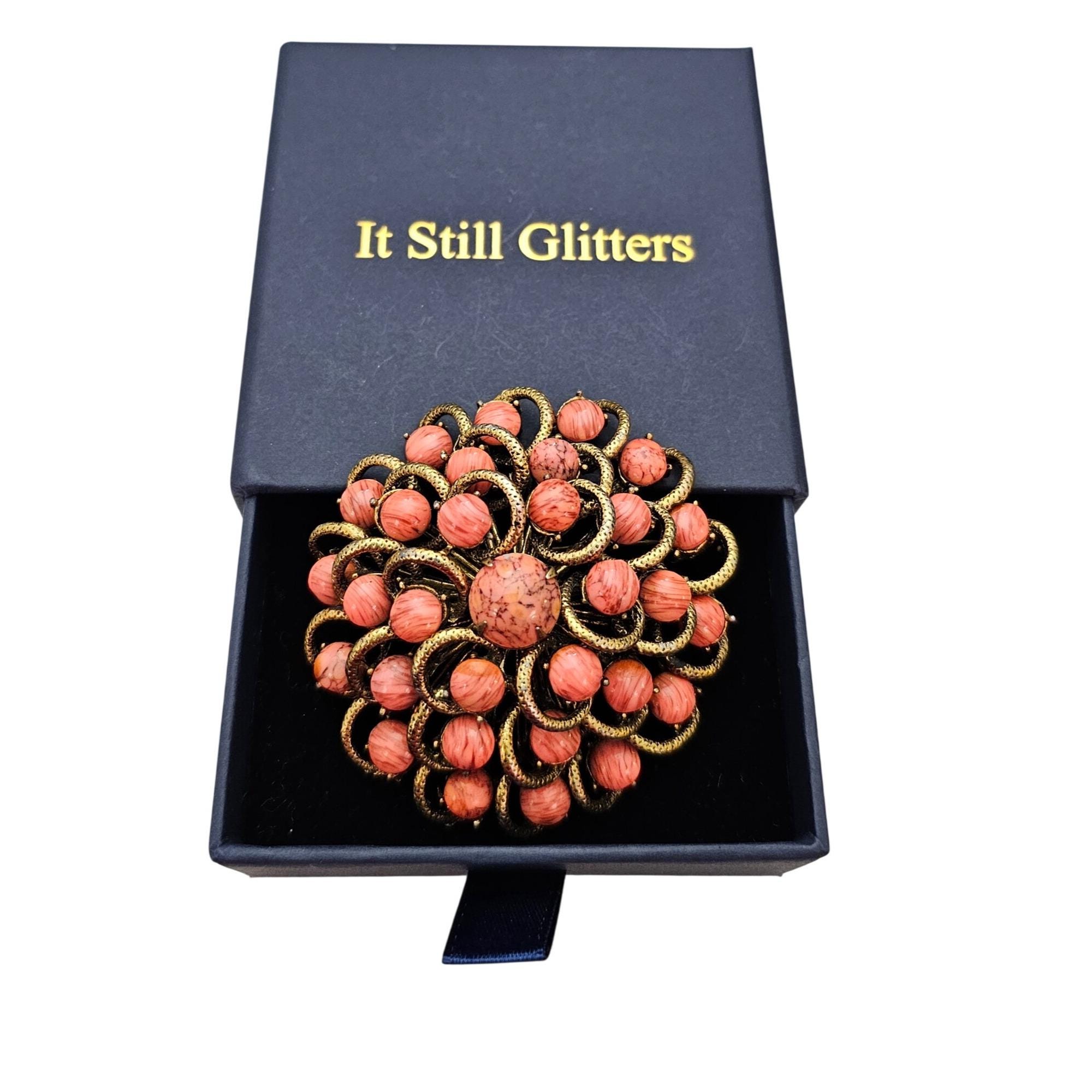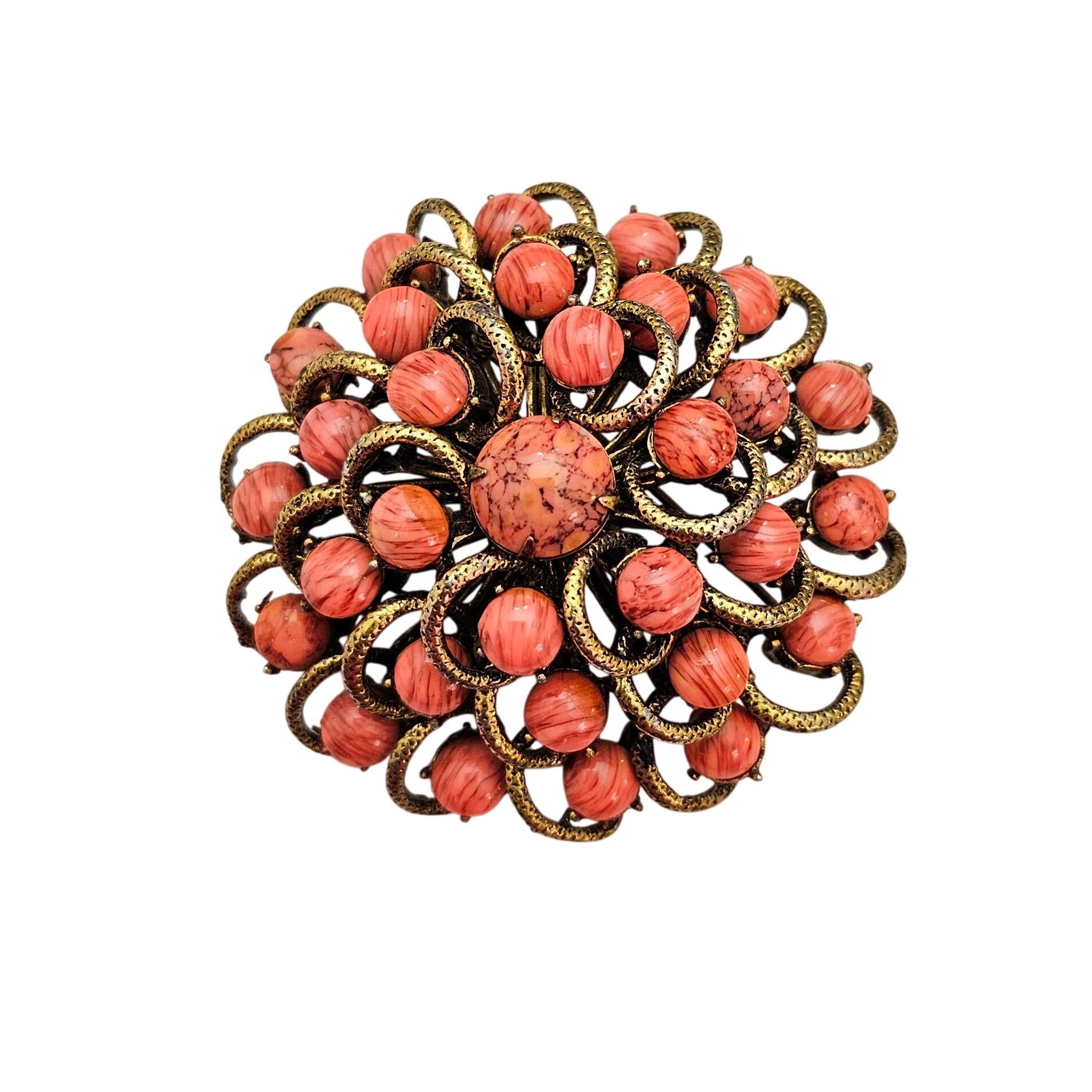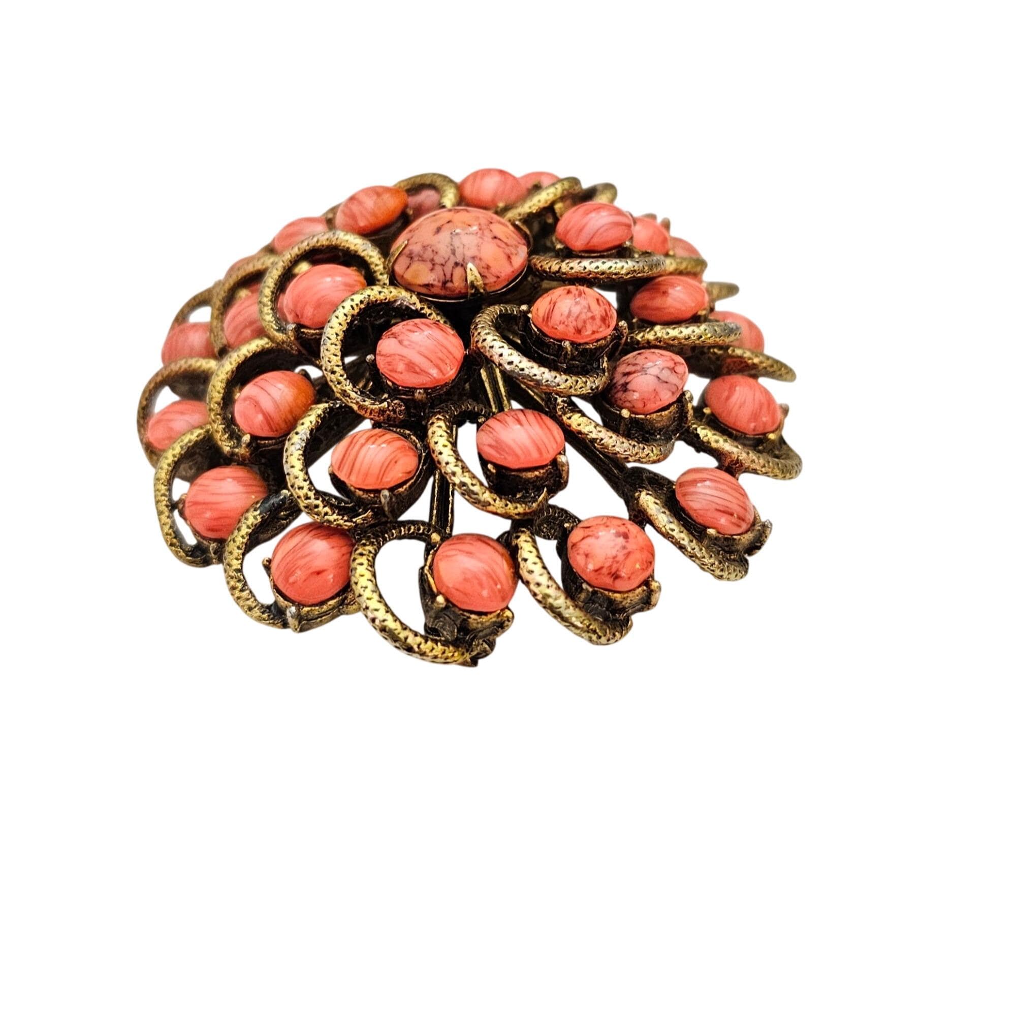Domed Brooch Salmon Pinkish Opaque Flawed Cabochon Layered Cluster Pin C708