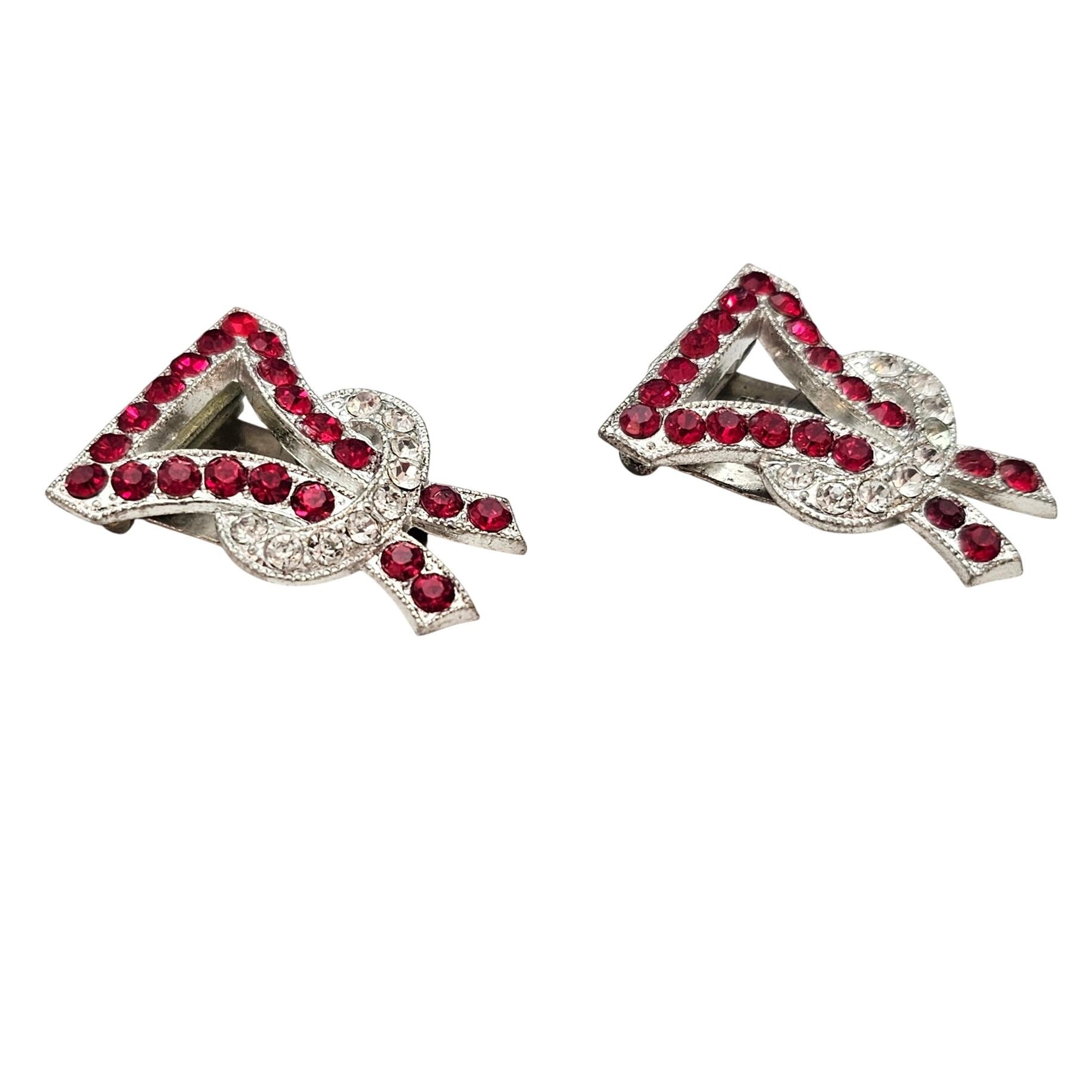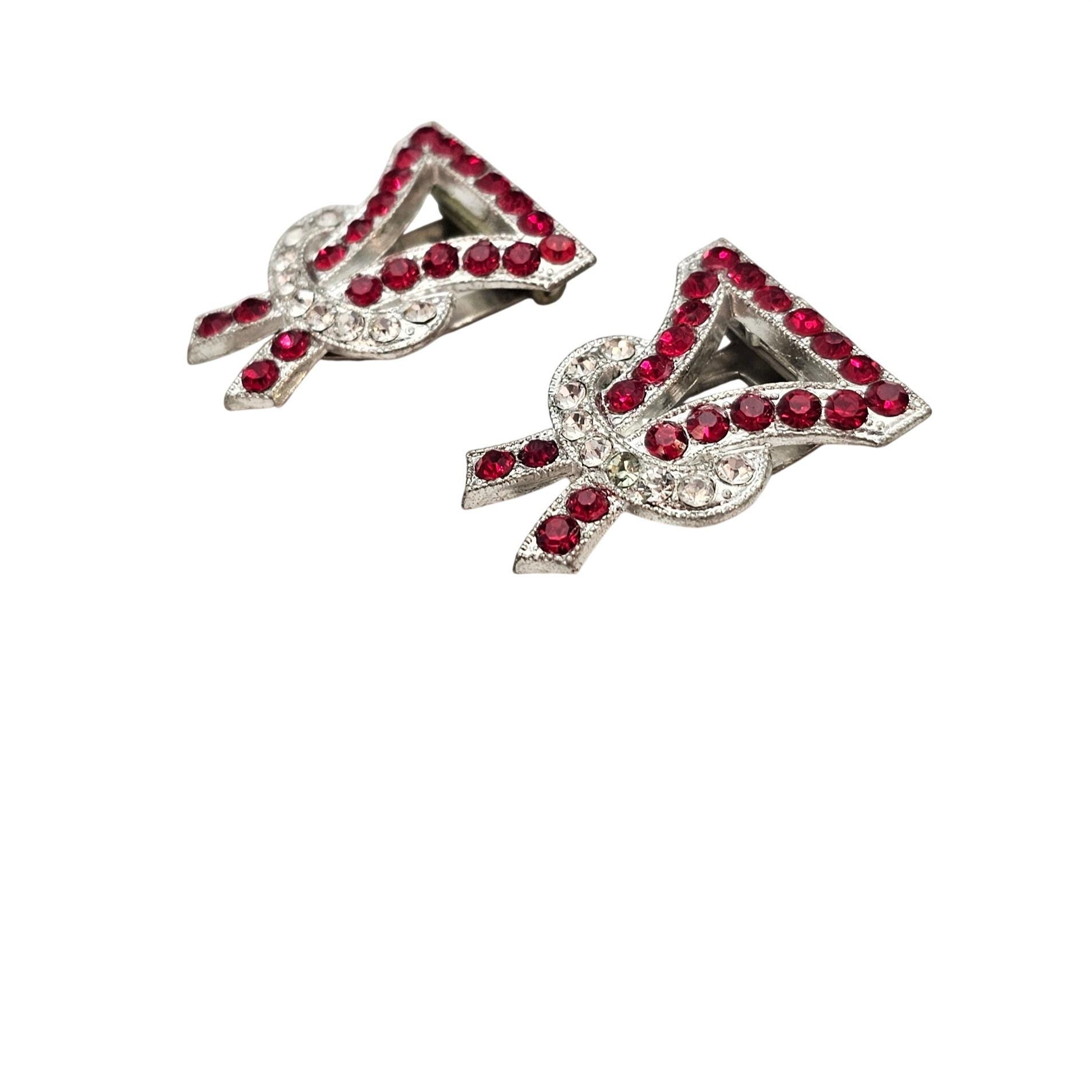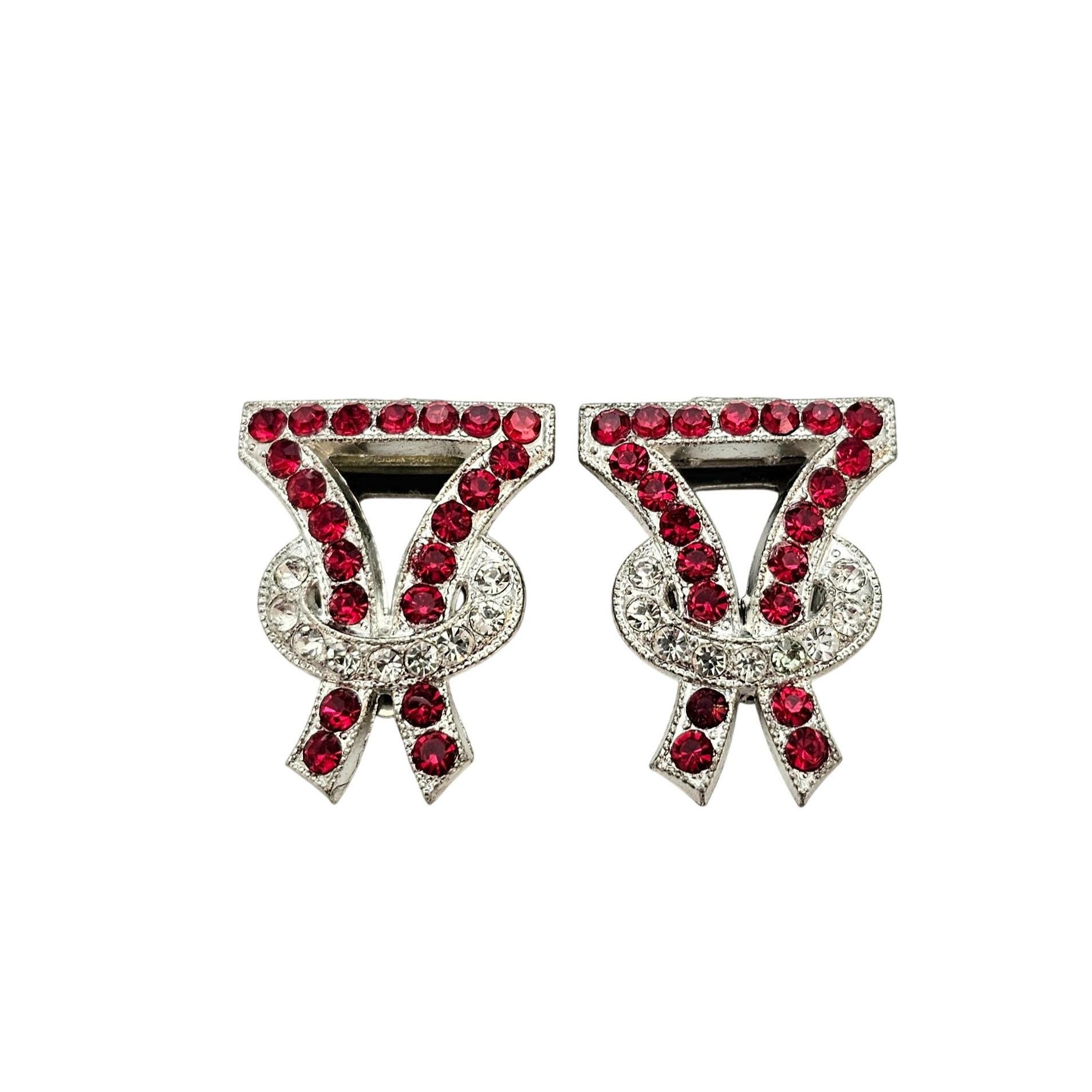 Red Clear Rhinestone Fur Clips, Art Deco Signed Goody C706