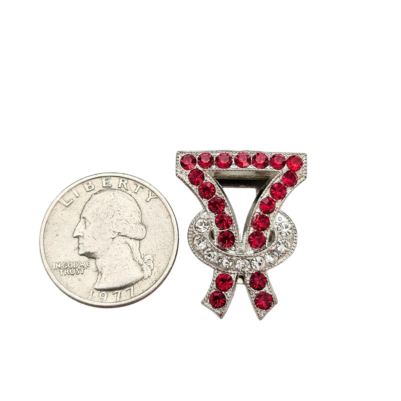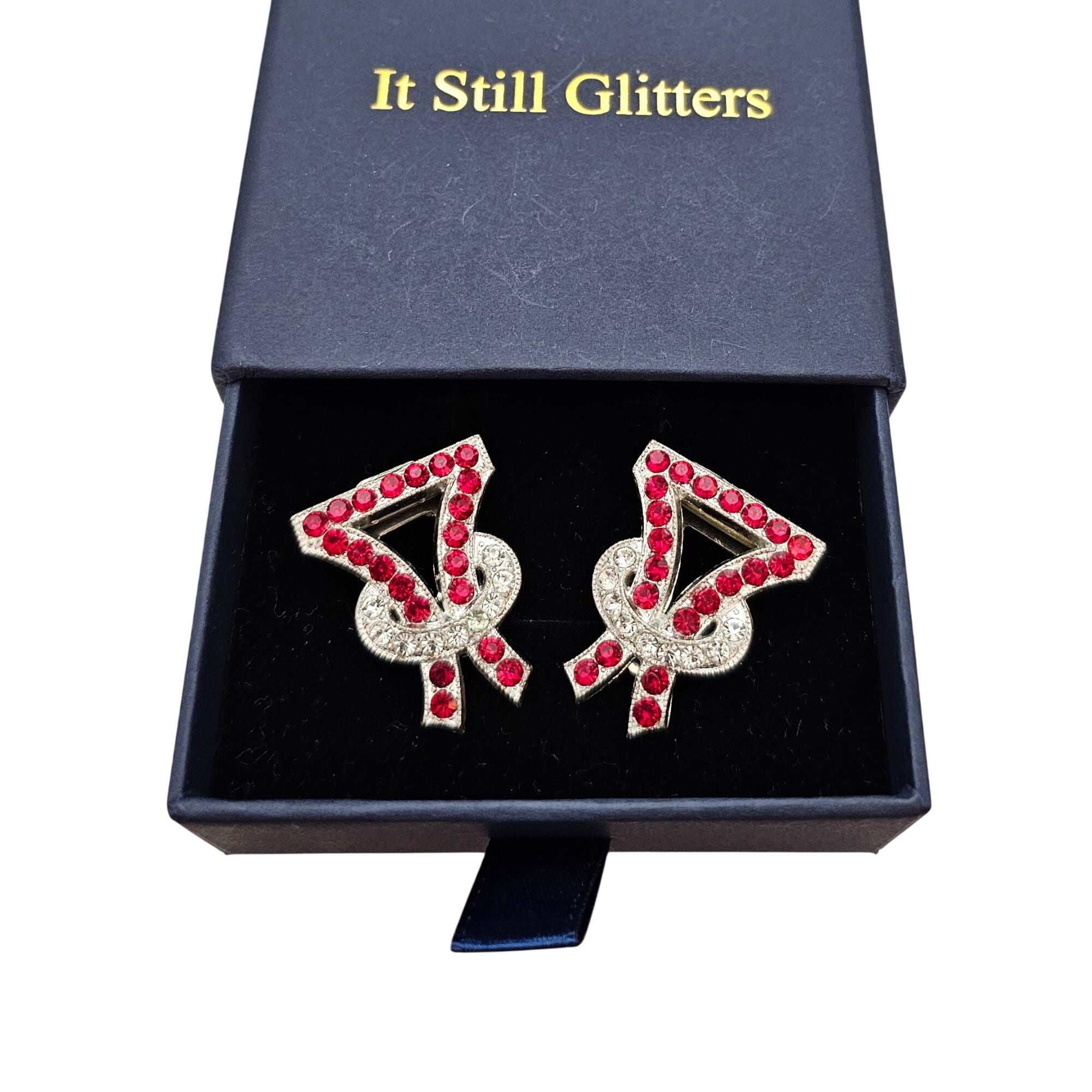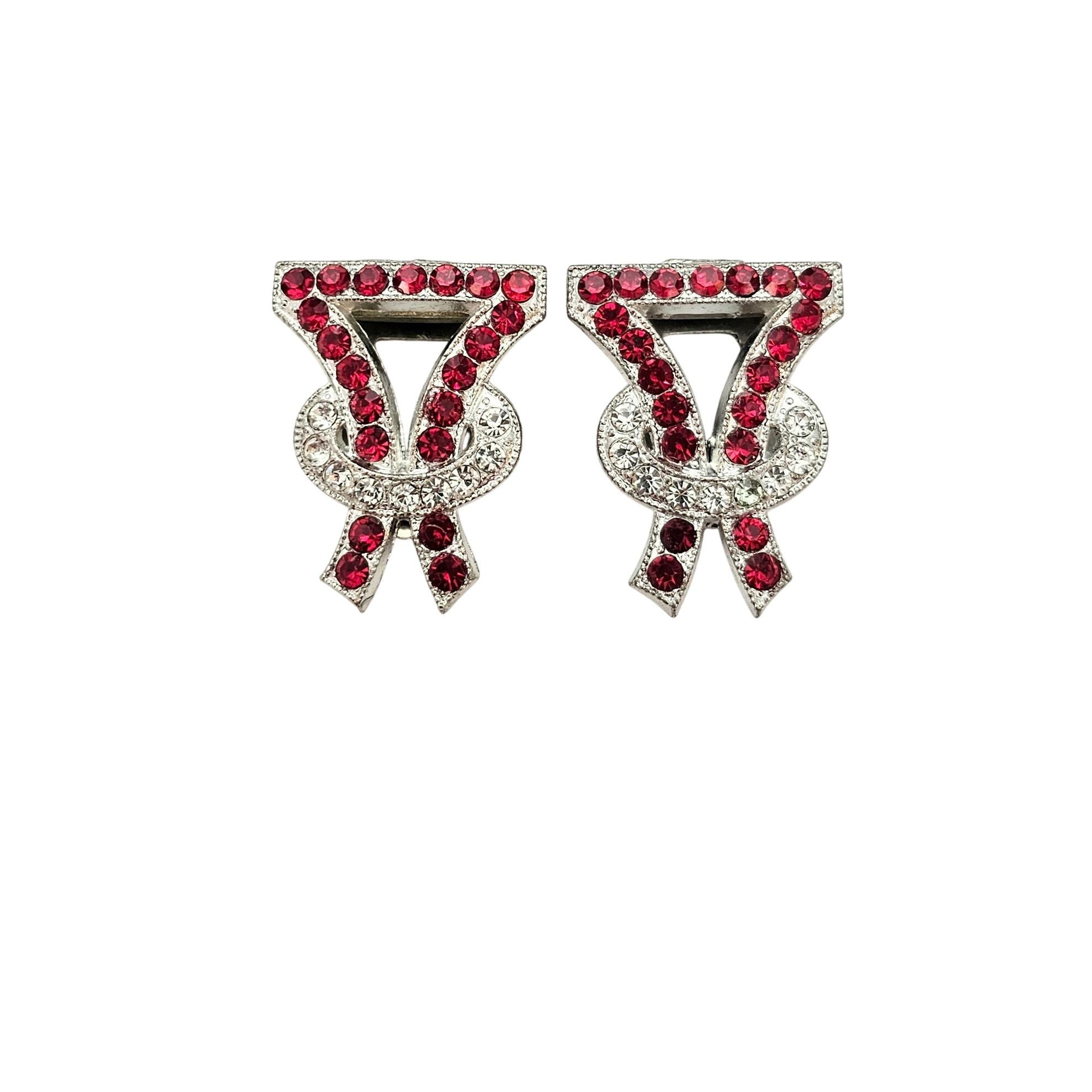 Red Clear Rhinestone Fur Clips, Art Deco Signed Goody C706