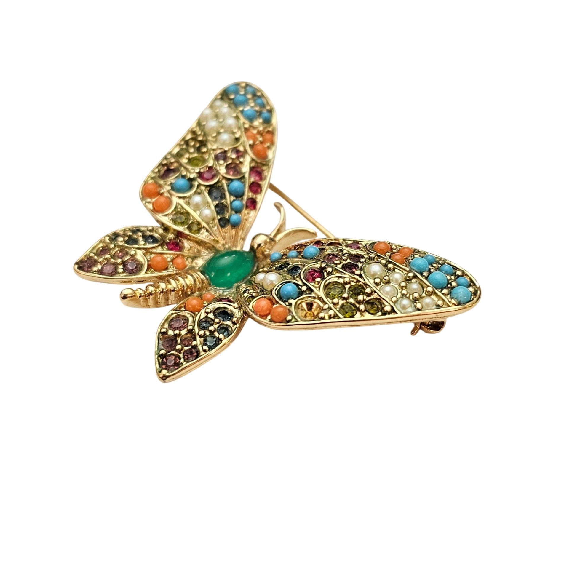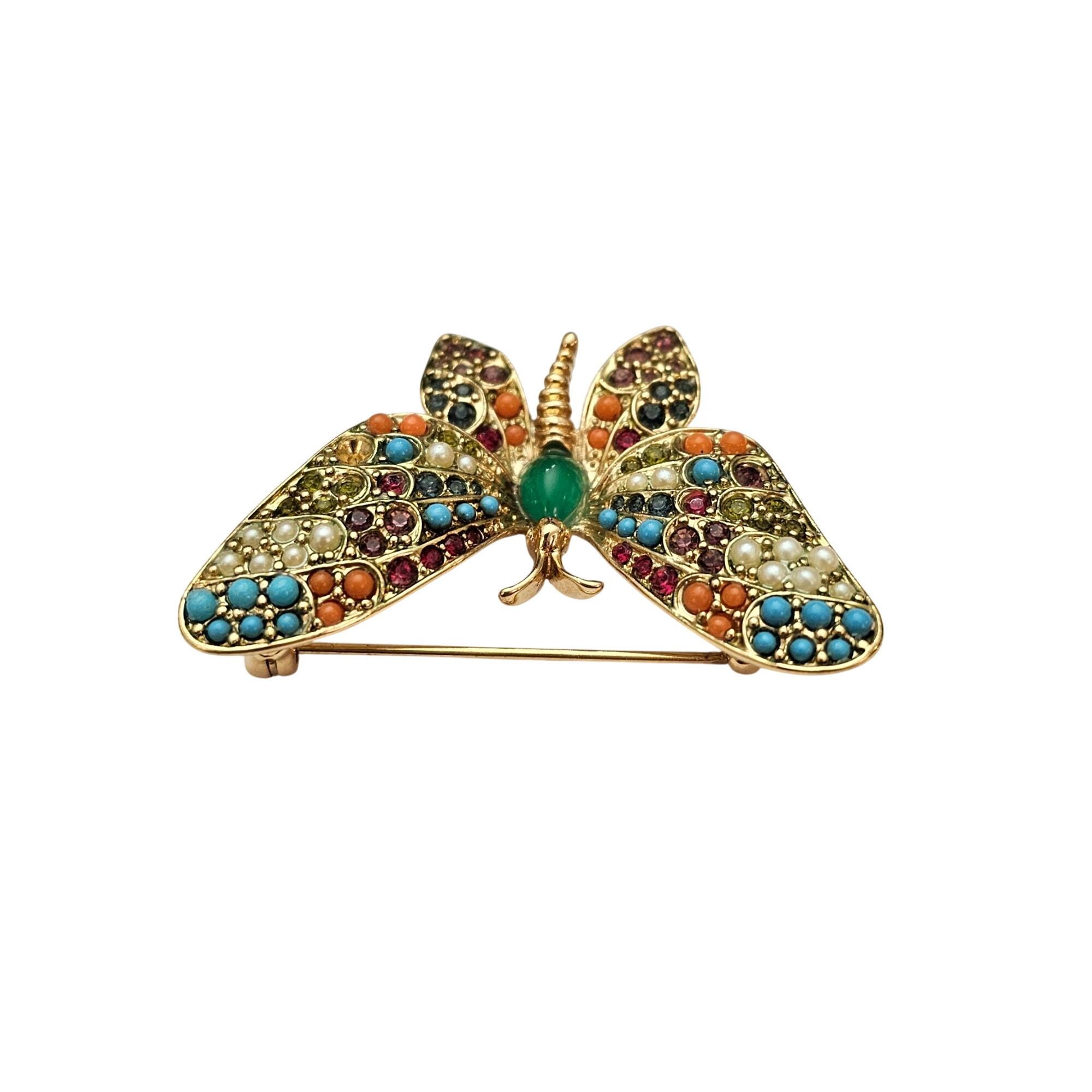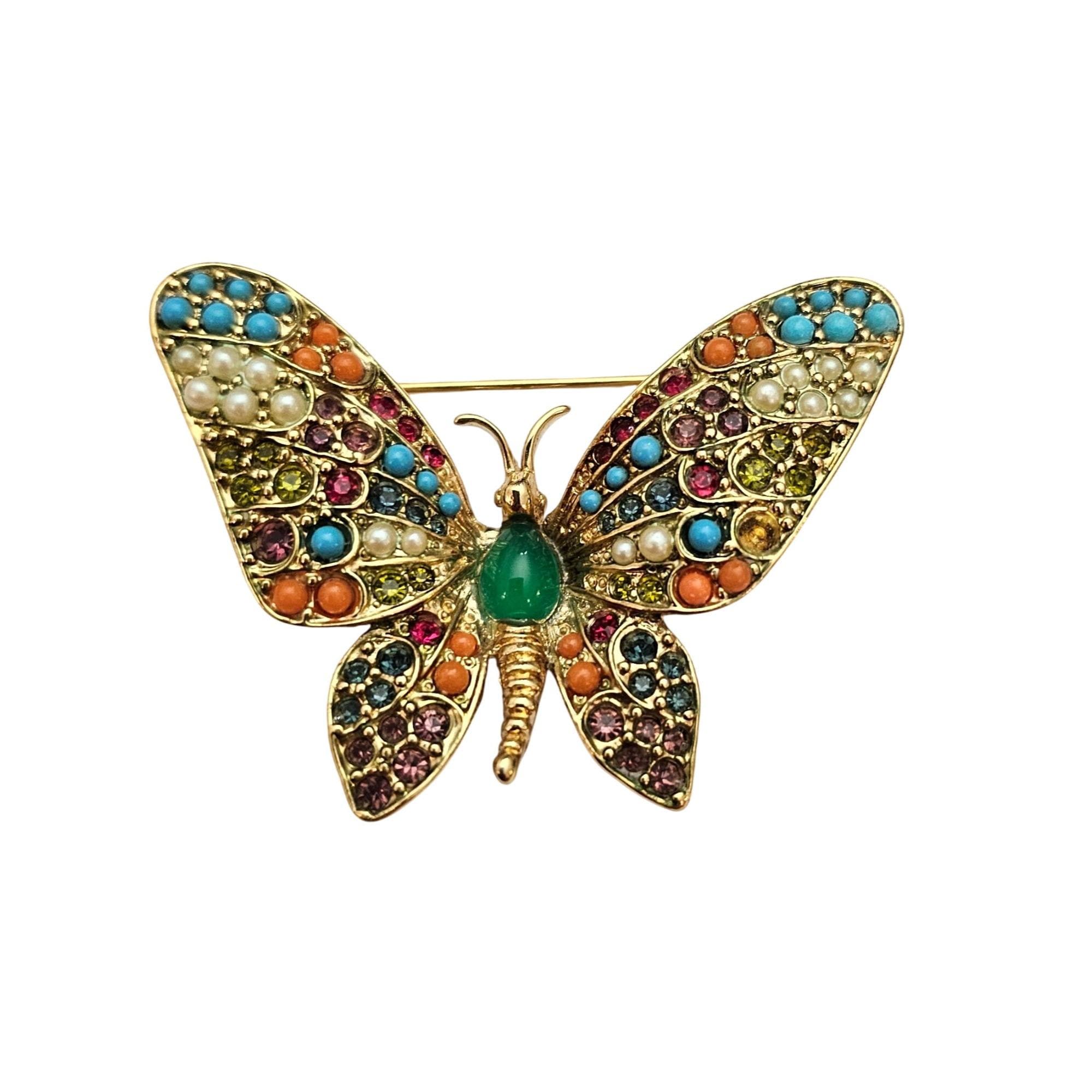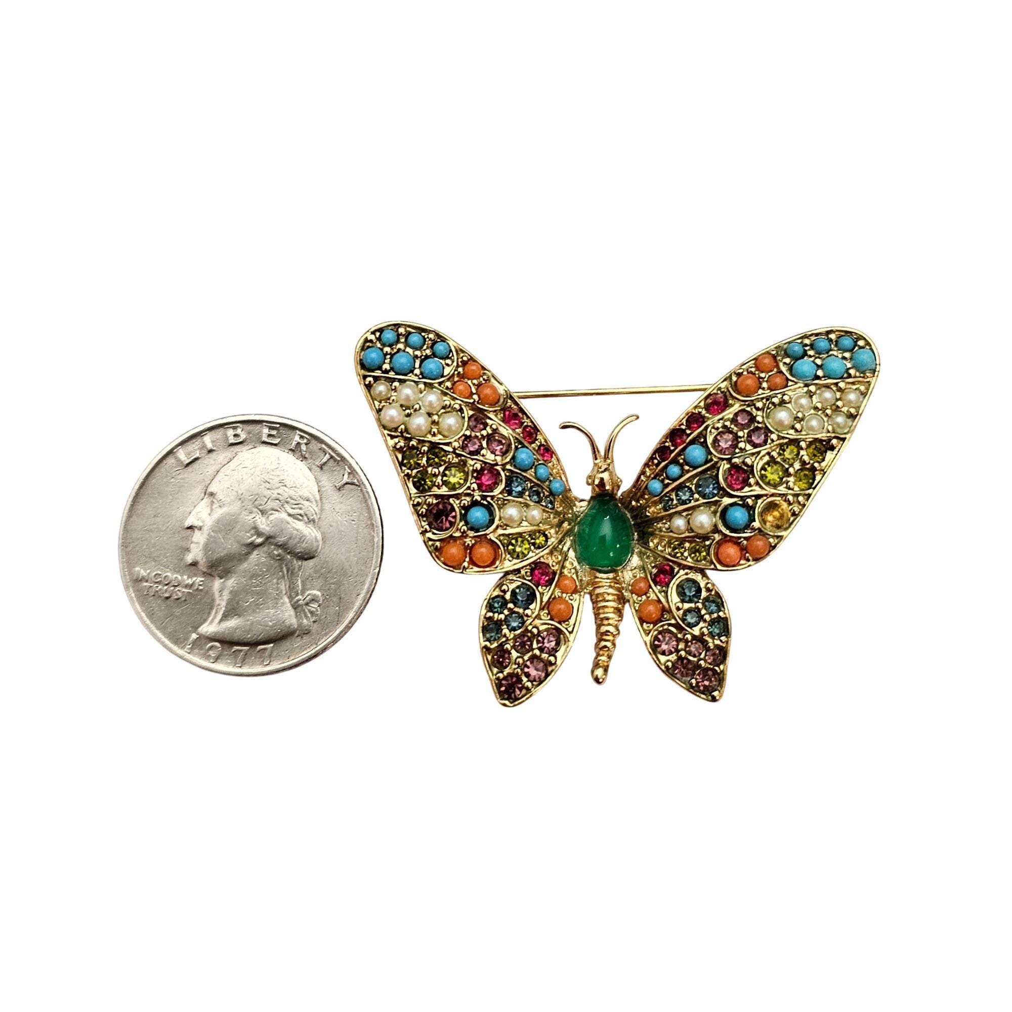 D’Orlan Butterfly Brooch Faux Pearl Colorful Cabochon Pin Signed, C705