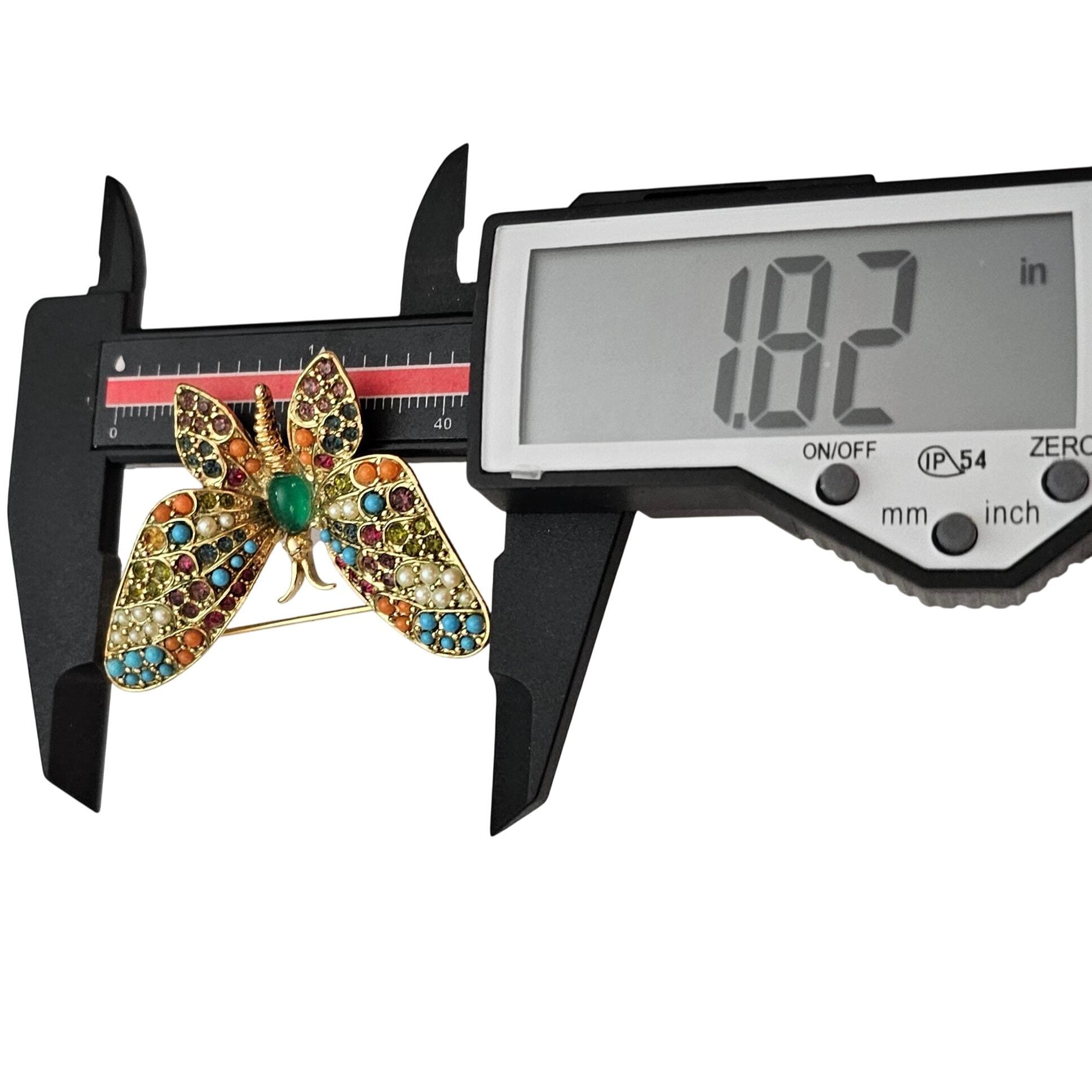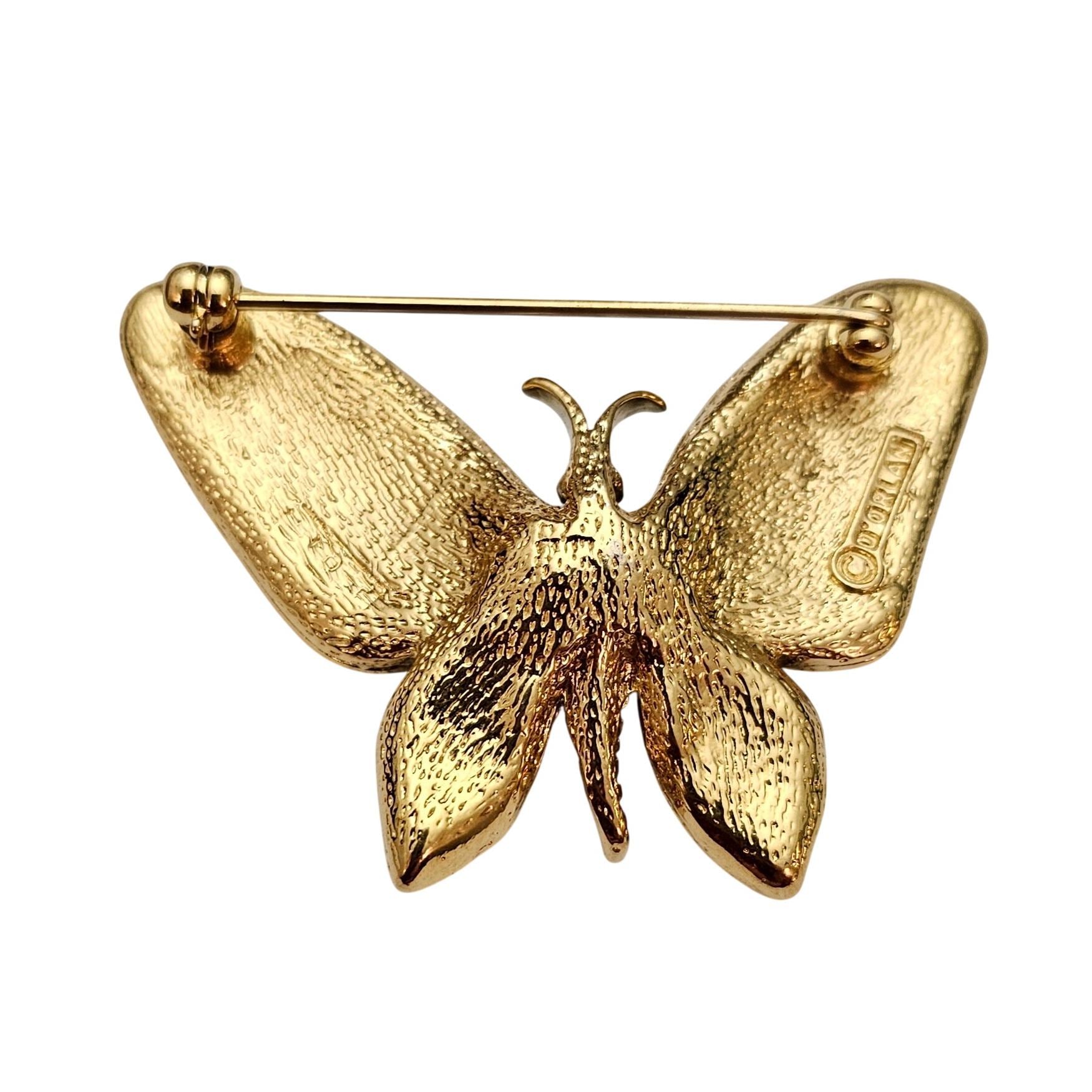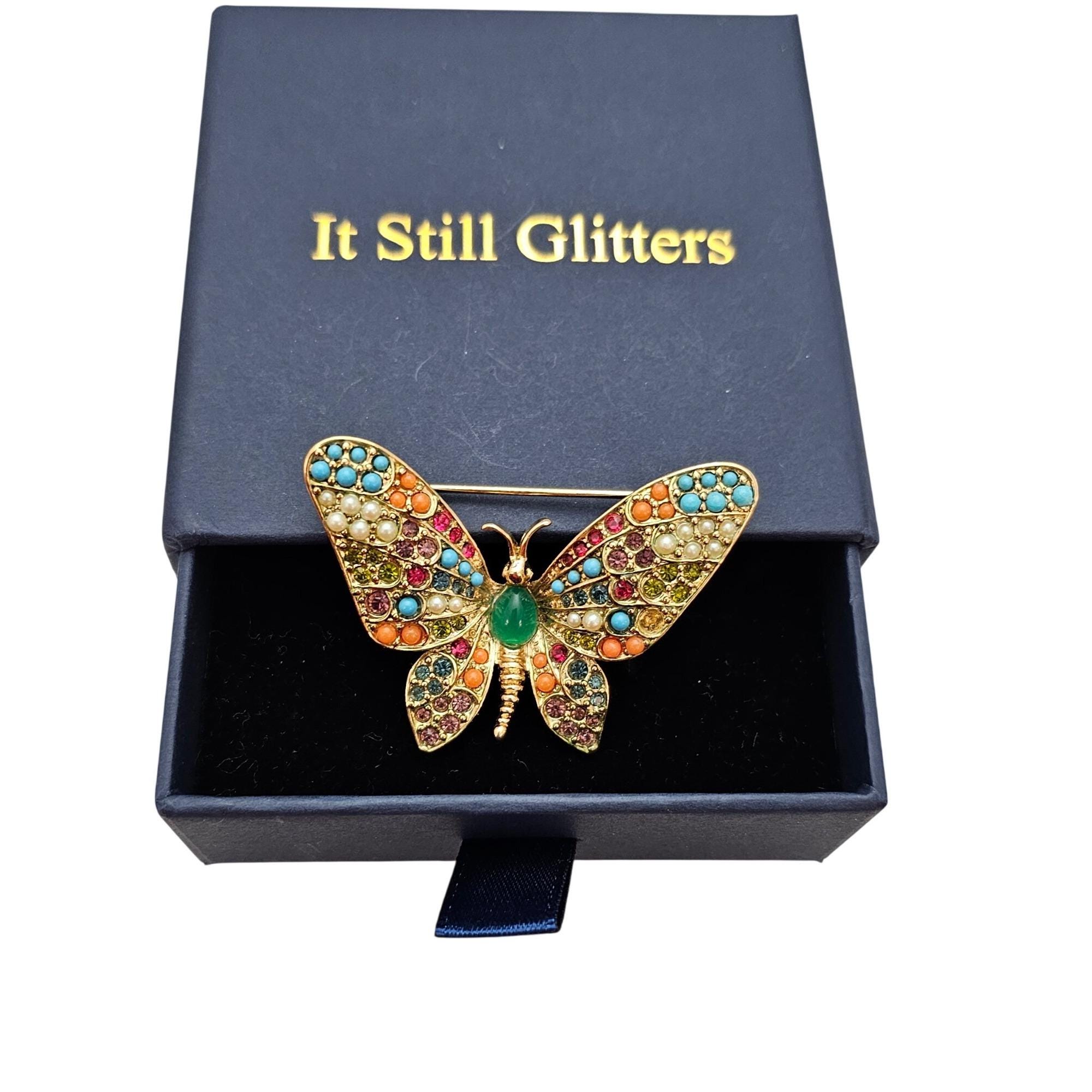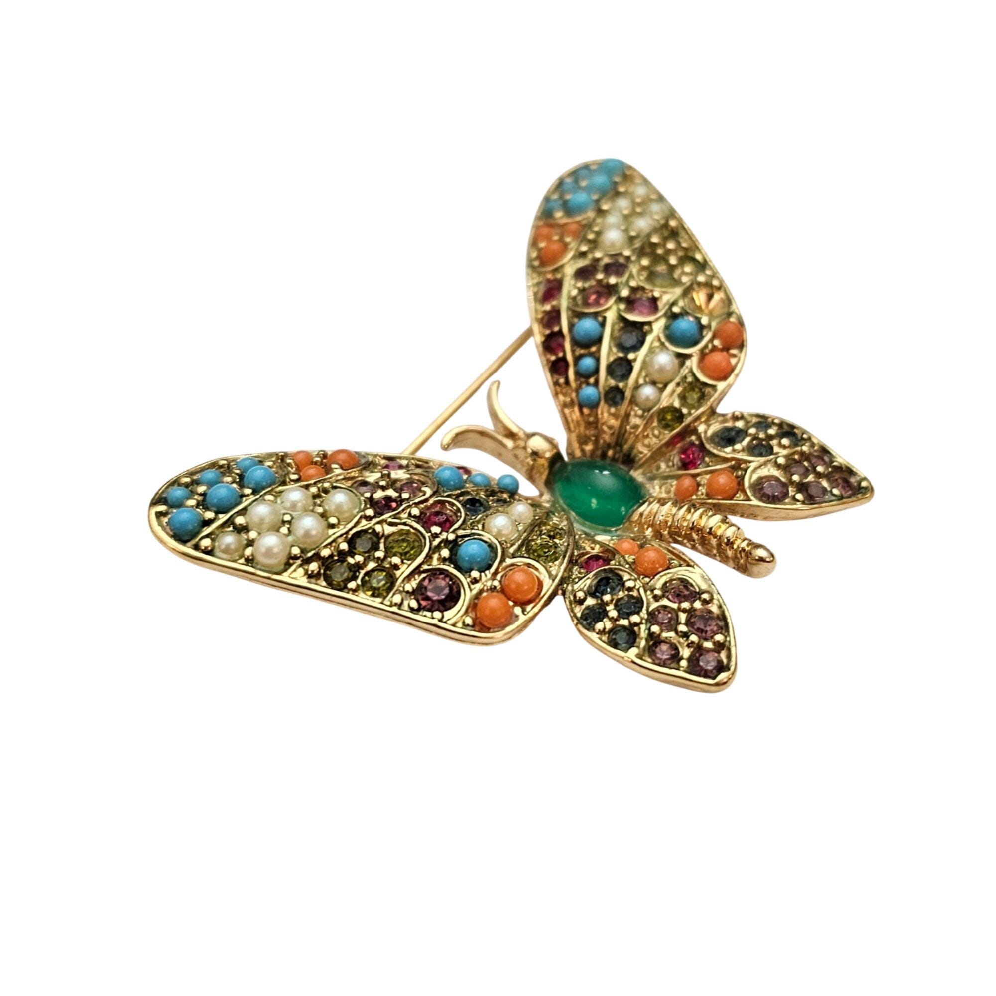 D’Orlan Butterfly Brooch Faux Pearl Colorful Cabochon Pin Signed, C705