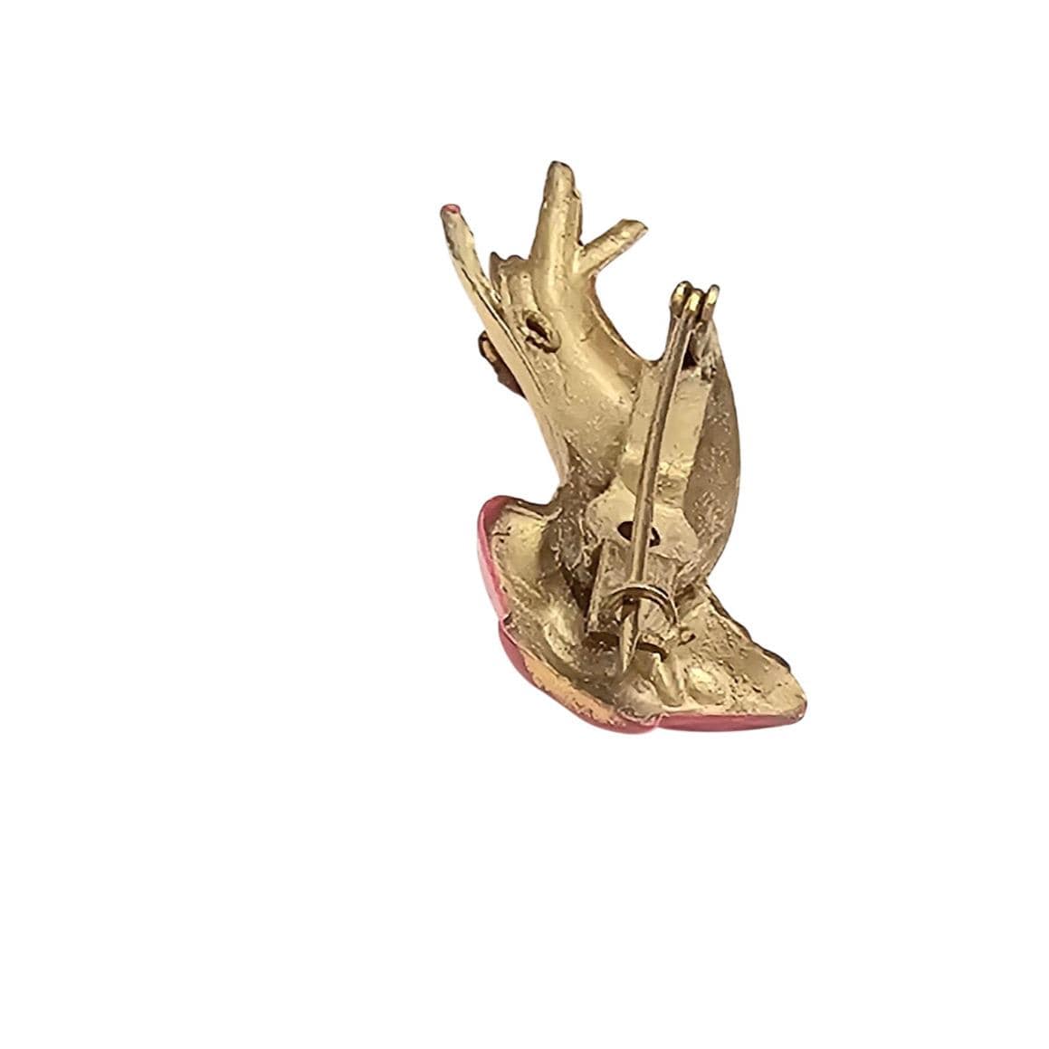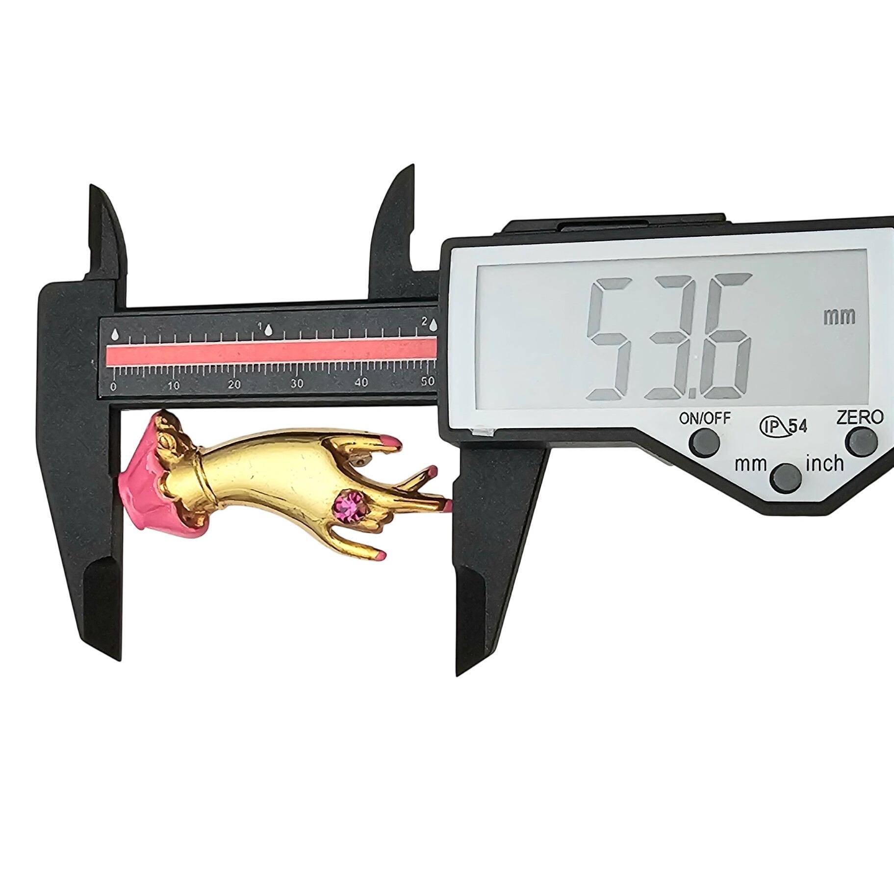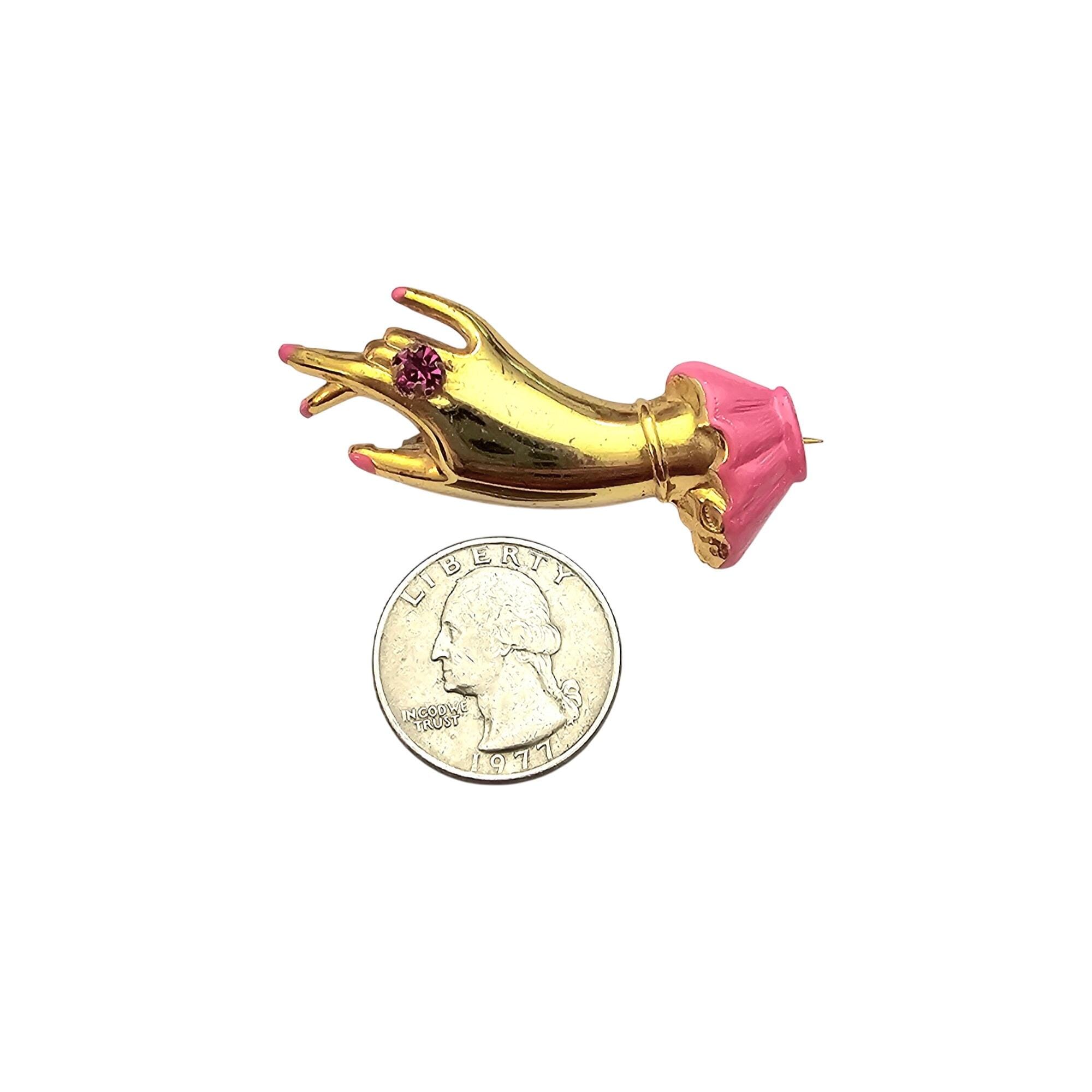 Hand Brooch Vintage Pin Pink Enamel Cuff, Nails, Rhinestone Ring Pin C691