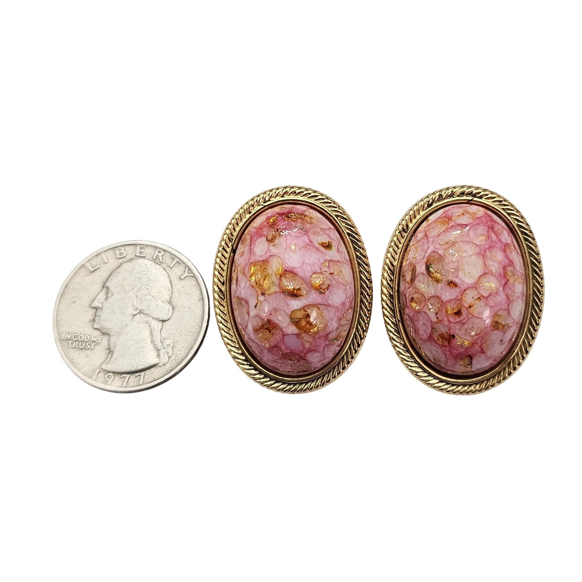 Pink Domed Oval Art Glass Cab Clip On Earrings C685