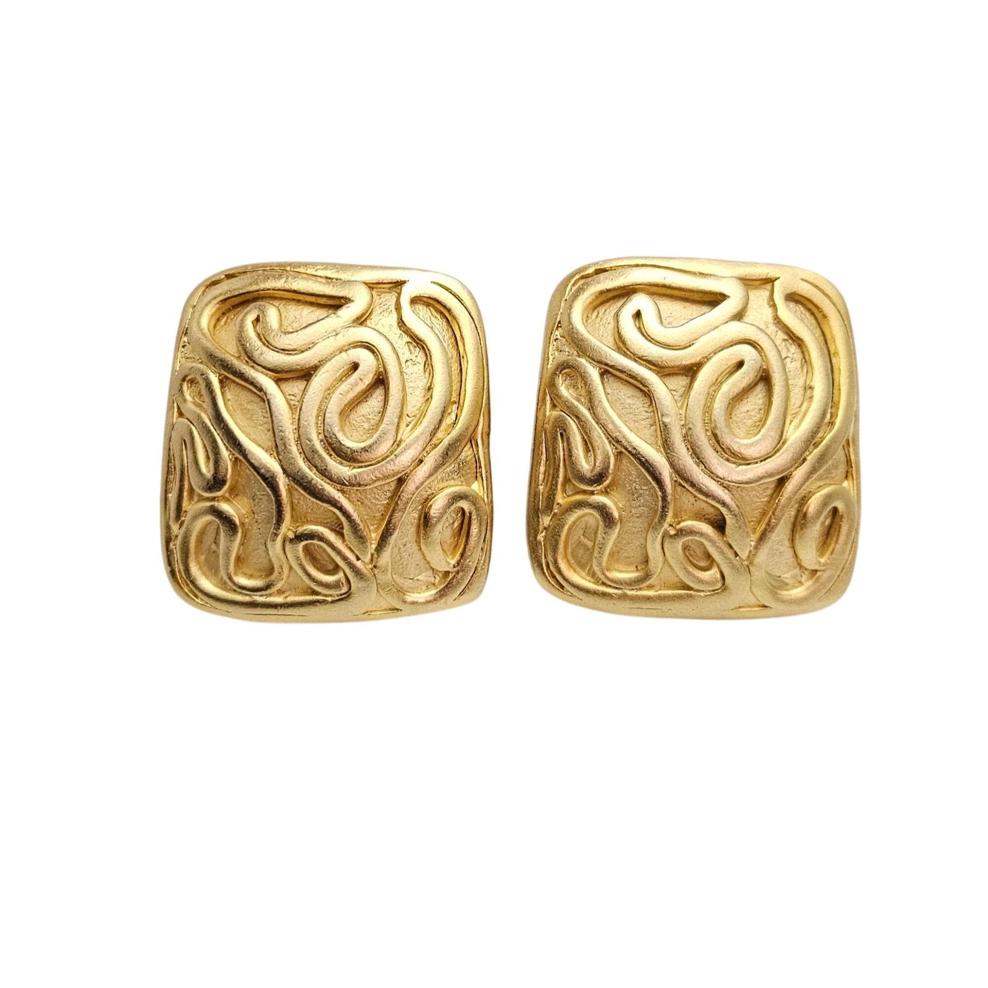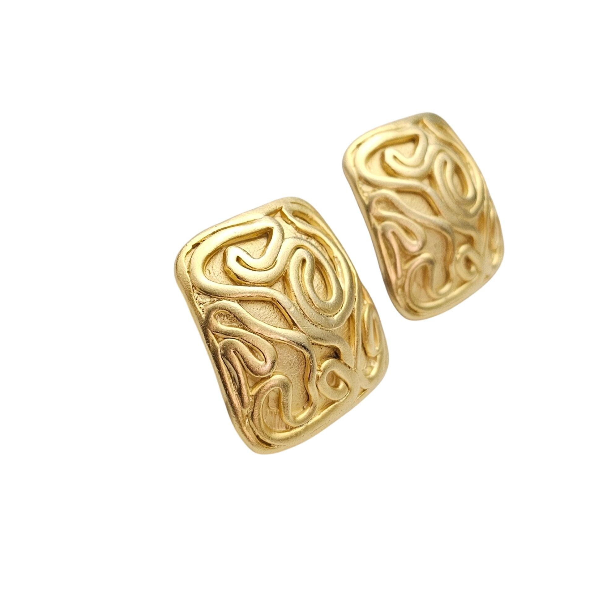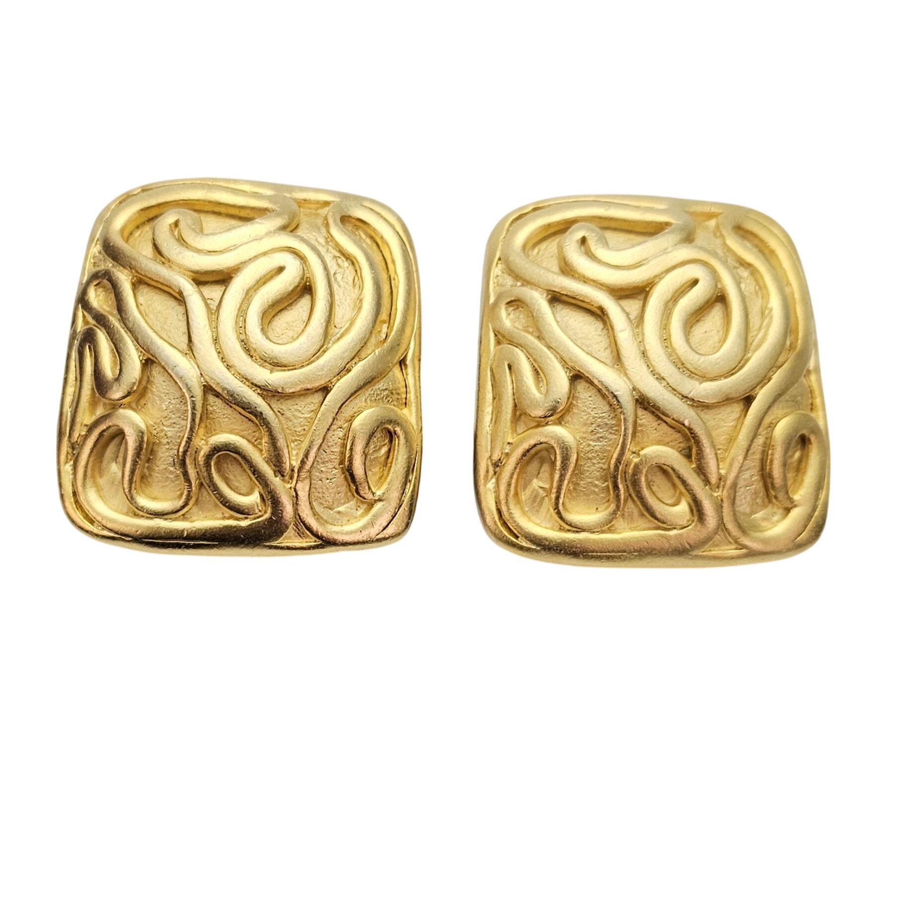 Norma Jean Gold Tone Modernist Swirl Clip On Square Earrings, Signed C717