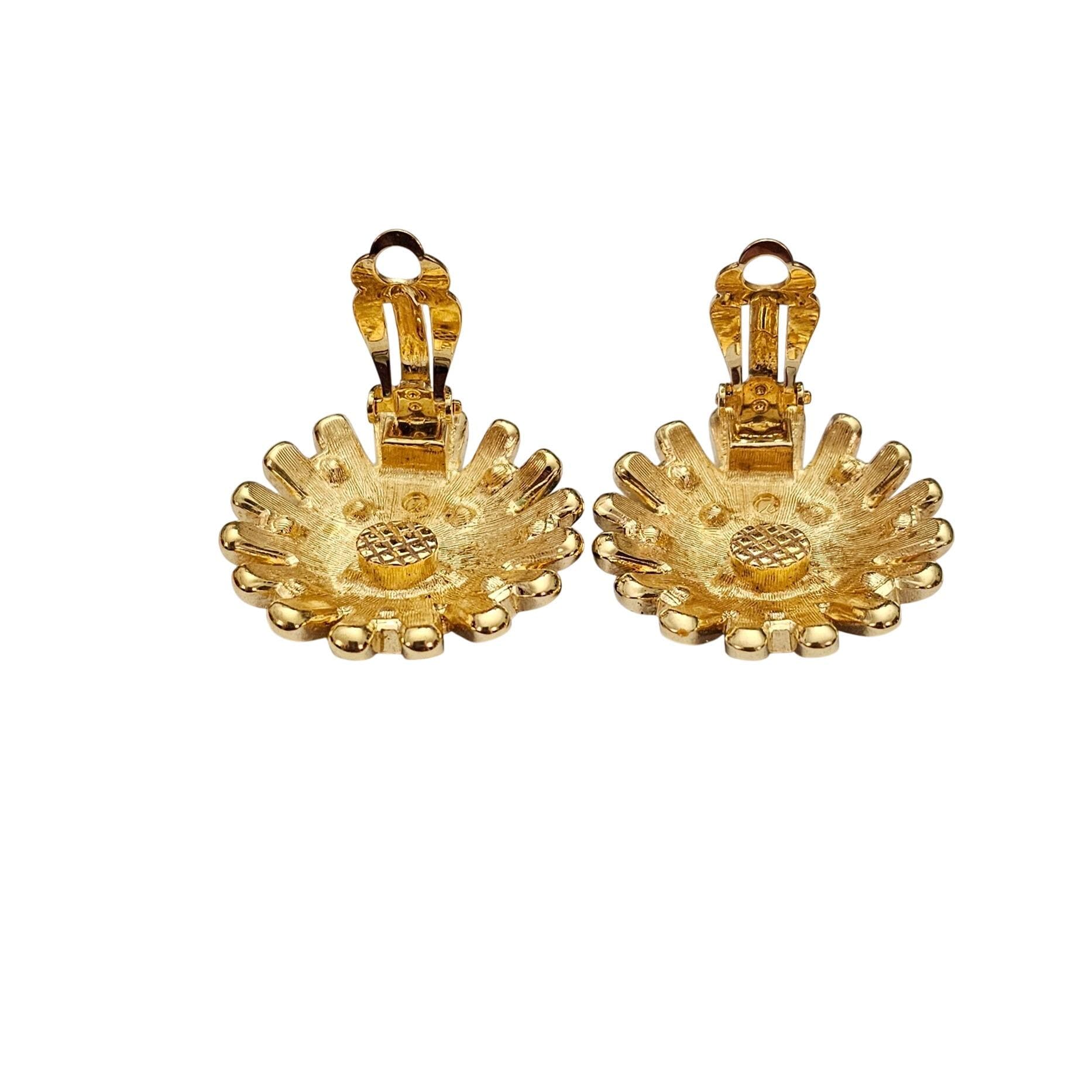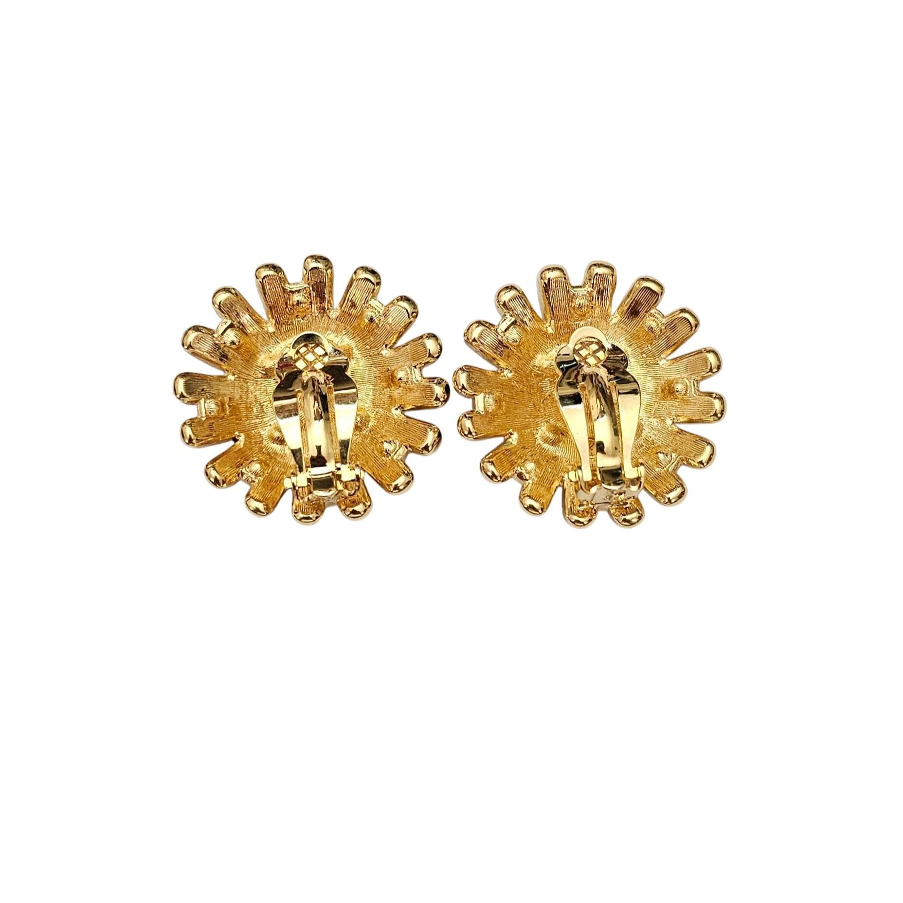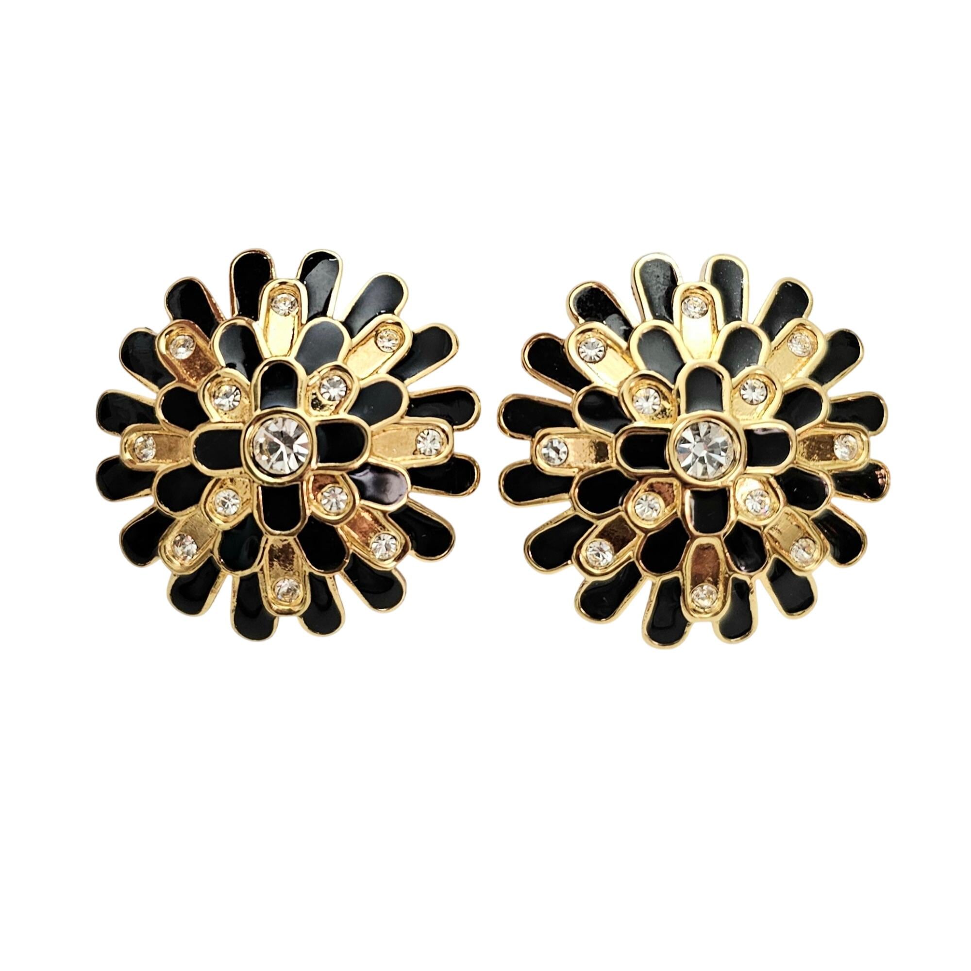 Swarovski Clip On Flower Cross Clear Rhinestone Black Enamel Earrings C718