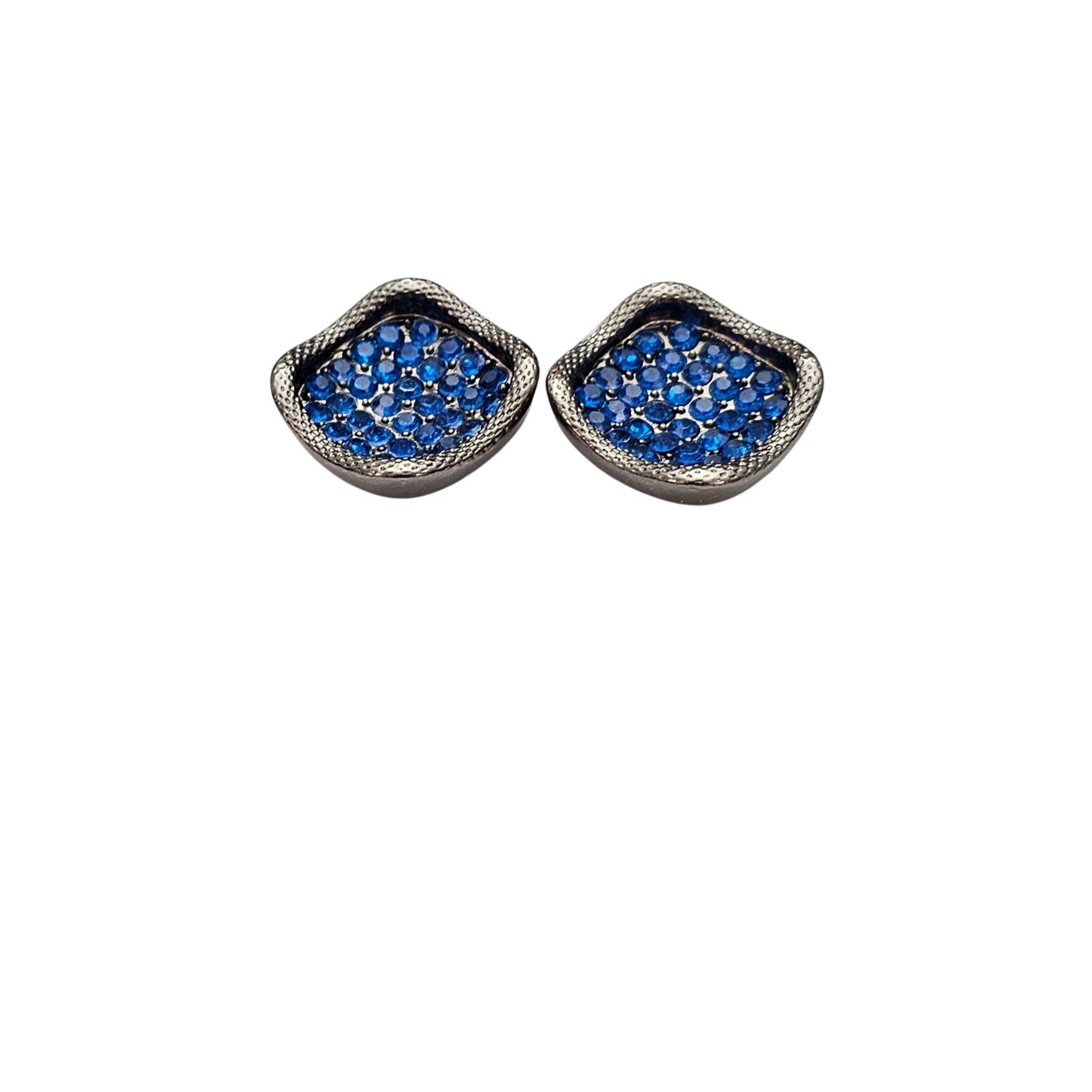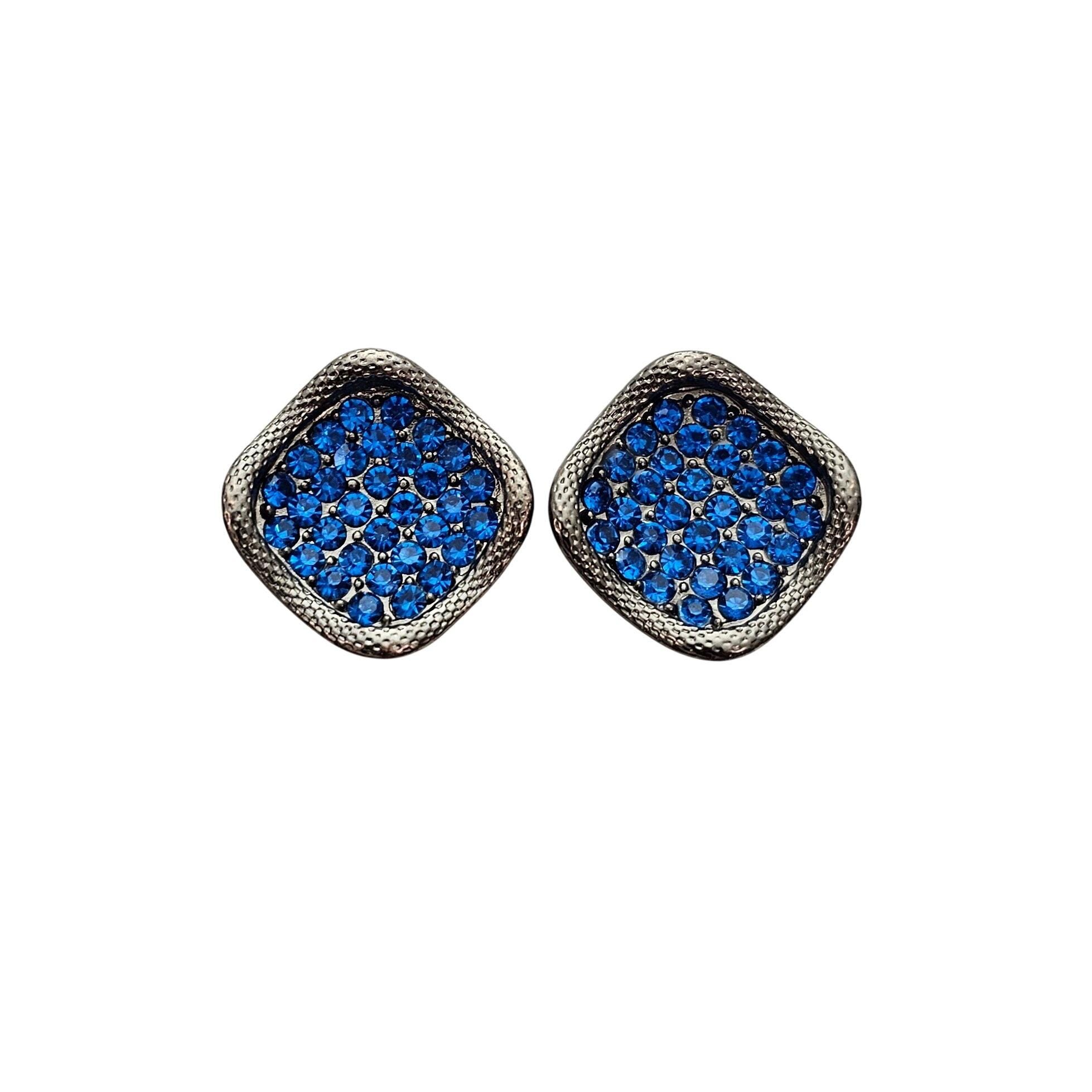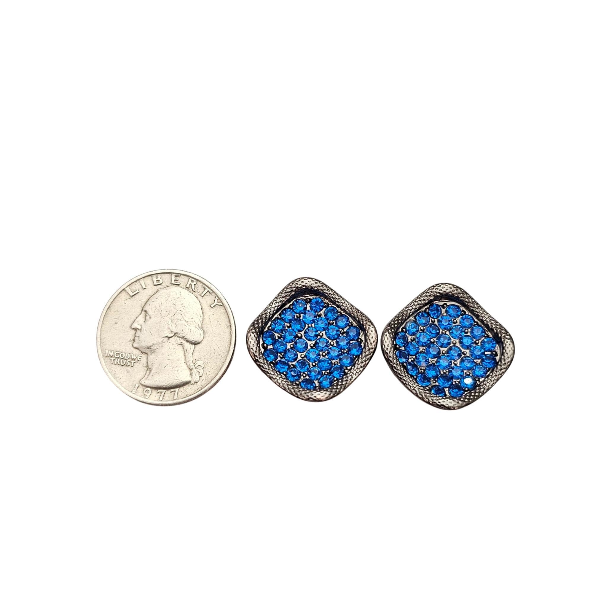 Silver Tone Blue Pave Rhinestone Clip On Curvy Square Earrings C720