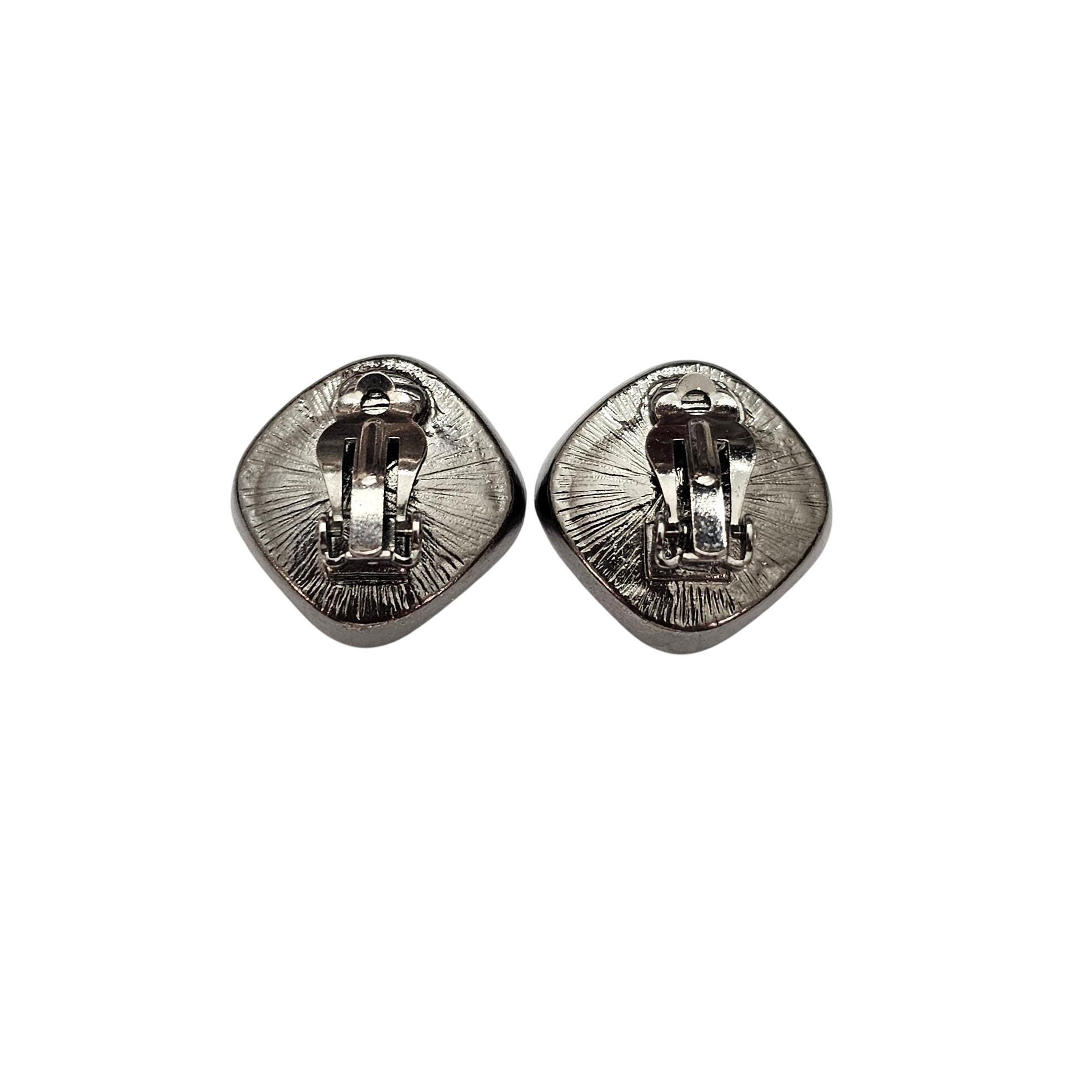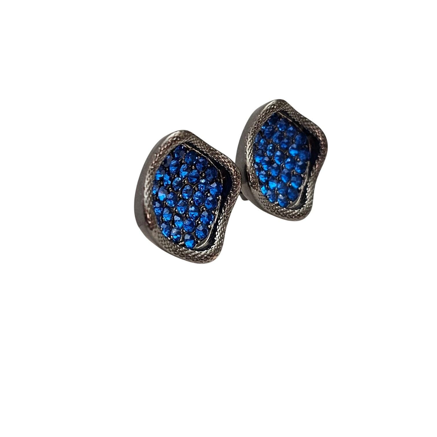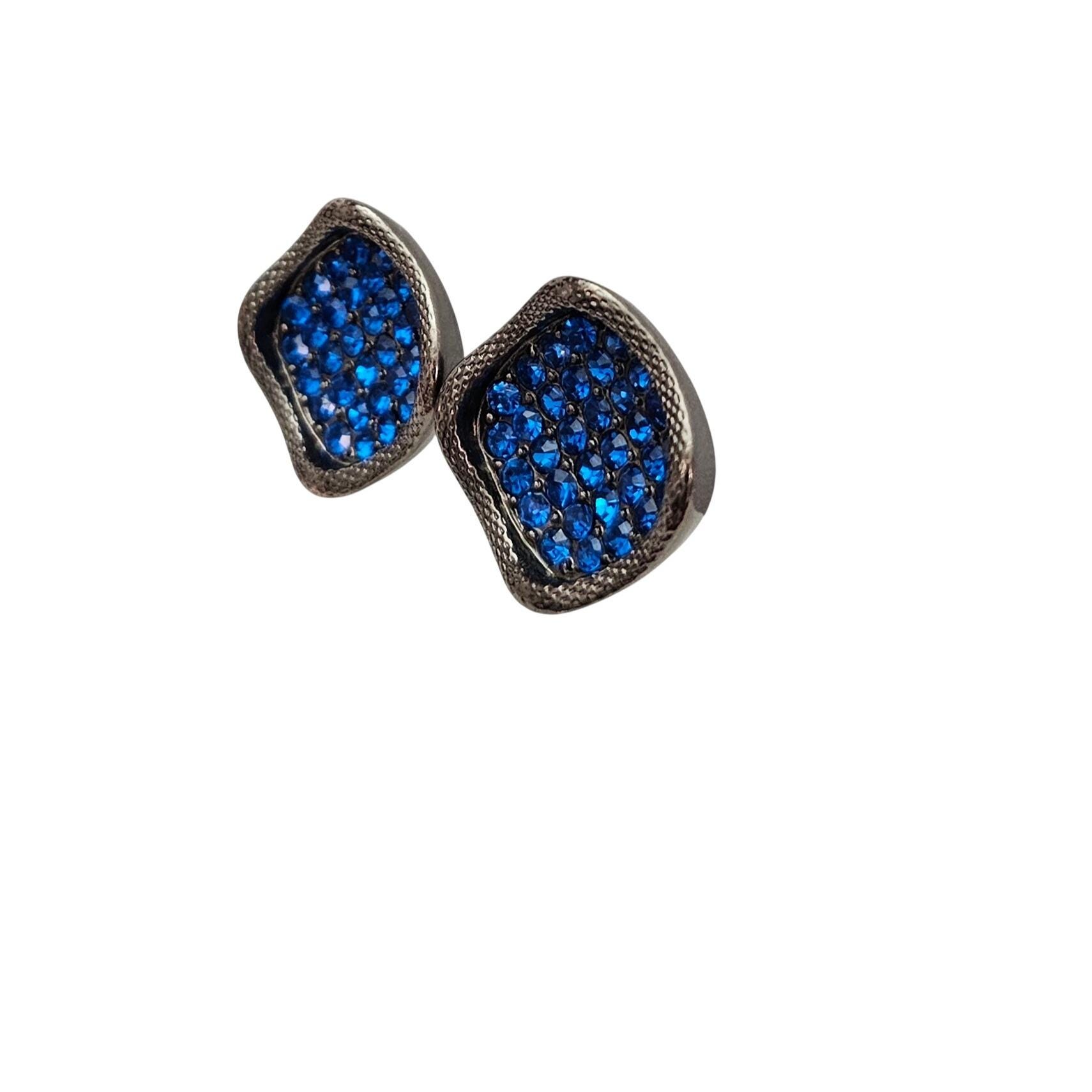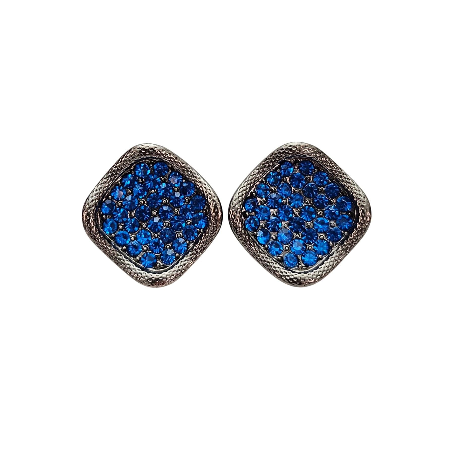 Silver Tone Blue Pave Rhinestone Clip On Curvy Square Earrings C720