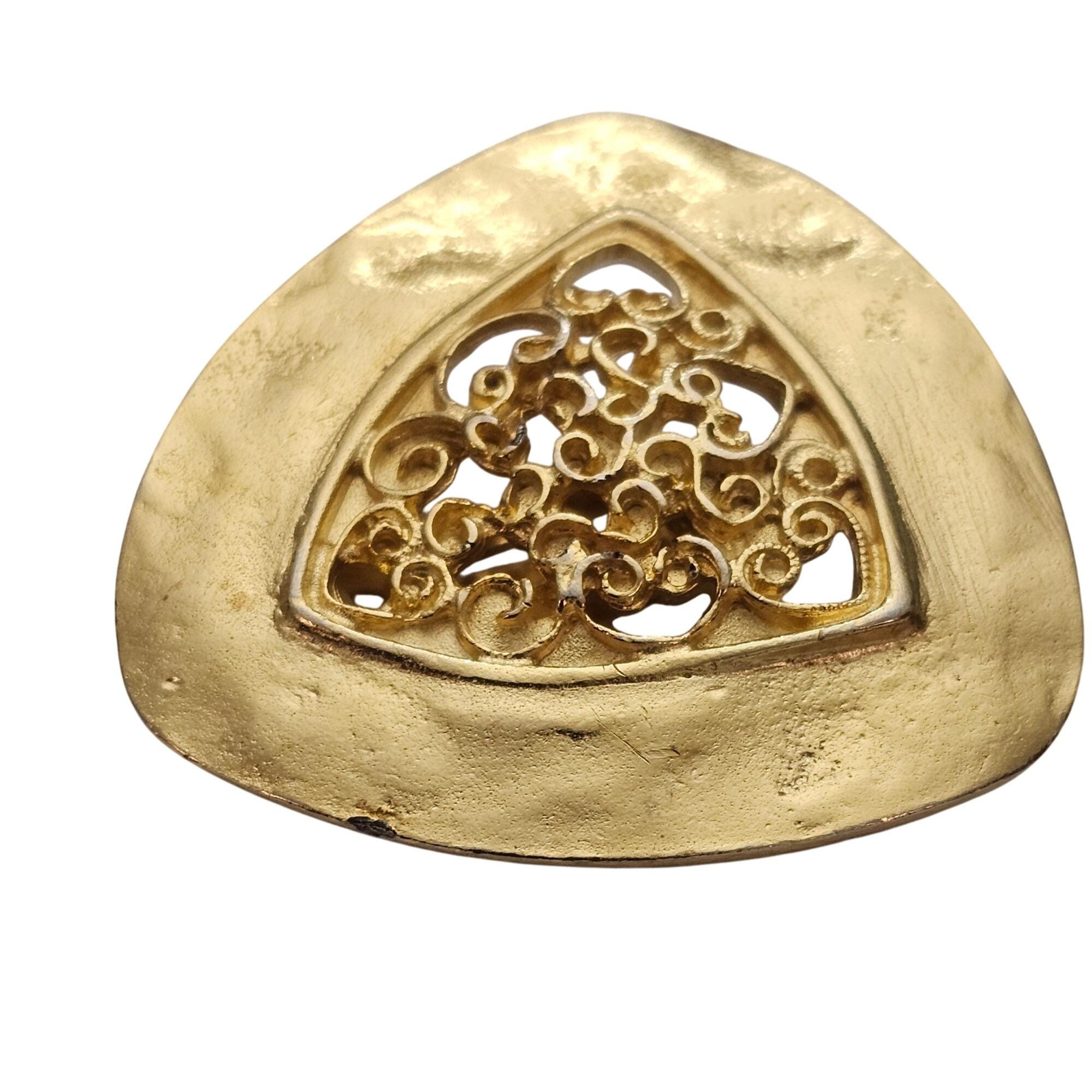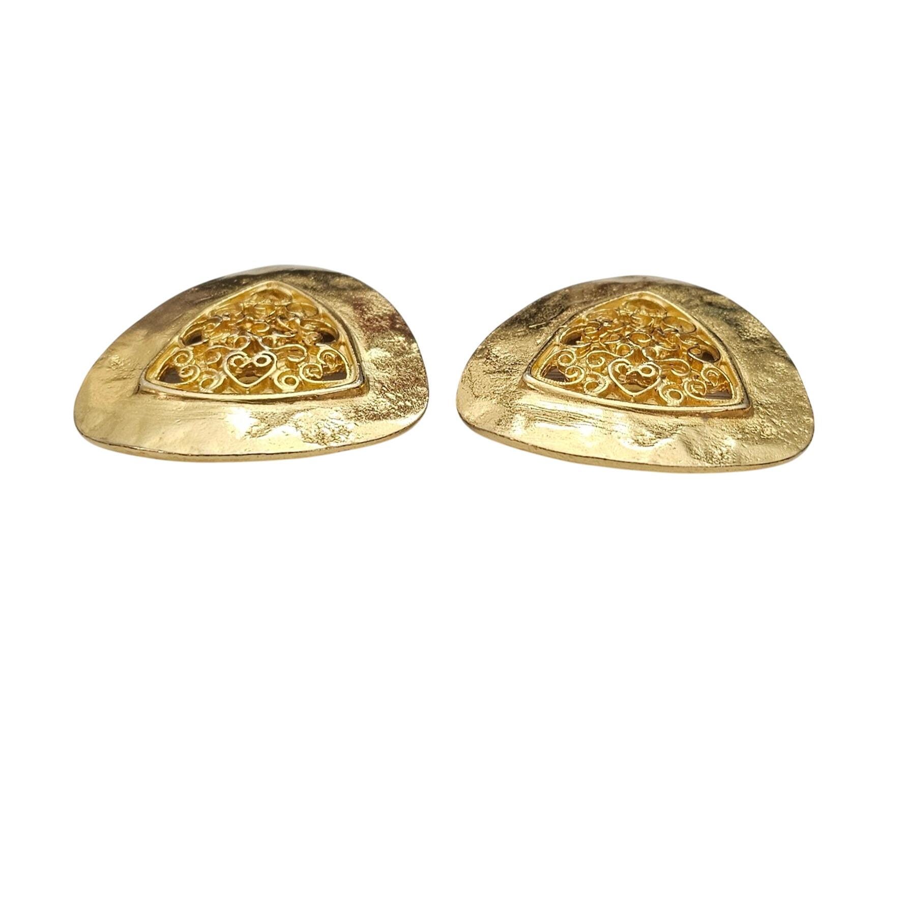 Gold Tone Triangular Clip-On Center Filigree Earrings