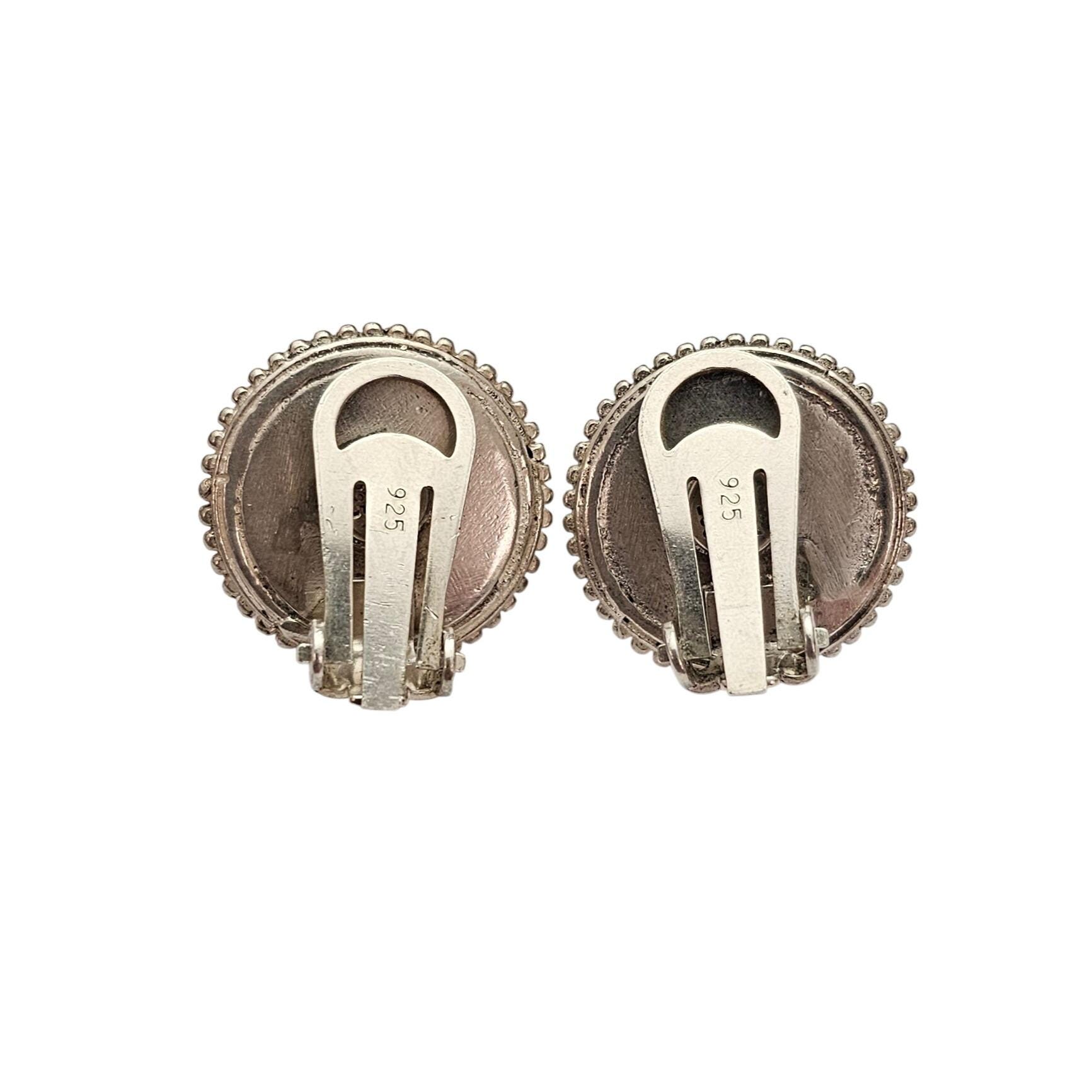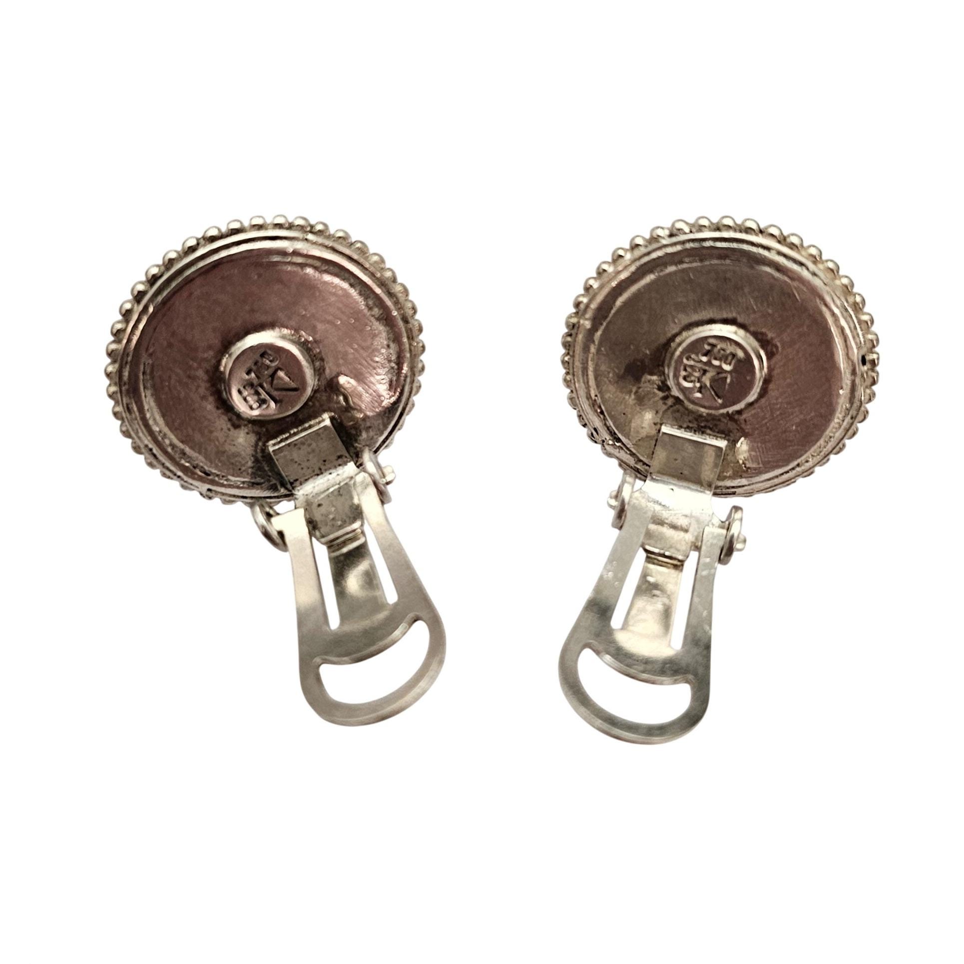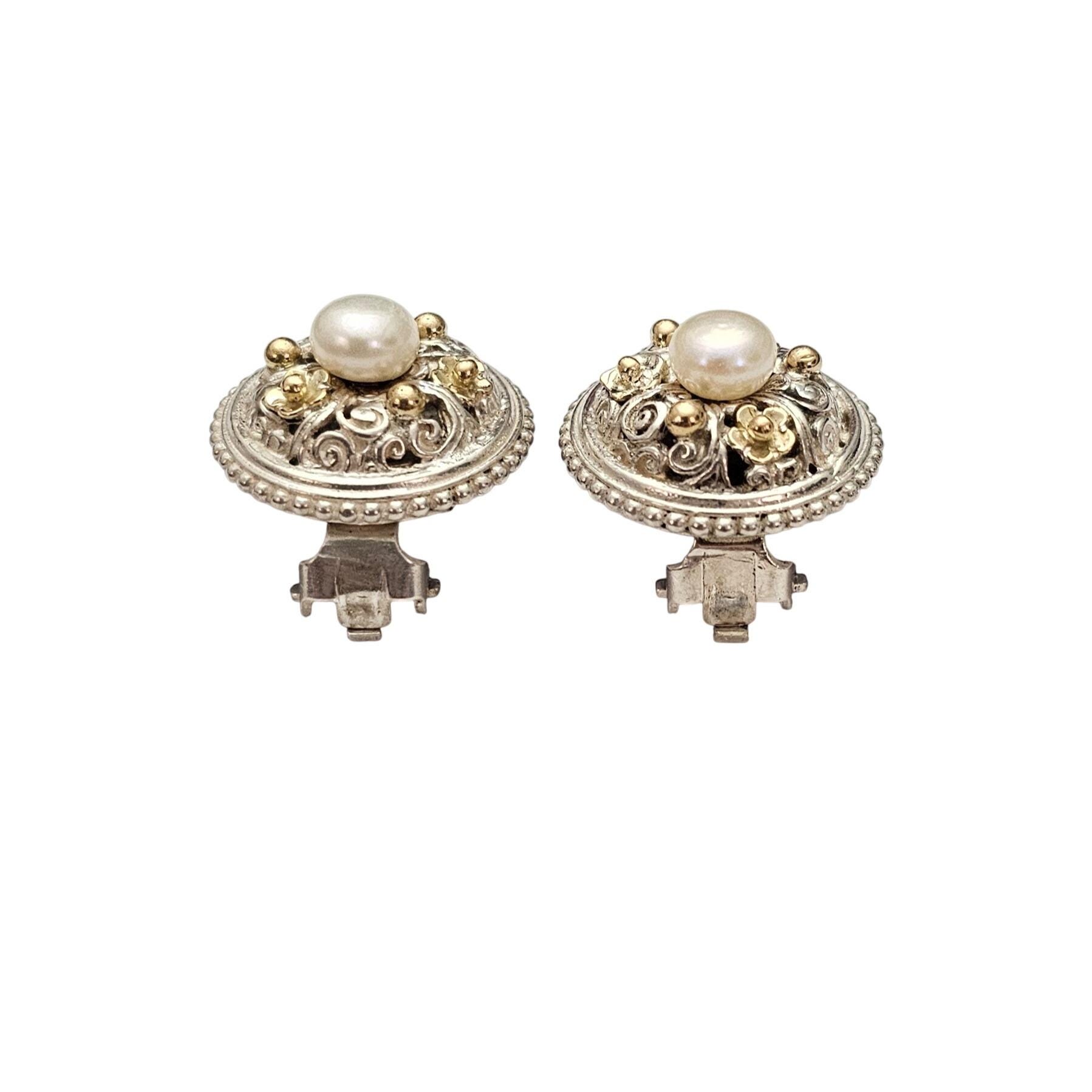 Konstantino 18K Sterling Silver Clip On Flower Round Pearl Earrings, Signed C812