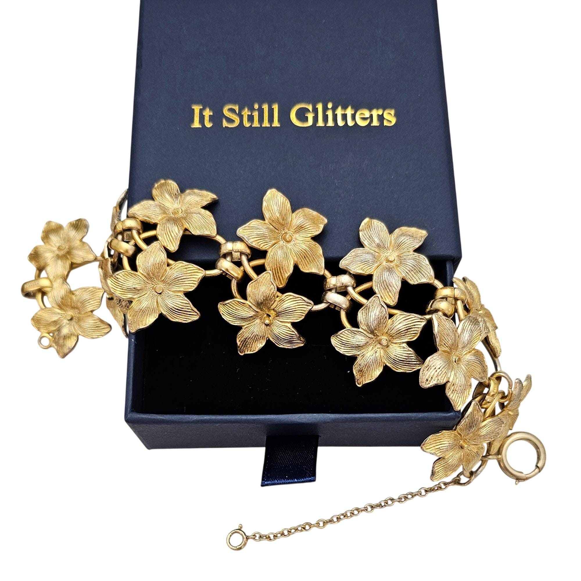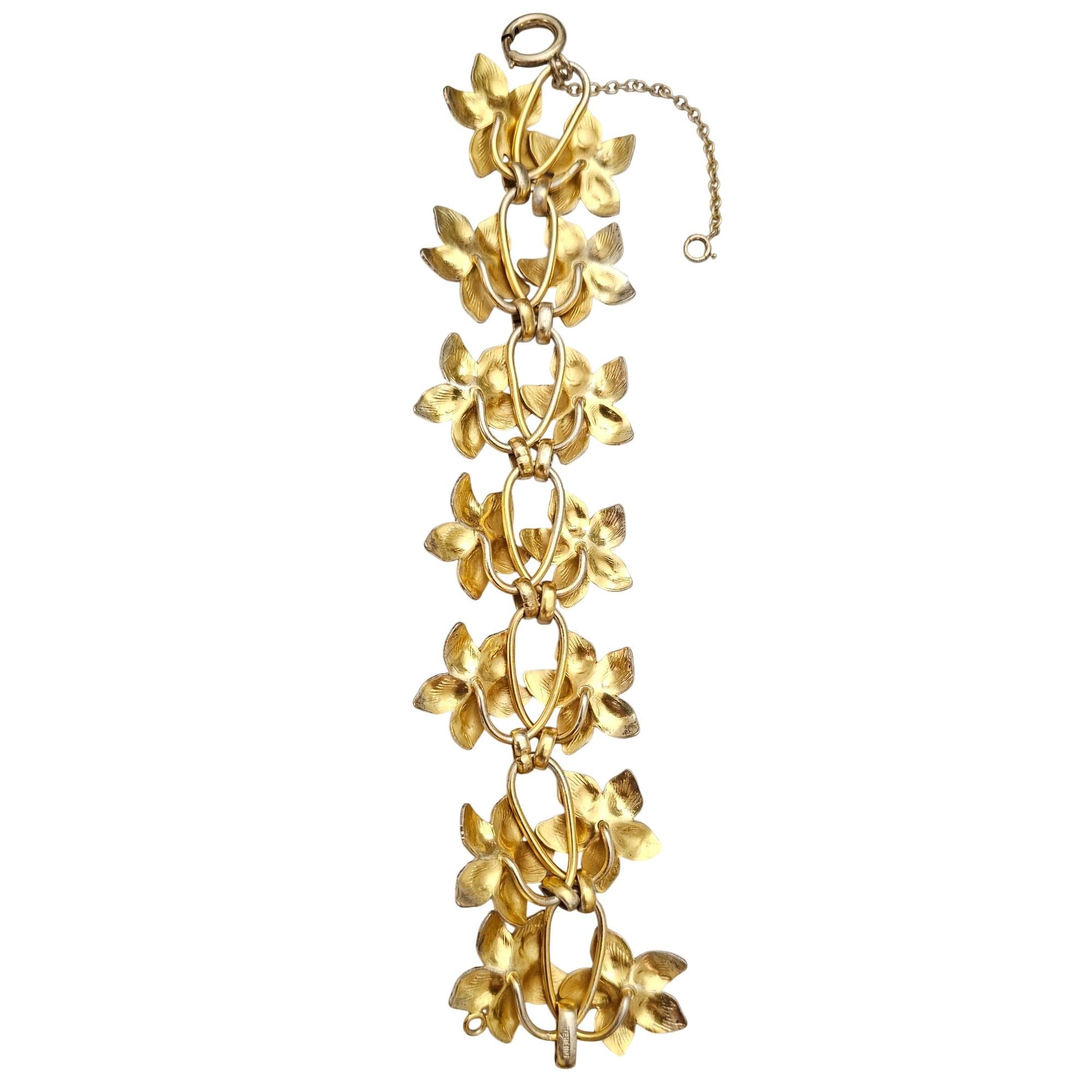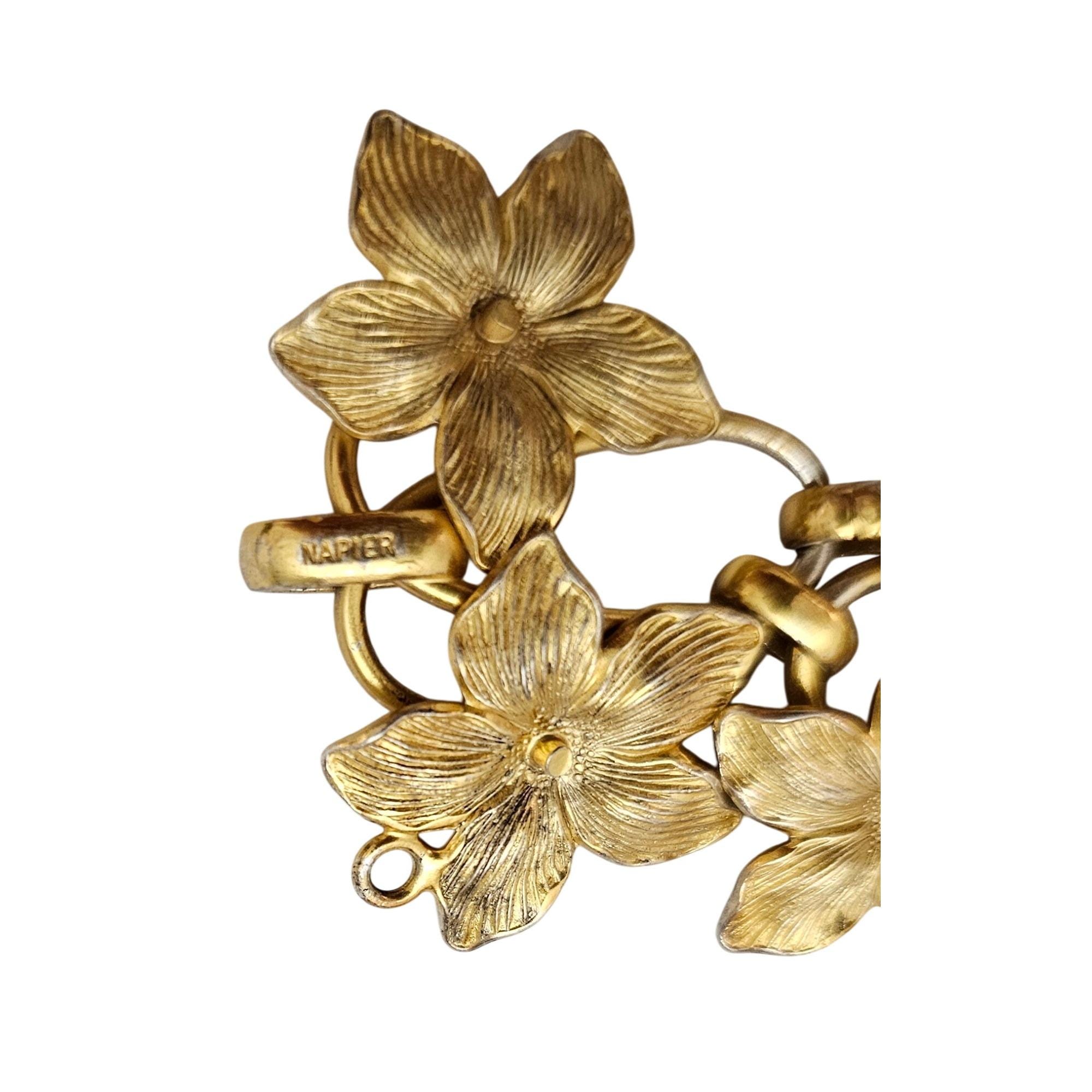 Napier Sterling Silver Vermeil Bracelet 1940’s-50’s Flower Links Safety Chain Signed, C816