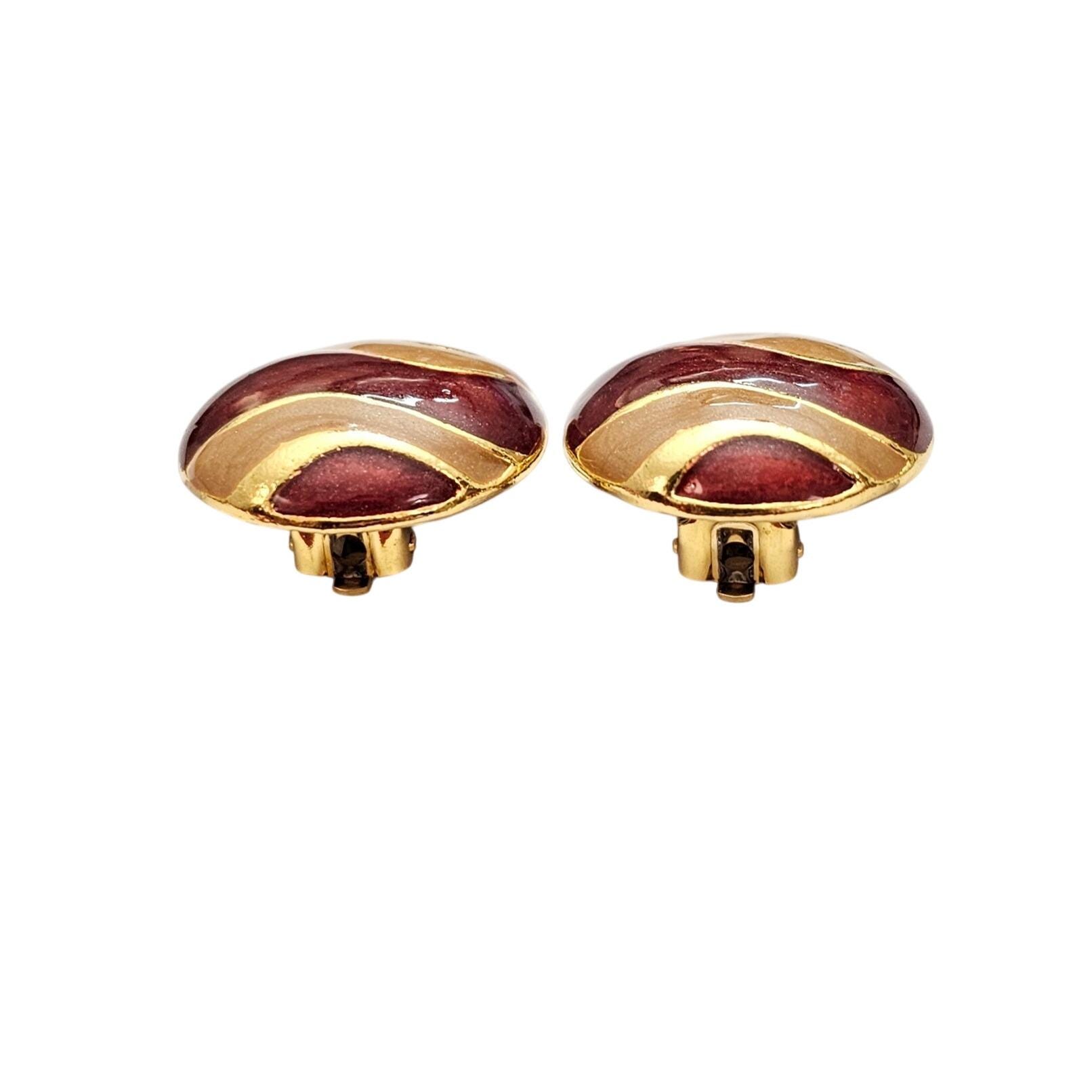 Gold Tone Red Pearly Swirl Clip On Round Earrings C731