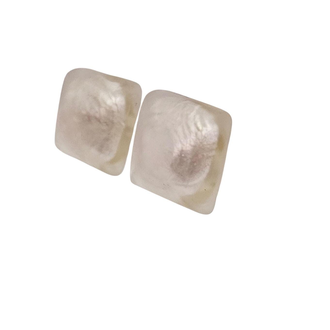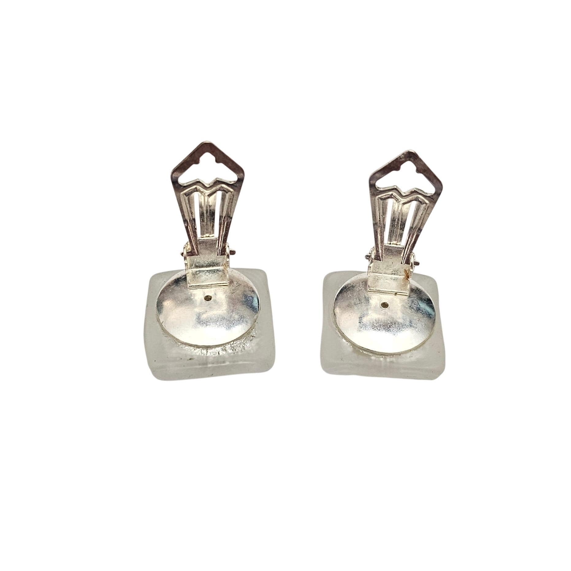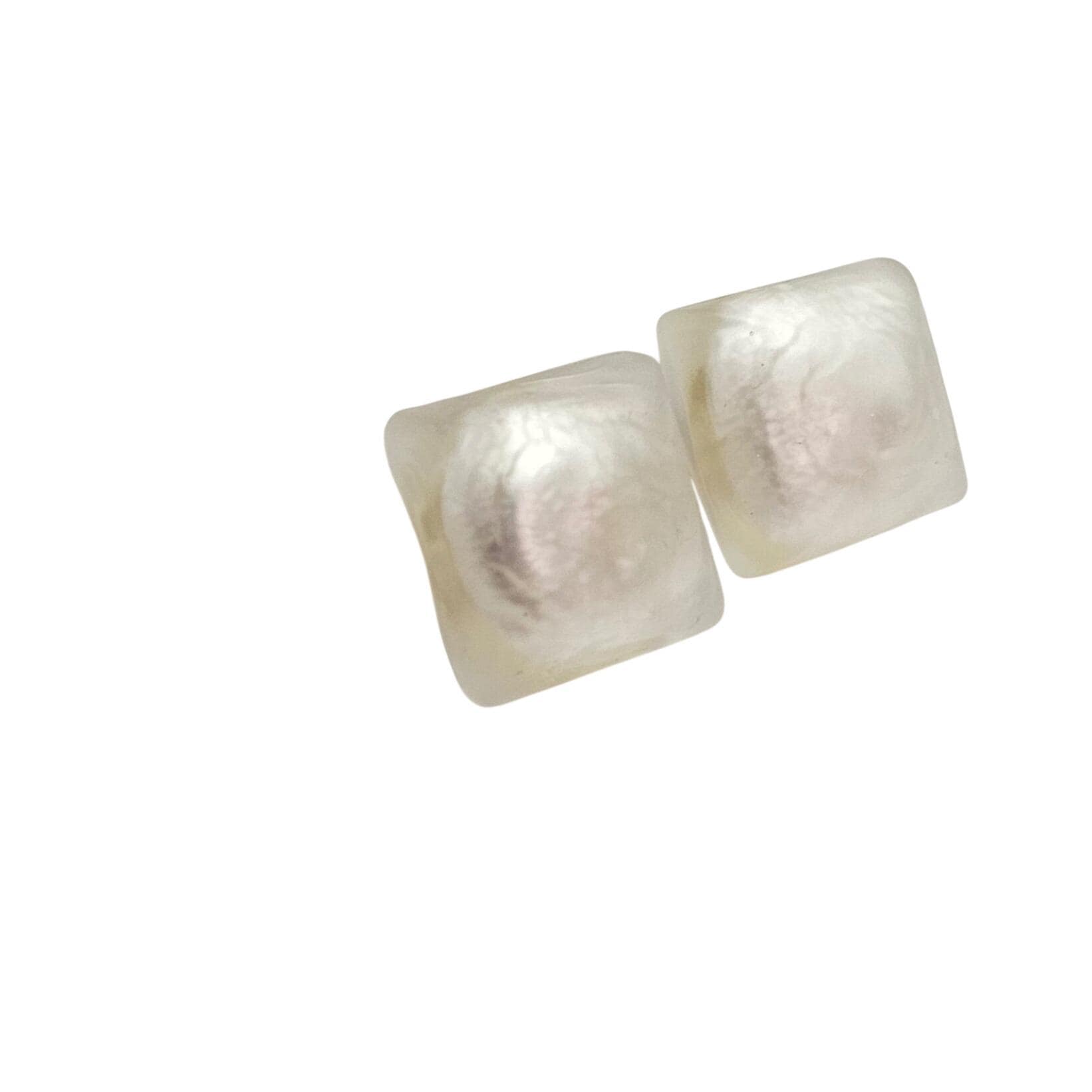 Square Domed Frosted Foil Glass Clip-On Earrings C733