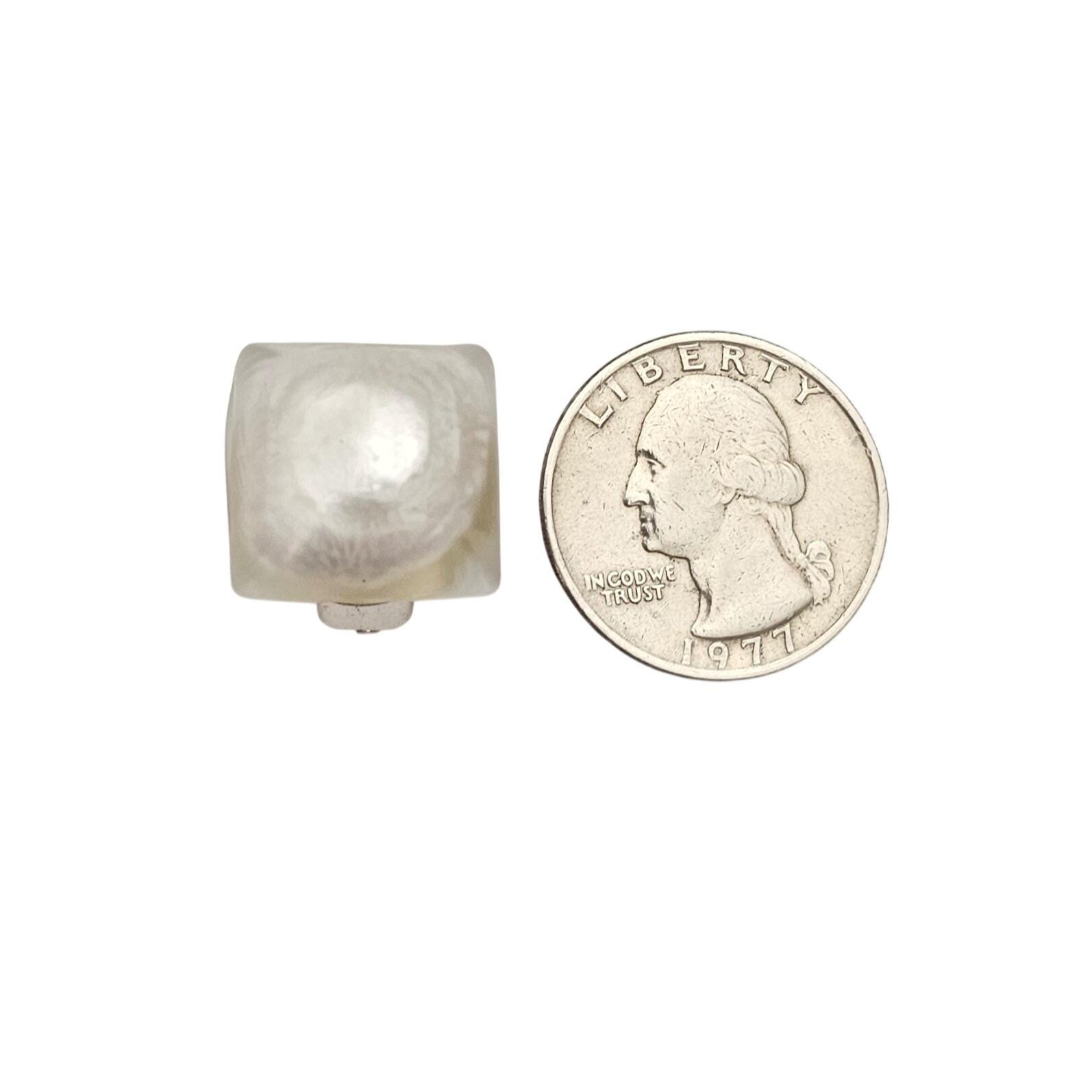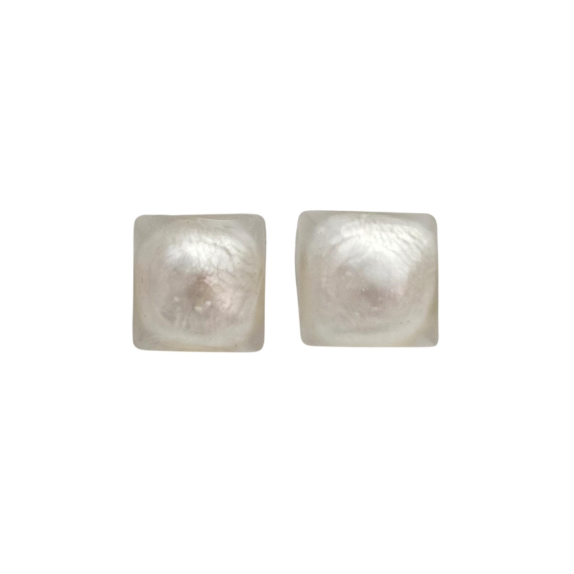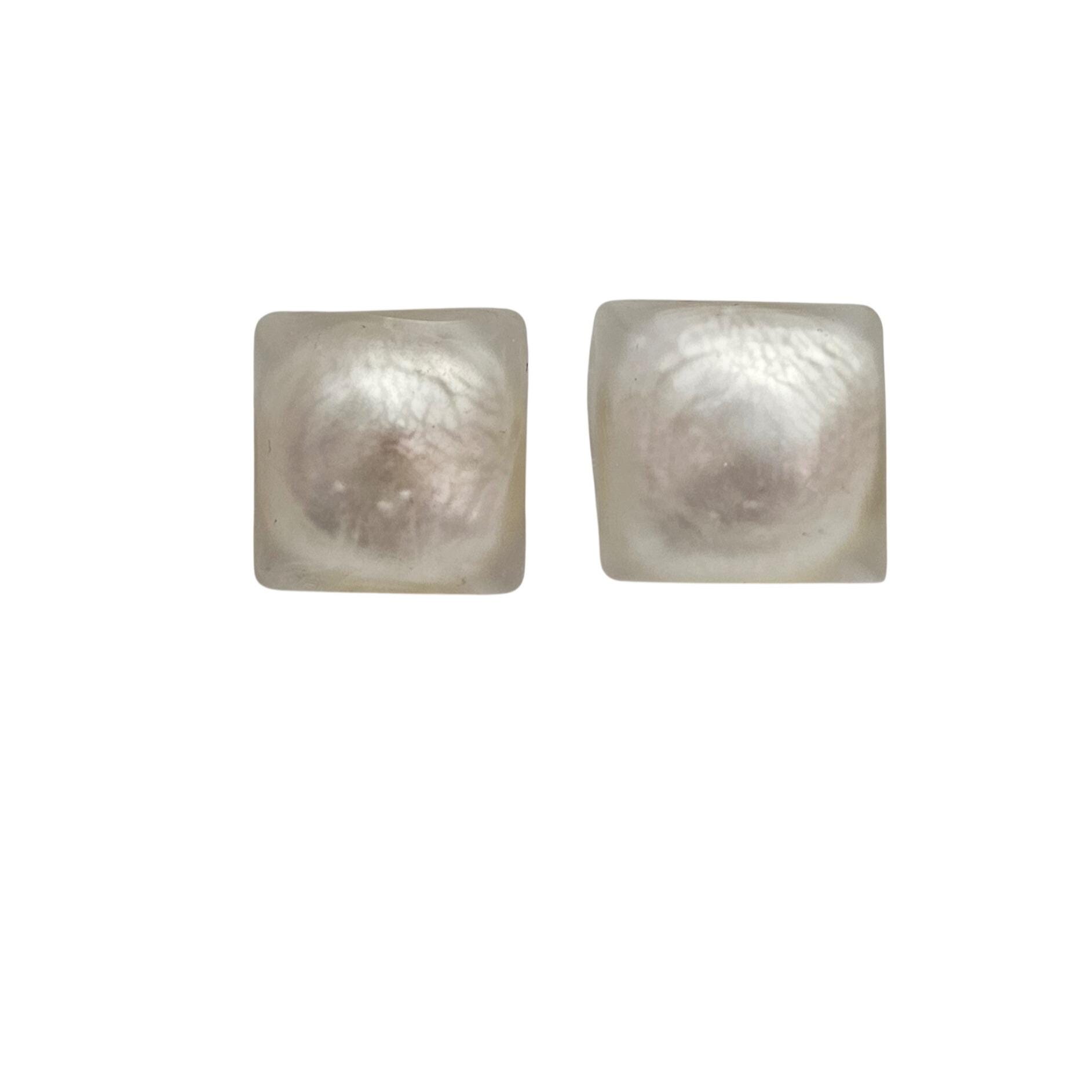 Square Domed Frosted Foil Glass Clip-On Earrings C733