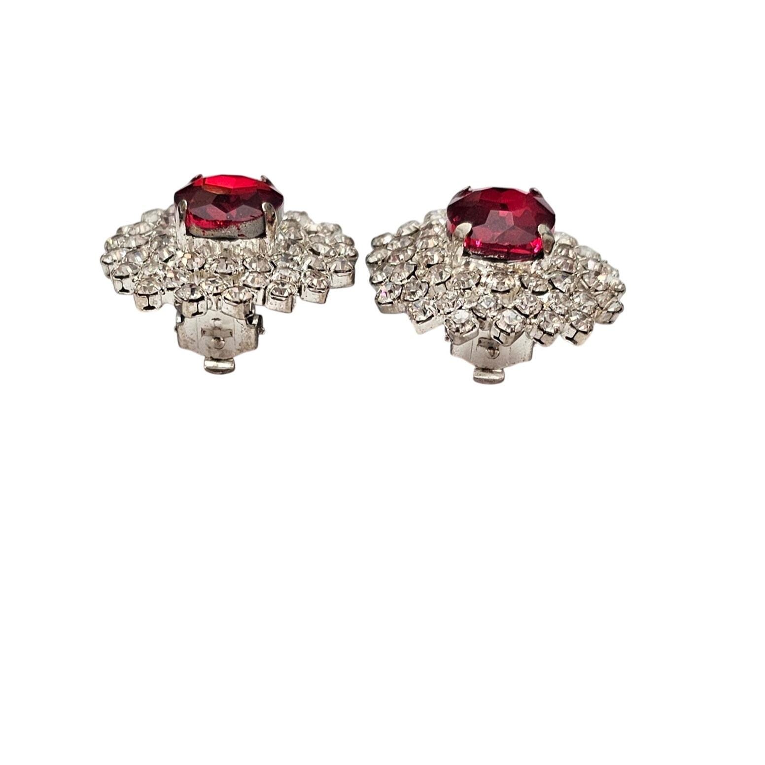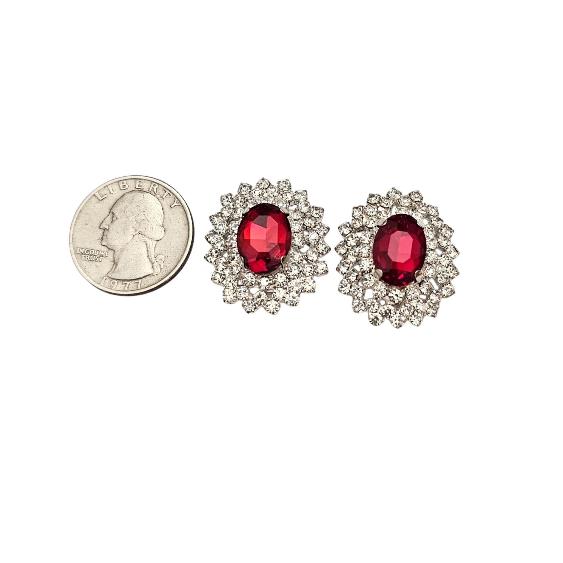 Oval Red Clear Rhinestone Clip-On Earrings C735