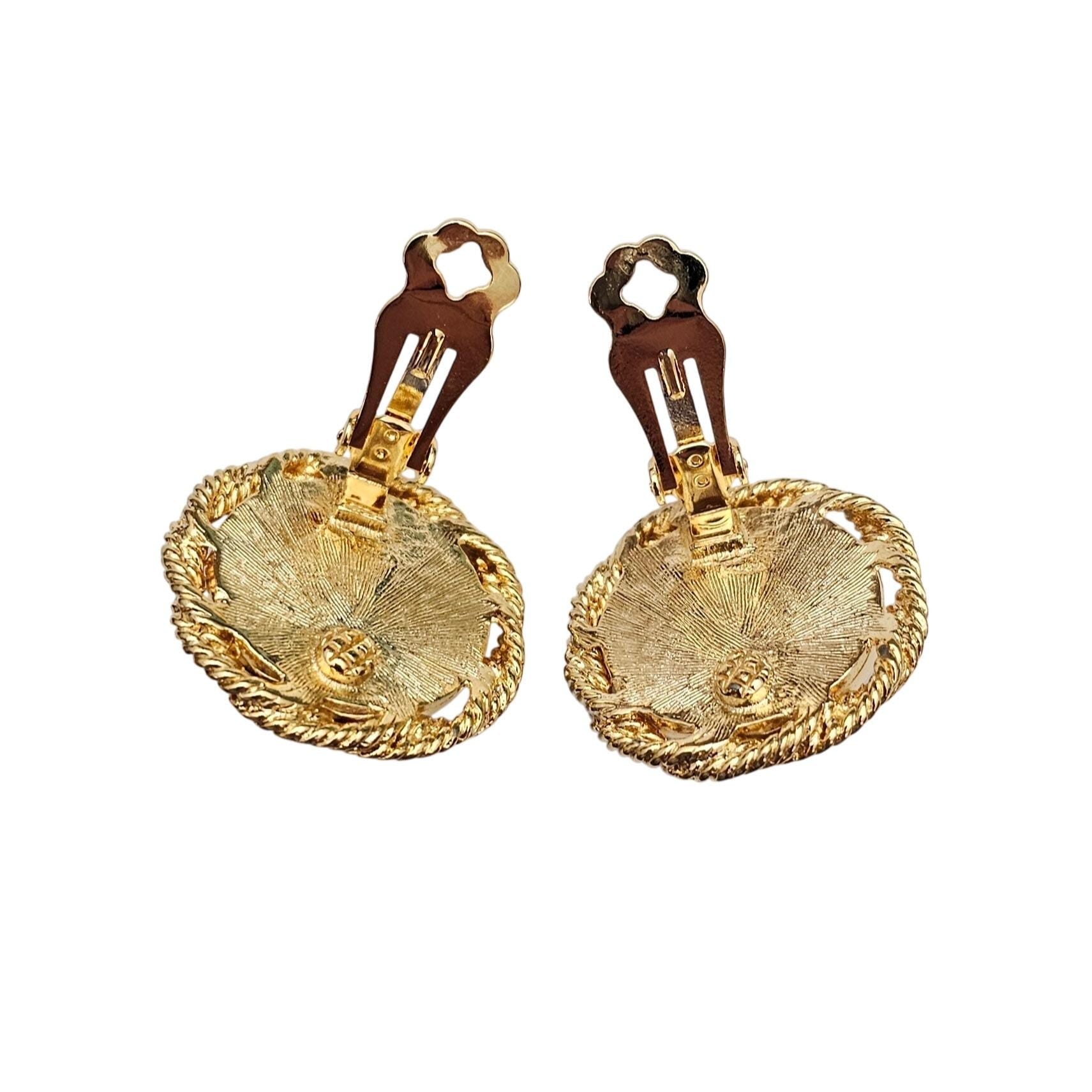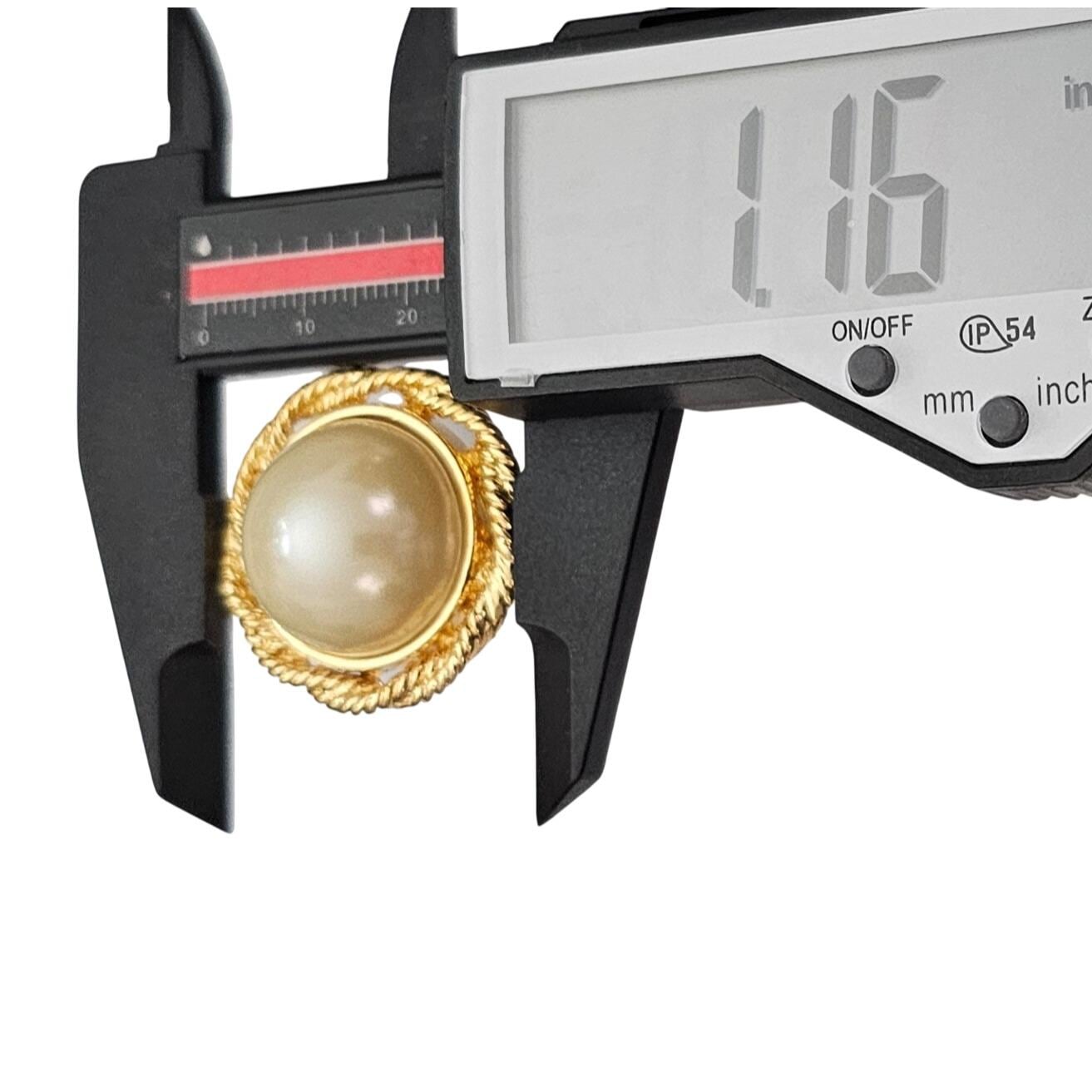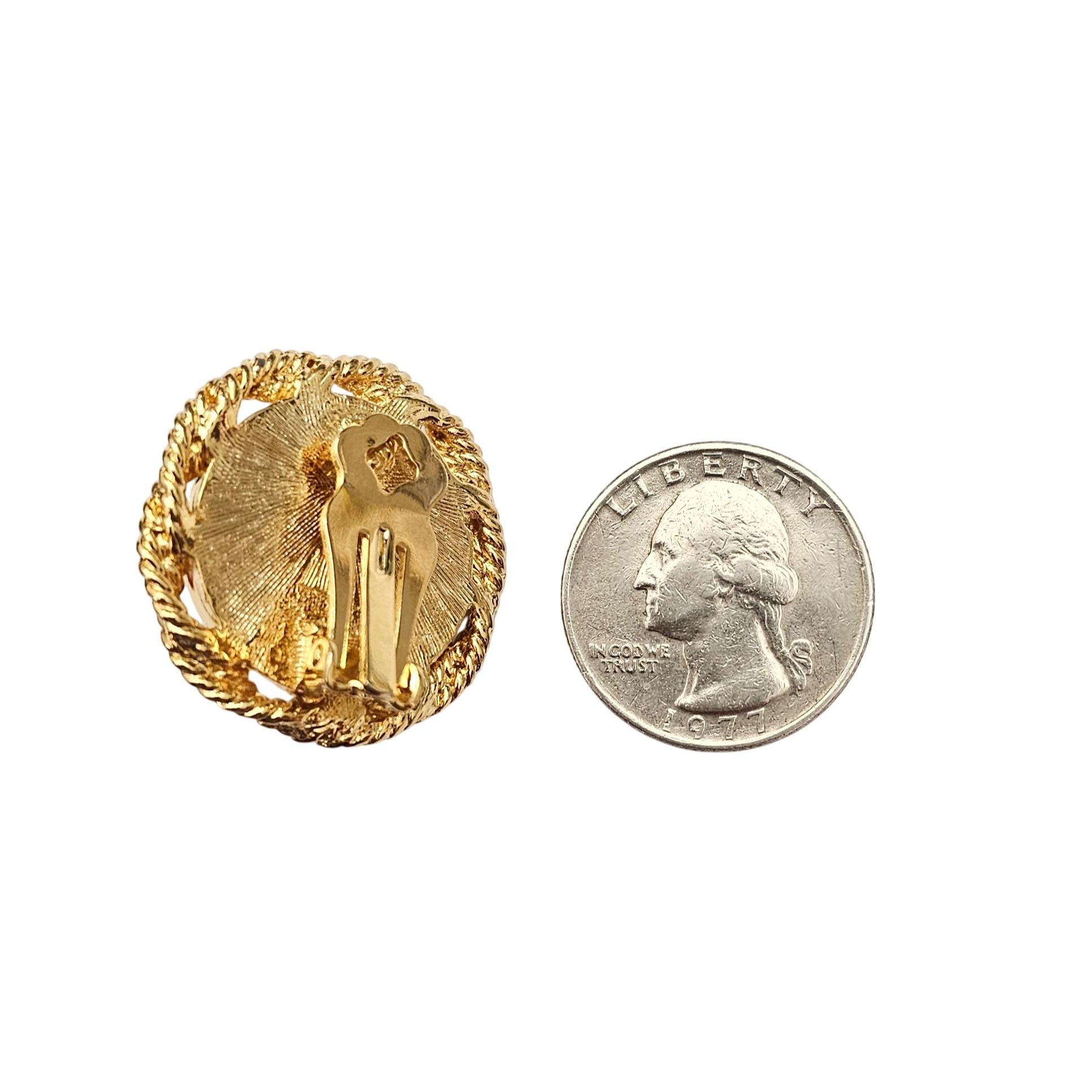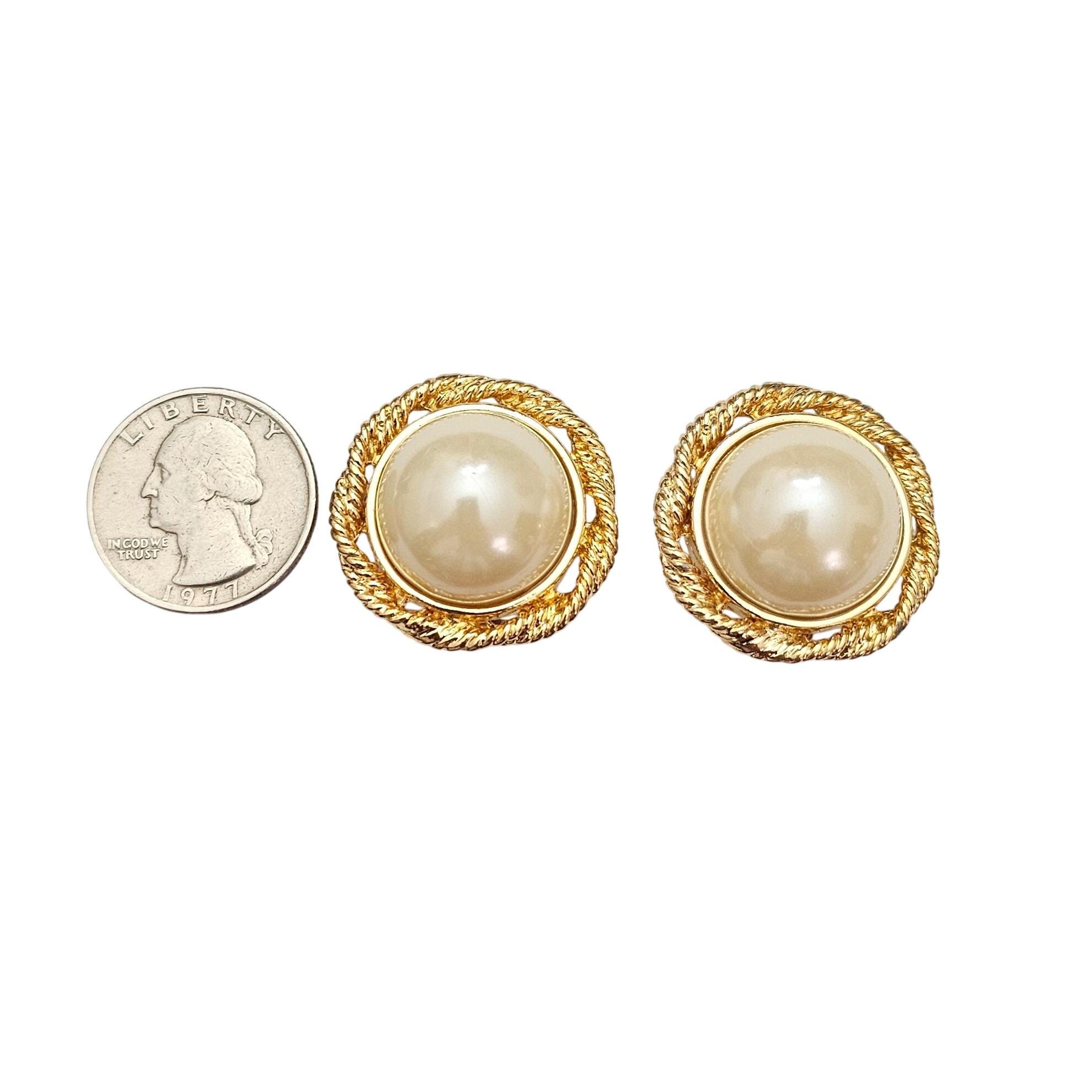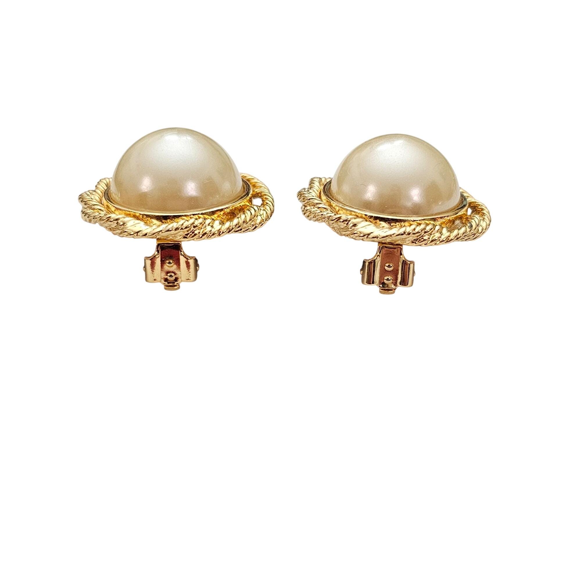Gold Tone Faux Pearl Round Clip On Rope Edge Earrings C739