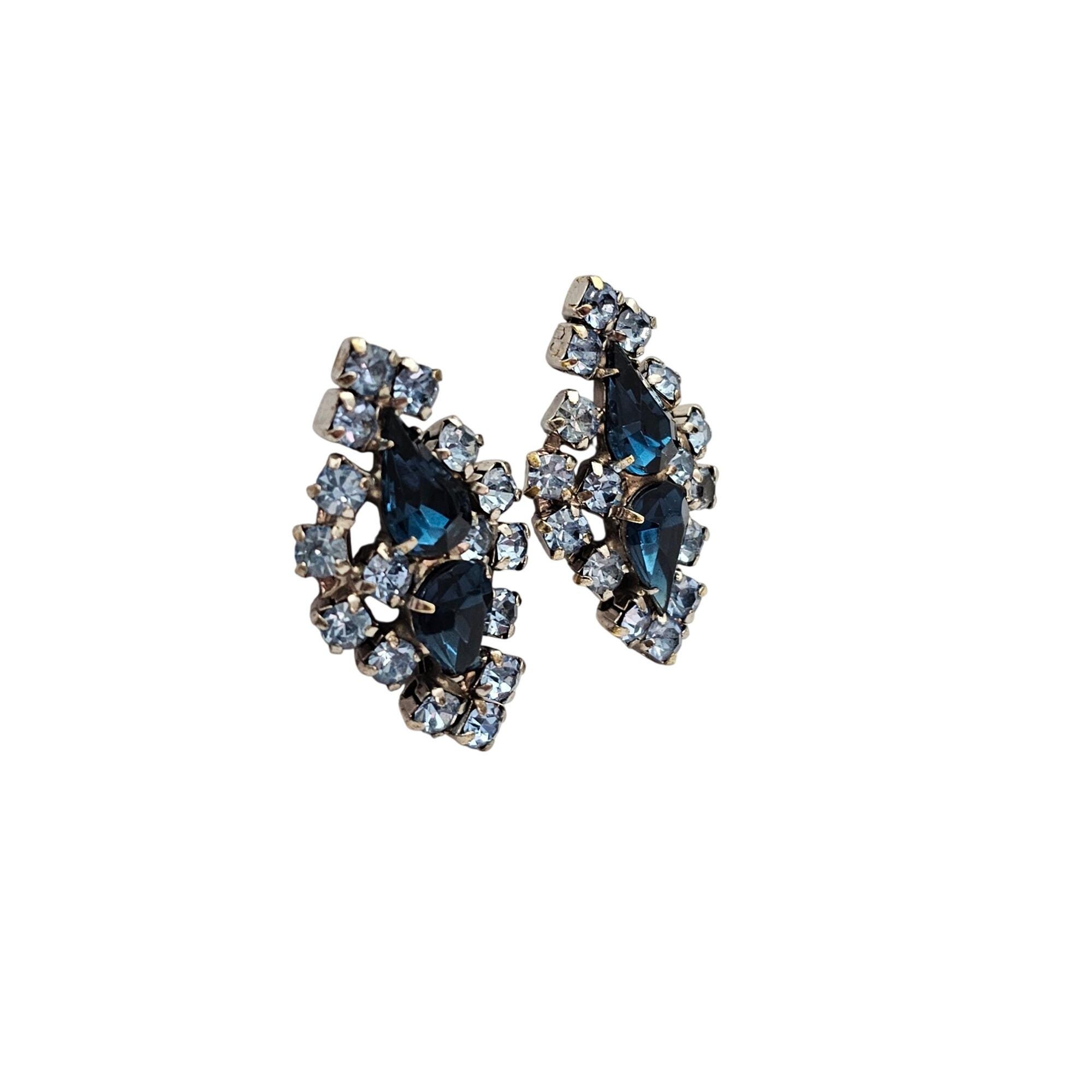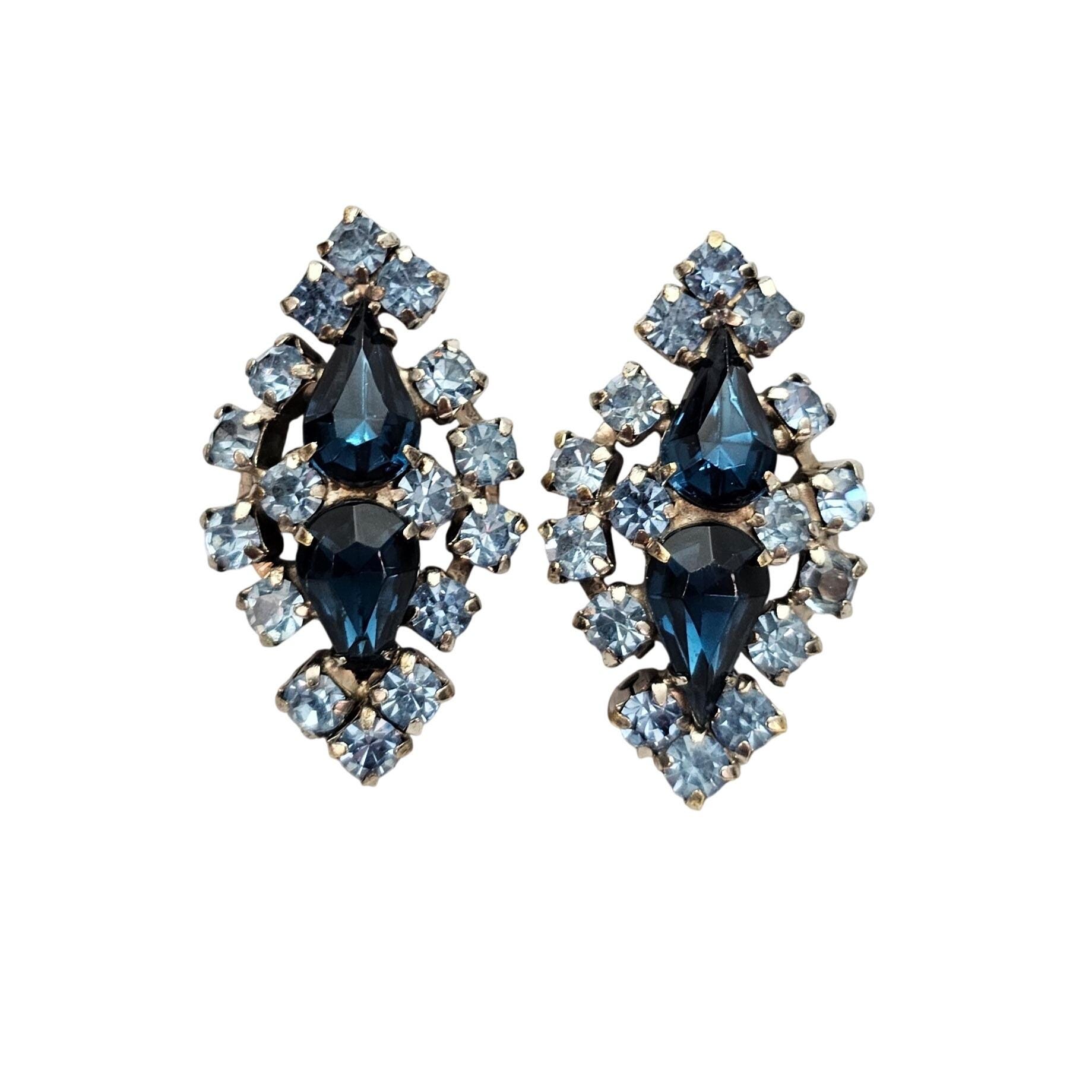 Blue Rhinestone Diamond Shape Clip On Earrings C754