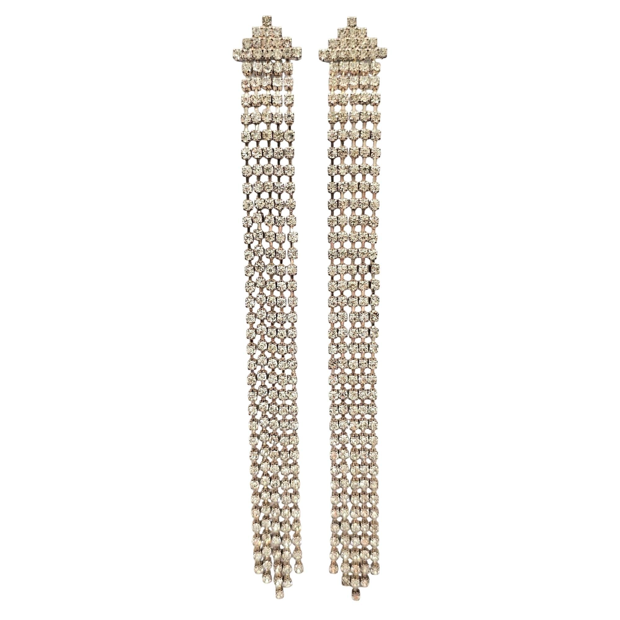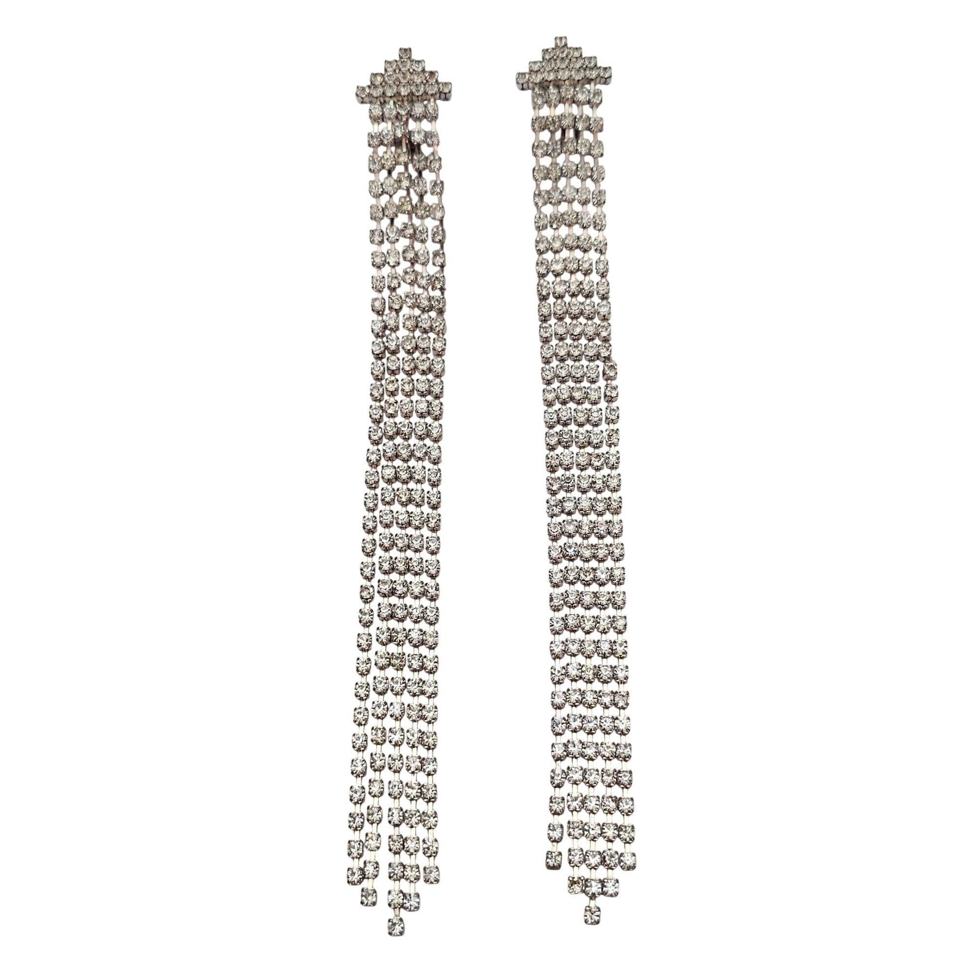 Clear Rhinestone Long Tassel Waterfall Shoulder Duster Clip-On Earrings C755