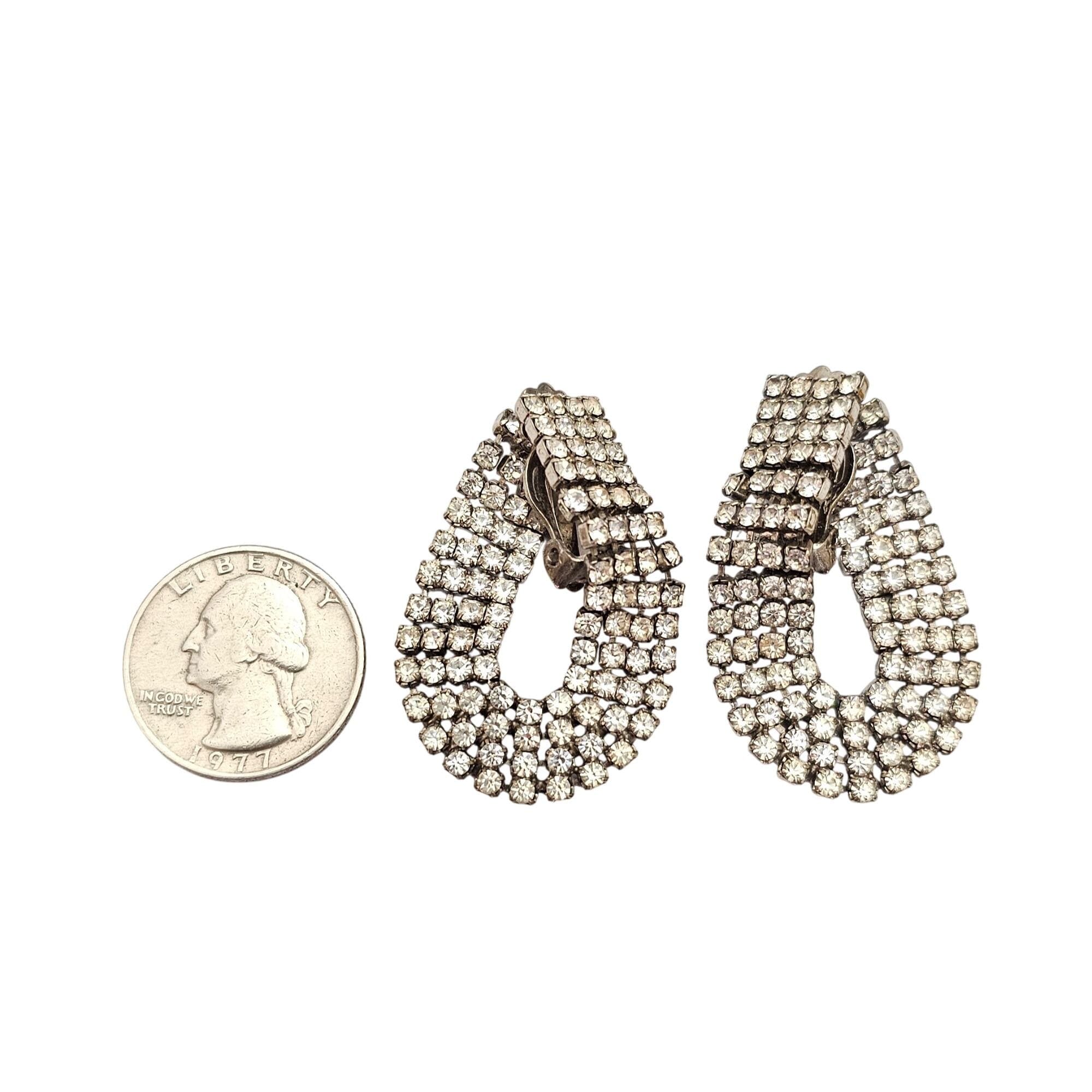 Clear Rhinestone Clip-On Tear Drop Hoop Earrings C756