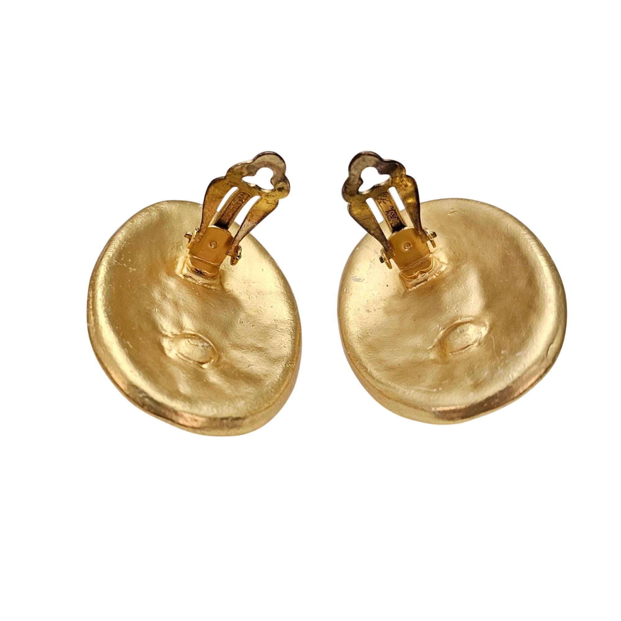 Gold Tone Oval Faux Pearl Clip On Hammered Earrings C757