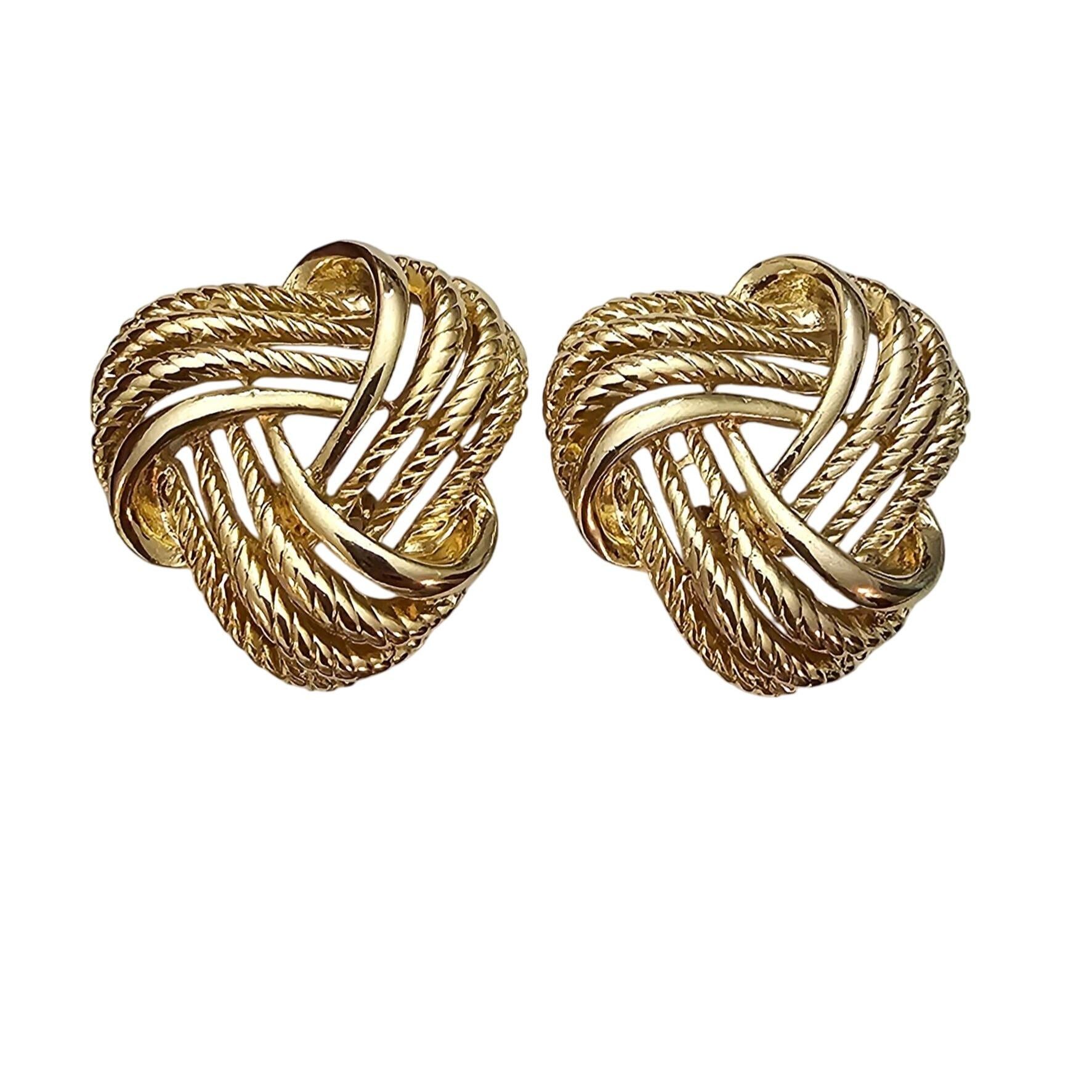 Gold Tone Rope Love Knot Clip On Earrings C804