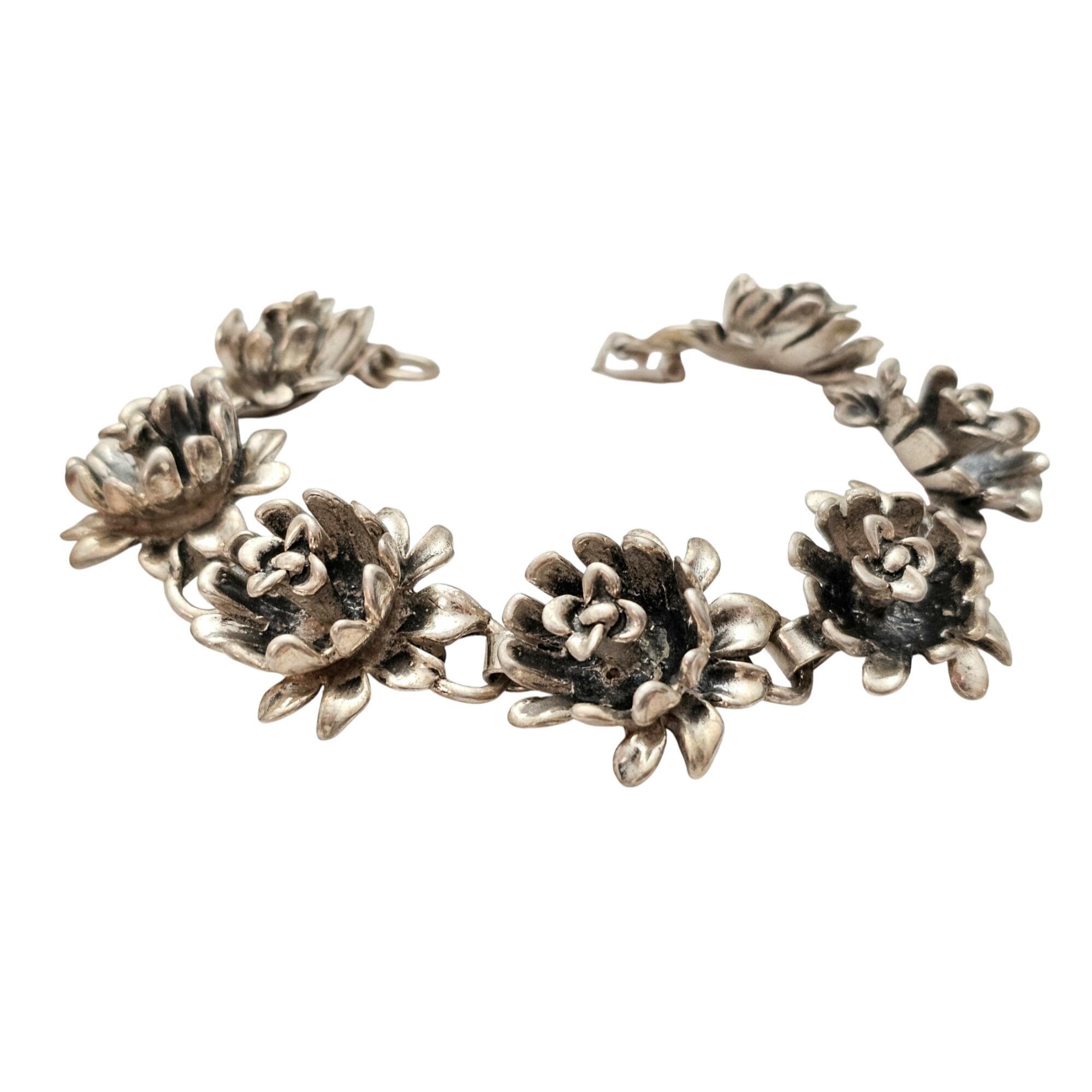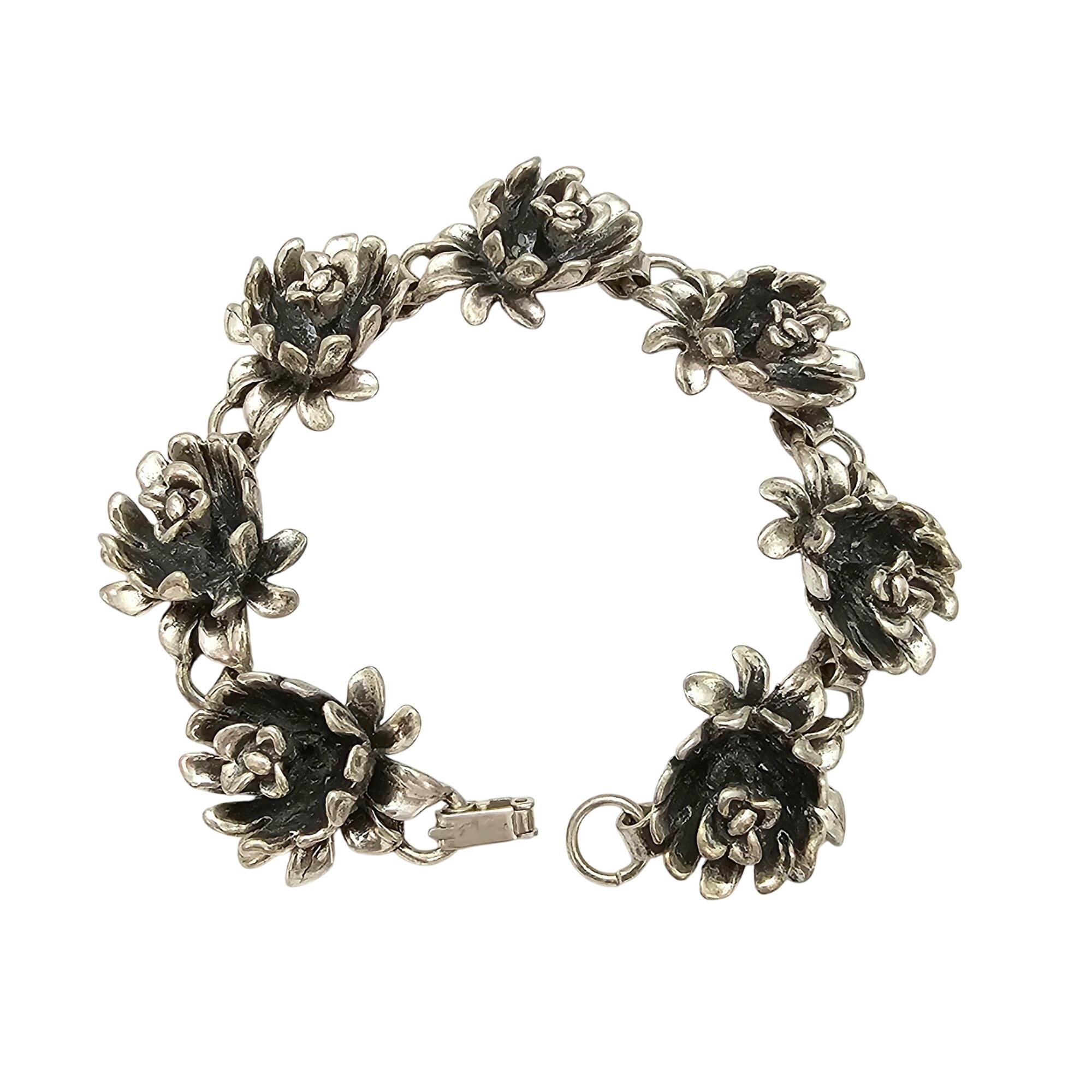 Jewel Art Sterling Silver Flower Link Bracelet Signed, C807