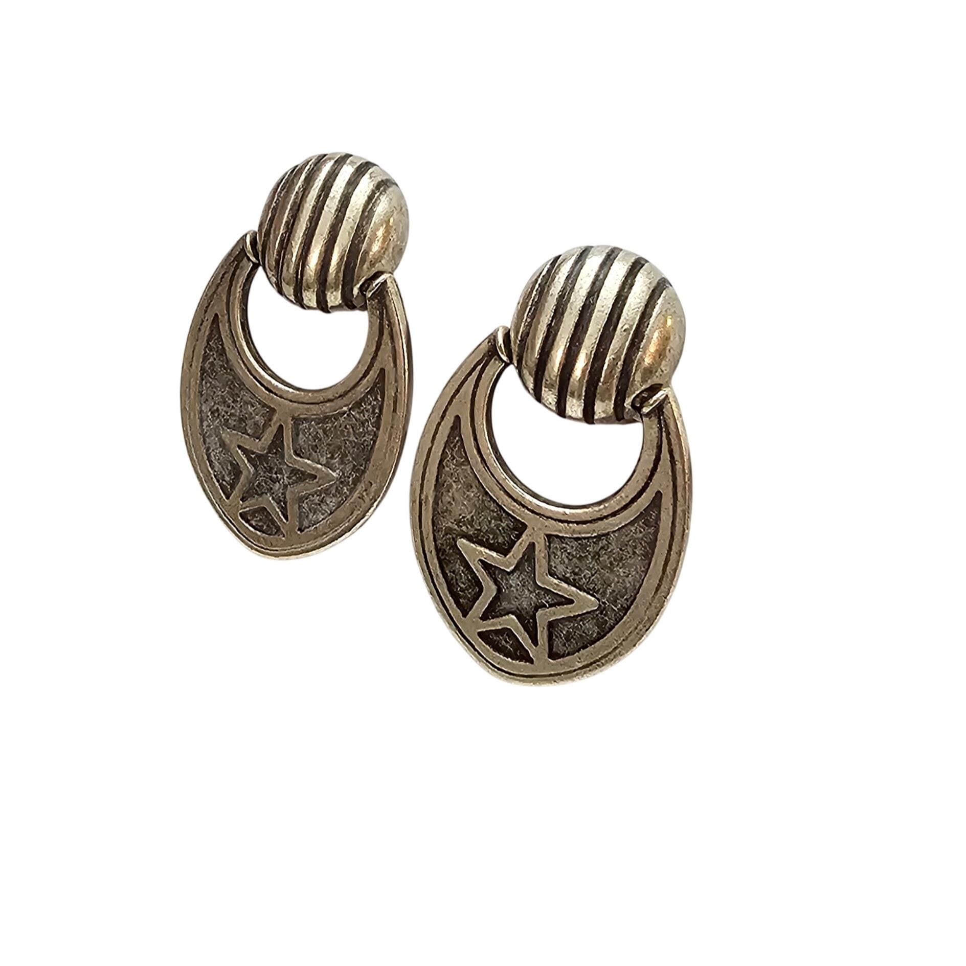 Silver Tone Knocker Clip On Star Earrings, Pewter Style C792