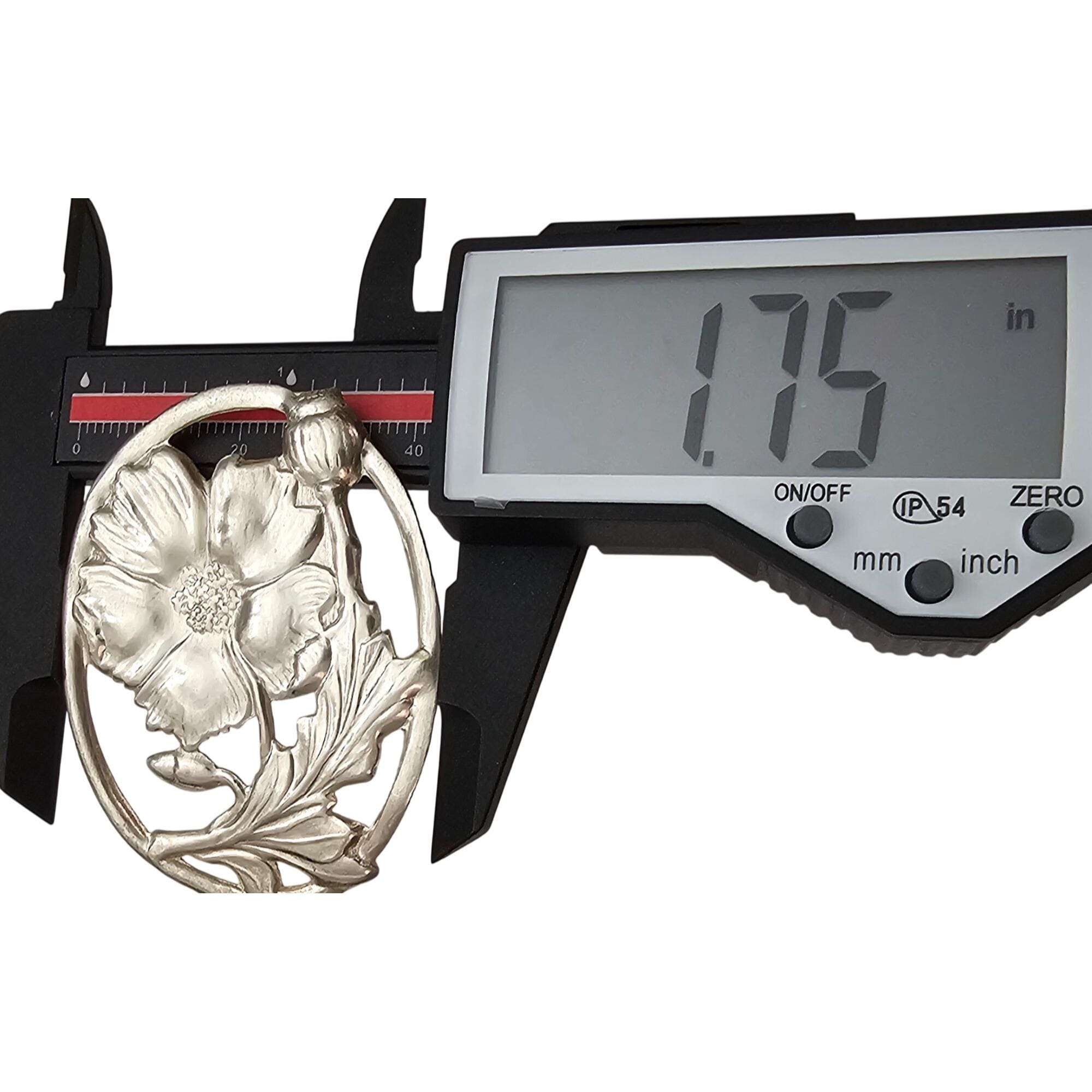 Sterling Silver Repoussé Flower Leaf Brooch Oval Pin C798