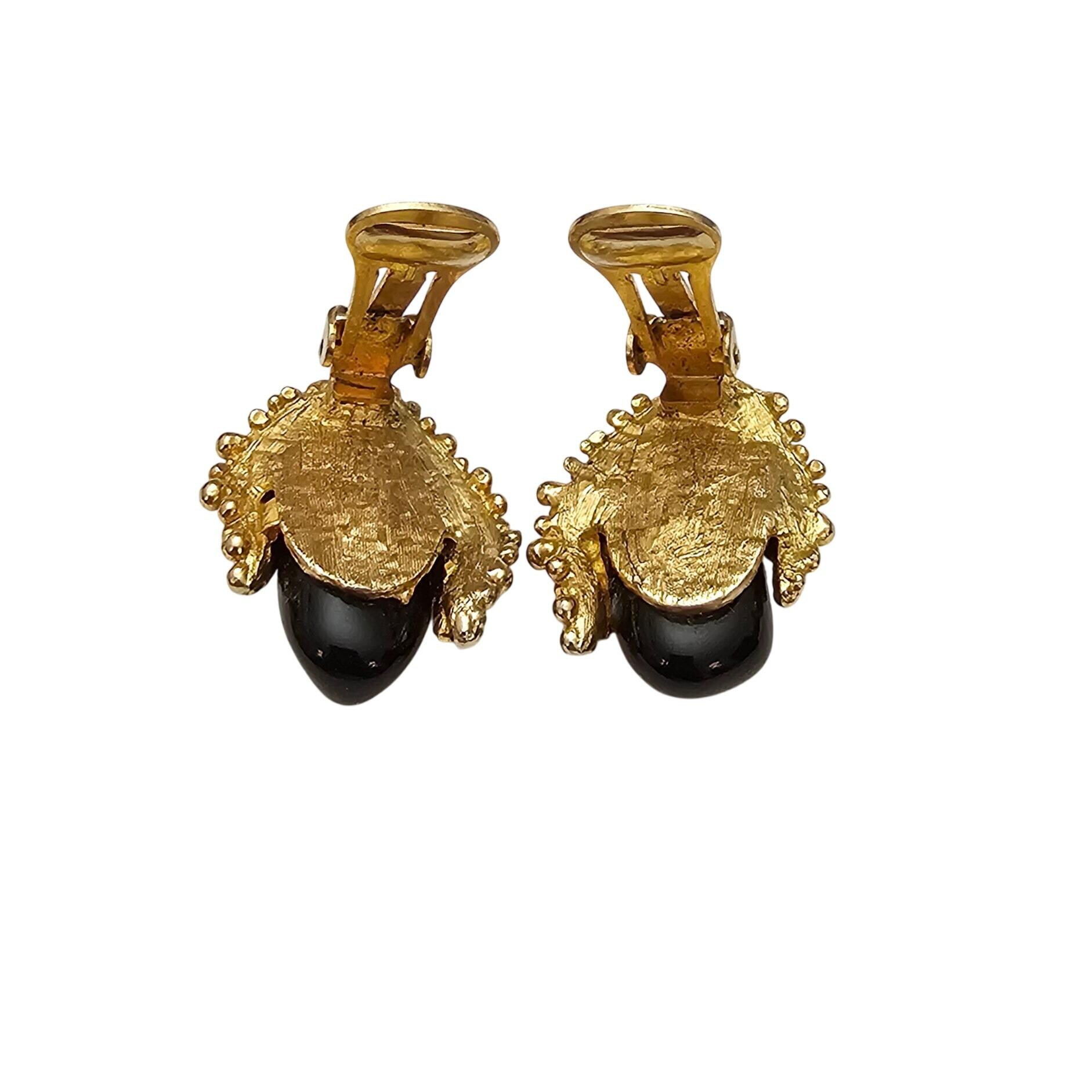 Swoboda Brutalist Black Stone Clip On Earrings Signed, C802