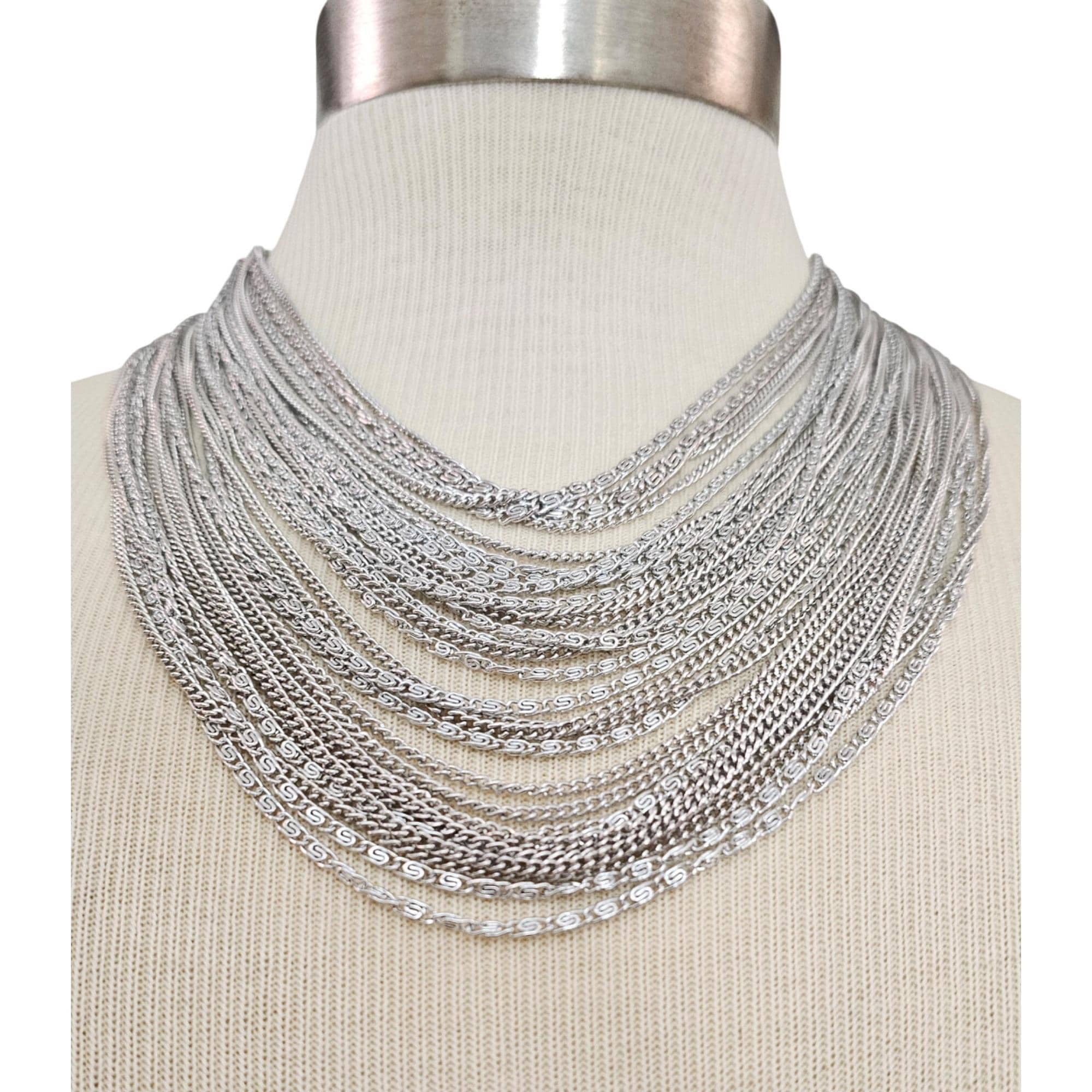 Corocraft Silver Tone Multi Strand Chain Necklace Signed, C818