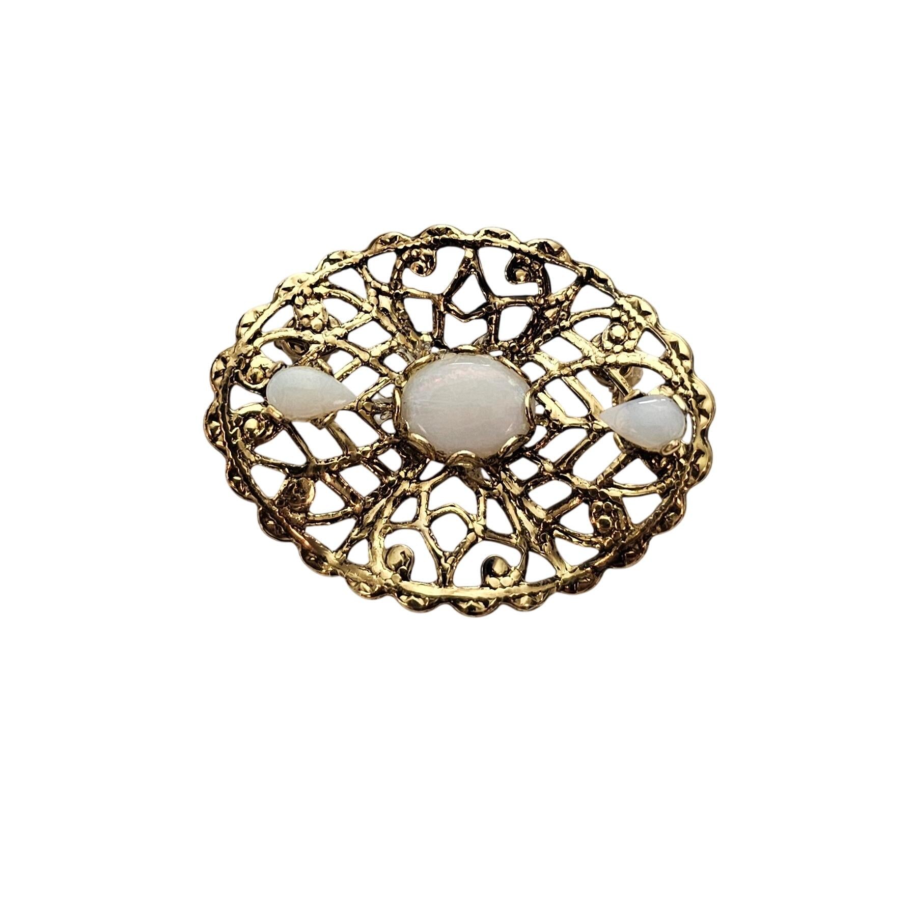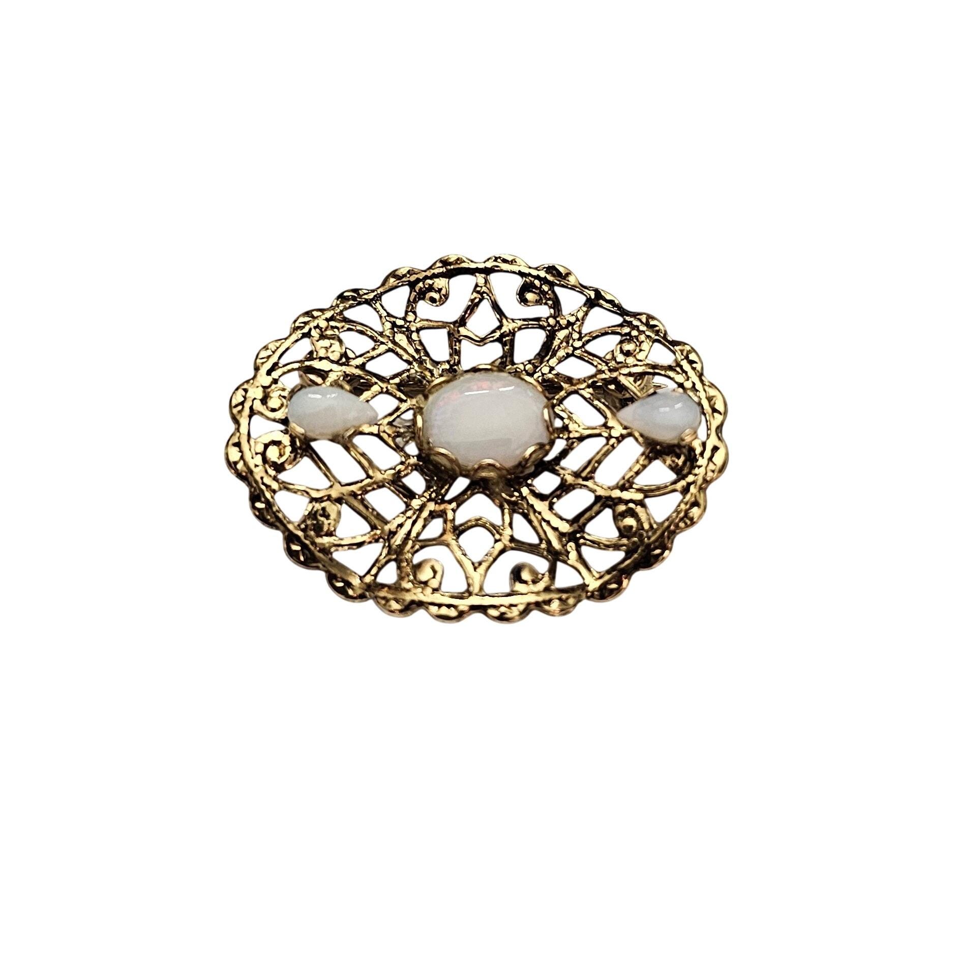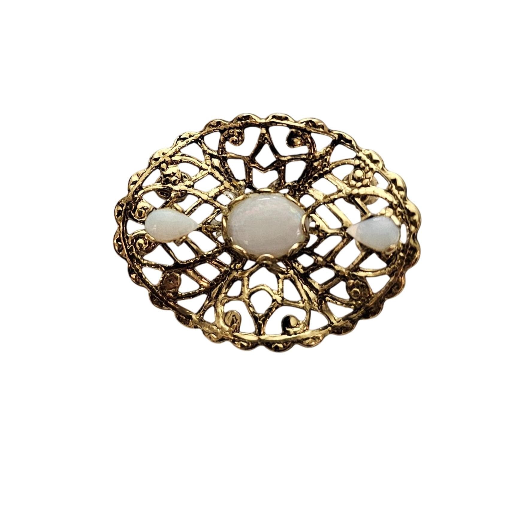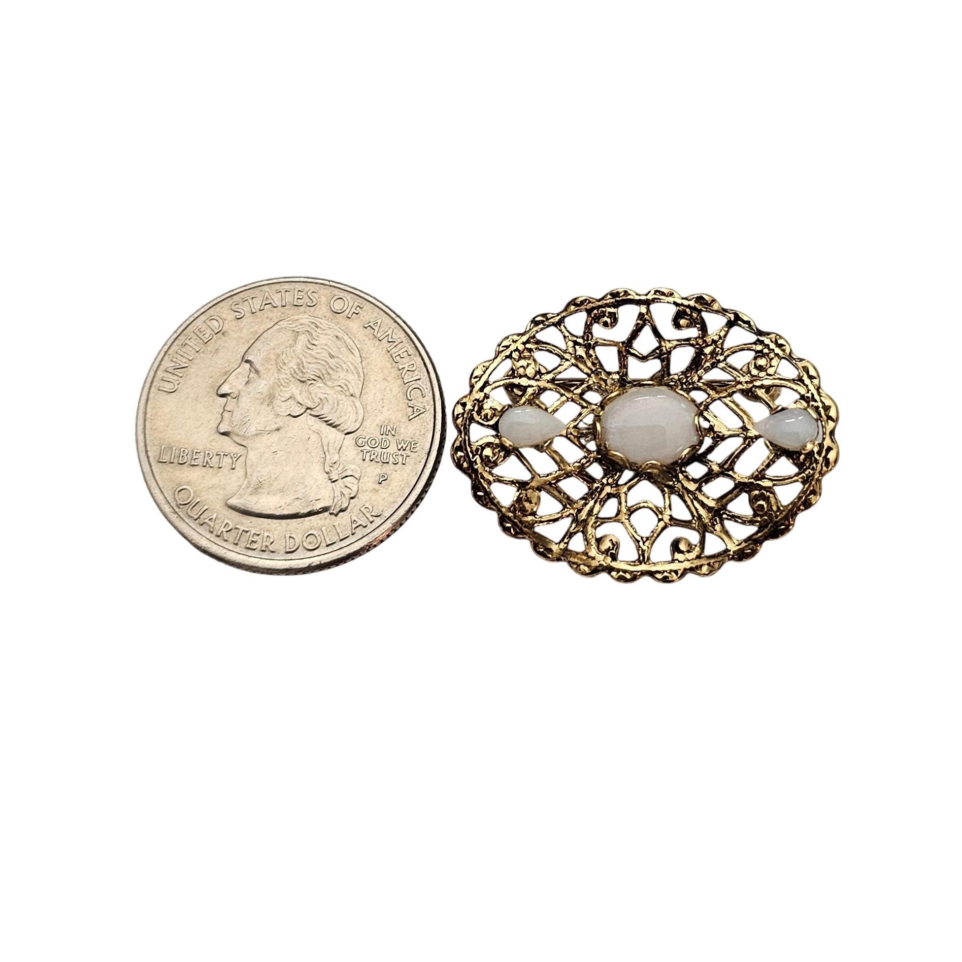 Gold Tone Filigree Small Opal Brooch Oval Pin C851