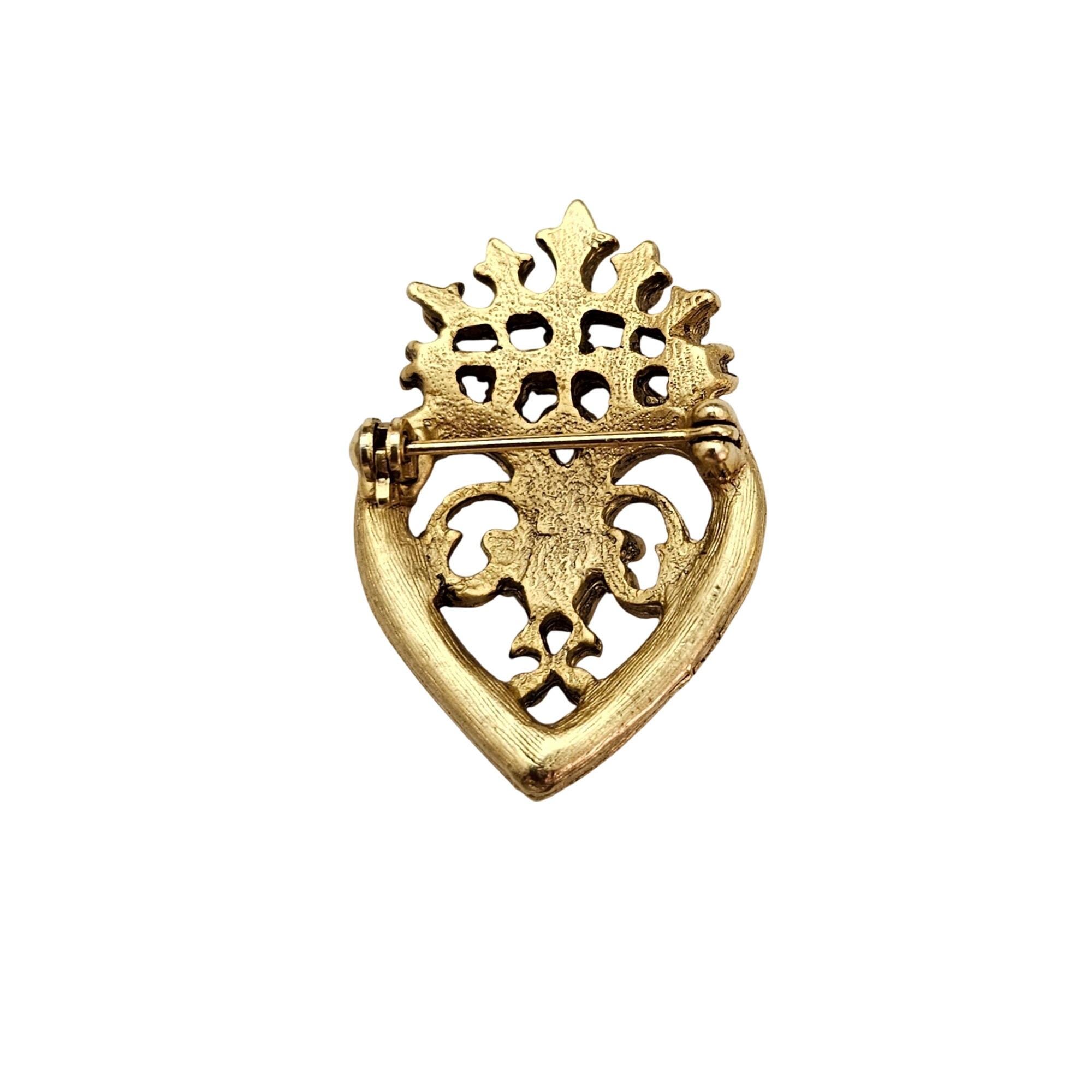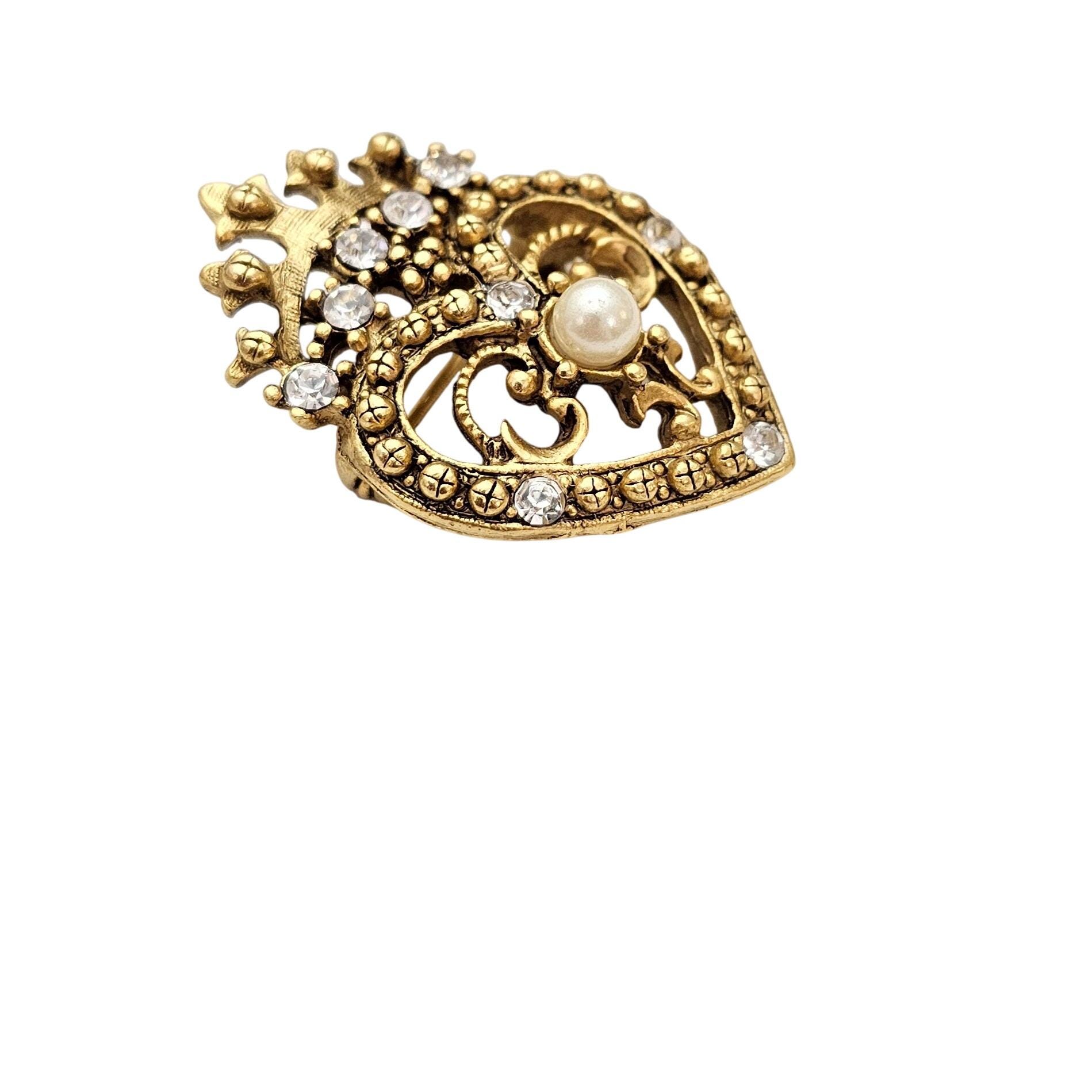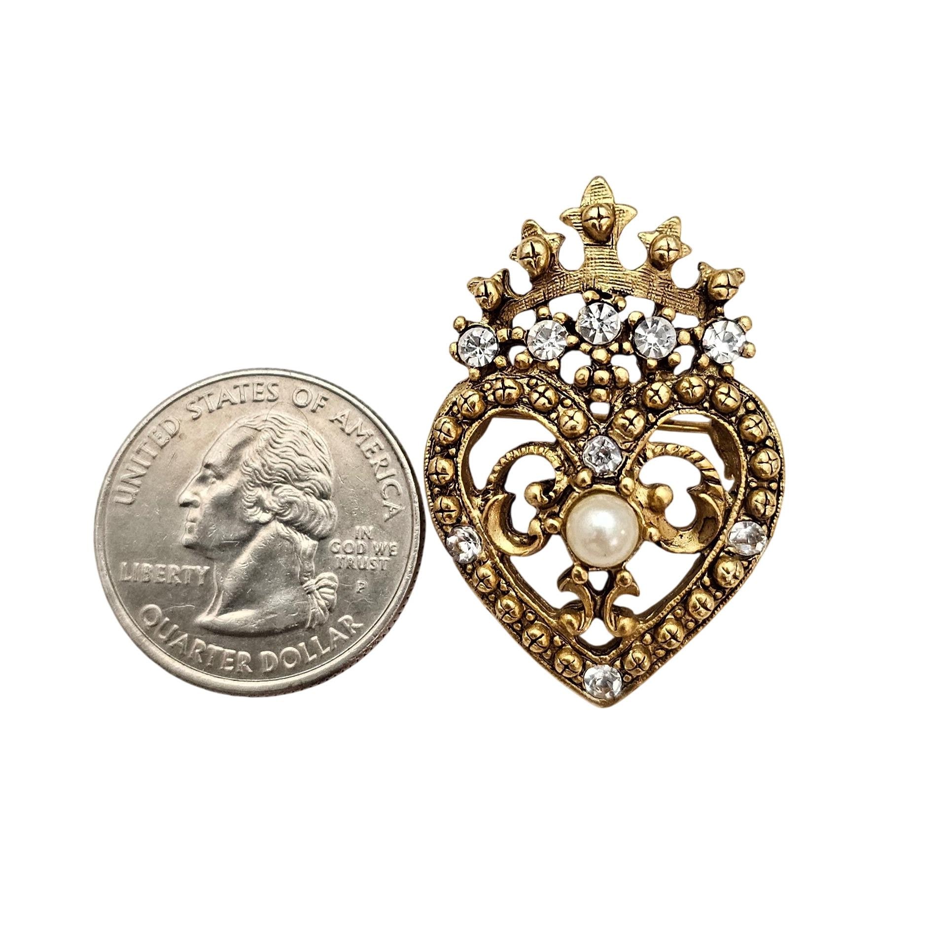 • Heart-shaped brooch with a crown top